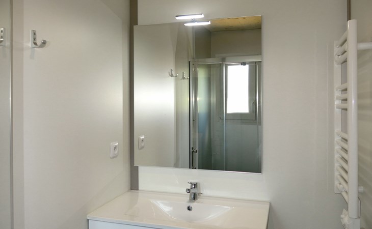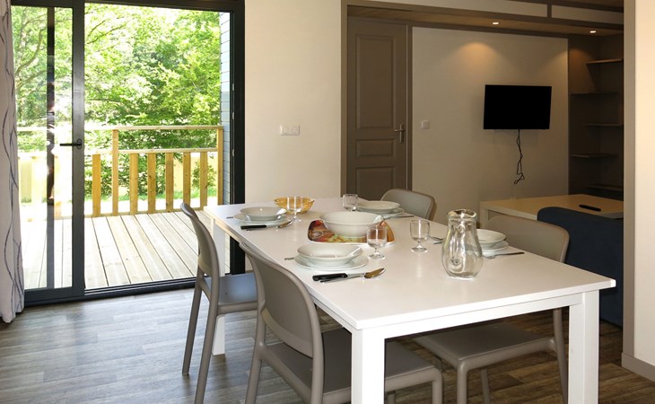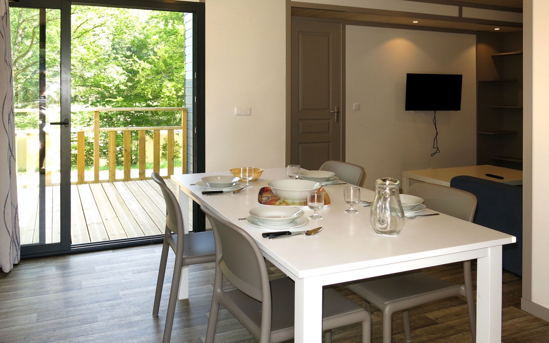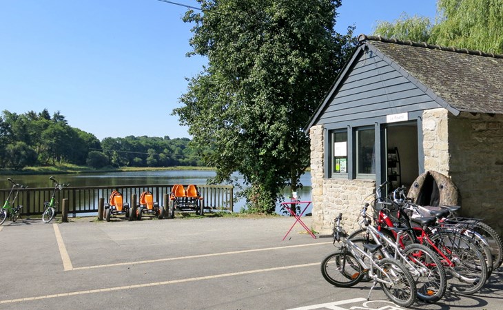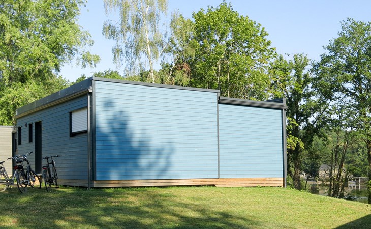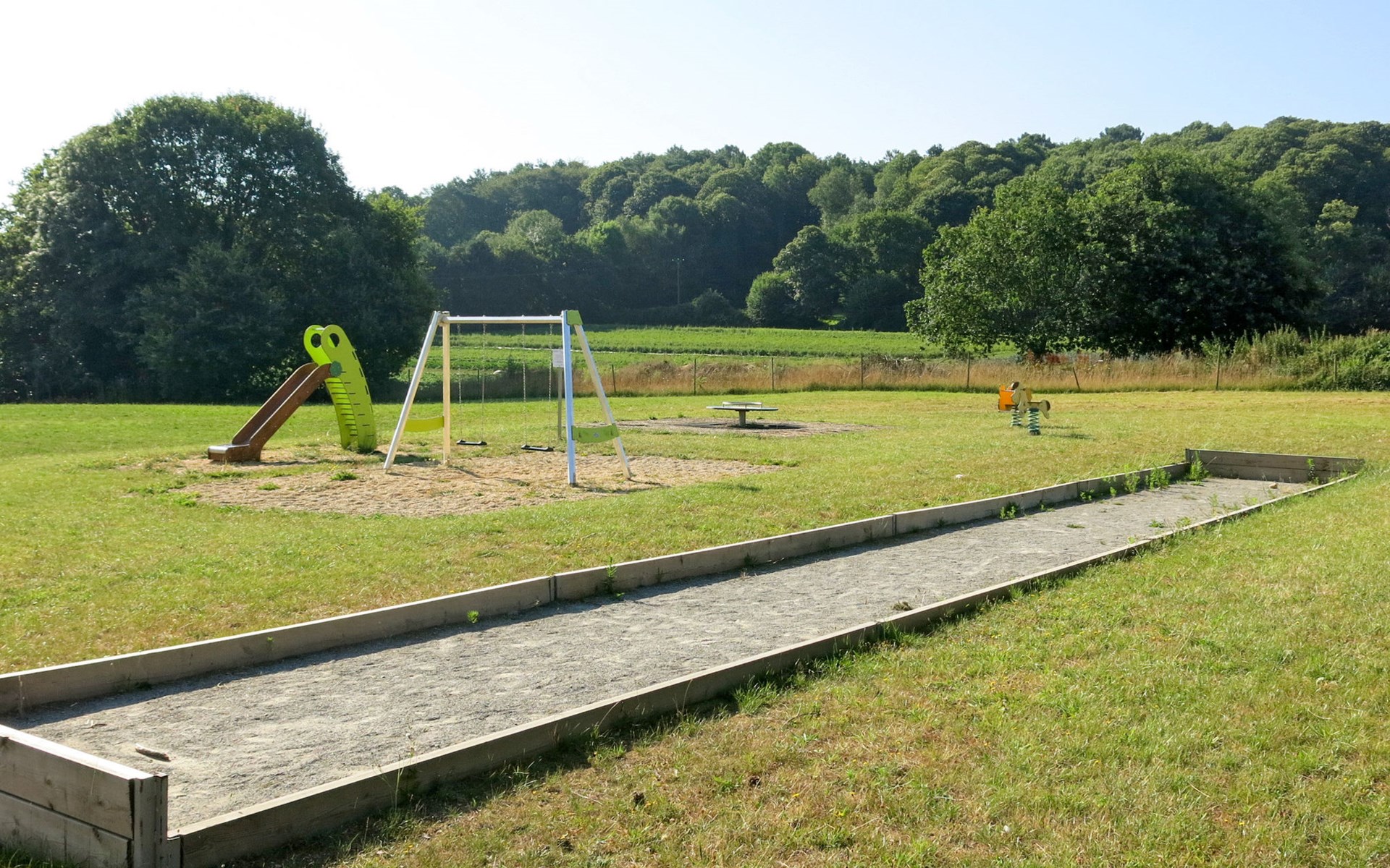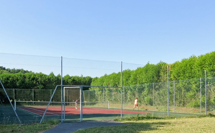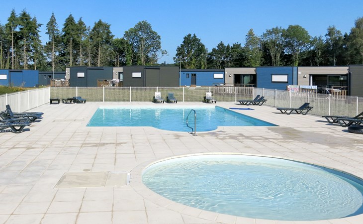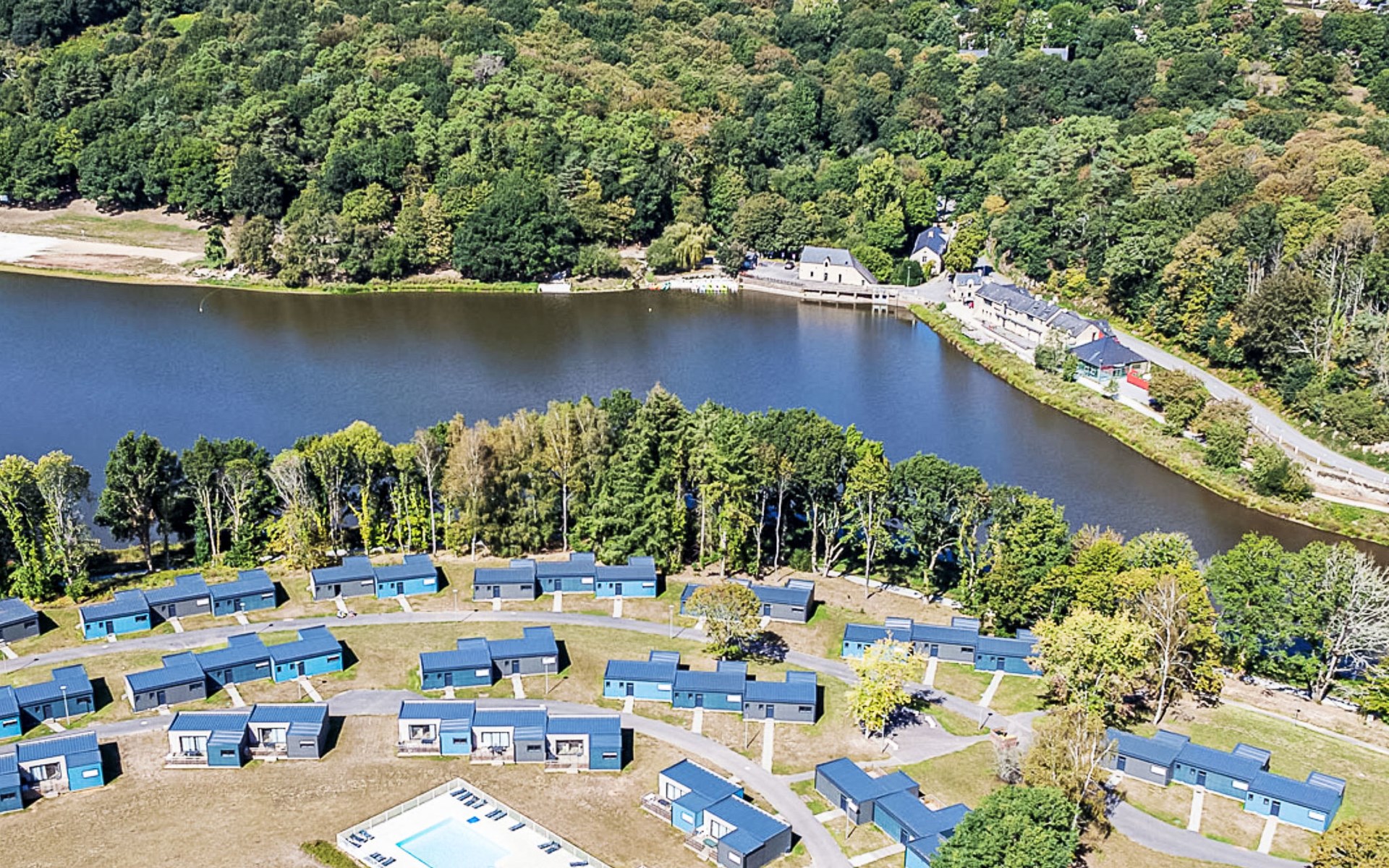 Child friendly resort "Le Moulin Neuf", built in 2017. 50 houses in the resort. 1.5 km from the centre of Rochefort-en-Terre, on the outskirts, 10 m from the lake. For shared use: property, park with lawn and trees, swimming pool heated, fenced (15 x 8 m, seasonal availability: 15.May. - 15.Sep.). Children's pool, tennis (extra), boccia, barbecue house, children's playground. In the complex: reception, washing machine, tumble dryer (for shared use, extra), bicycle rental. Parking. E-charging station. Supermarket 2 km, bus stop 1.5 km, sandy beach "Plage de l'Étang du Moulin Neuf" 500 m, park "de loisirs du Moulin neuf" 500 m. Sports centre 500 m. Nearby attractions: Tyrolienne, mur d’escalade. 500 m, Activités nautiques (paddle, canoé.) 500 m, Malansac (Parc de la Préhistoire) 5 km, La Gacilly 21 km, Damgan (plage Océan) 32 km, Vannes et Golfe du Morbihan 35 km. Hiking paths: GR34. Please note: car-free holiday complex. The photograph shows a typical example.