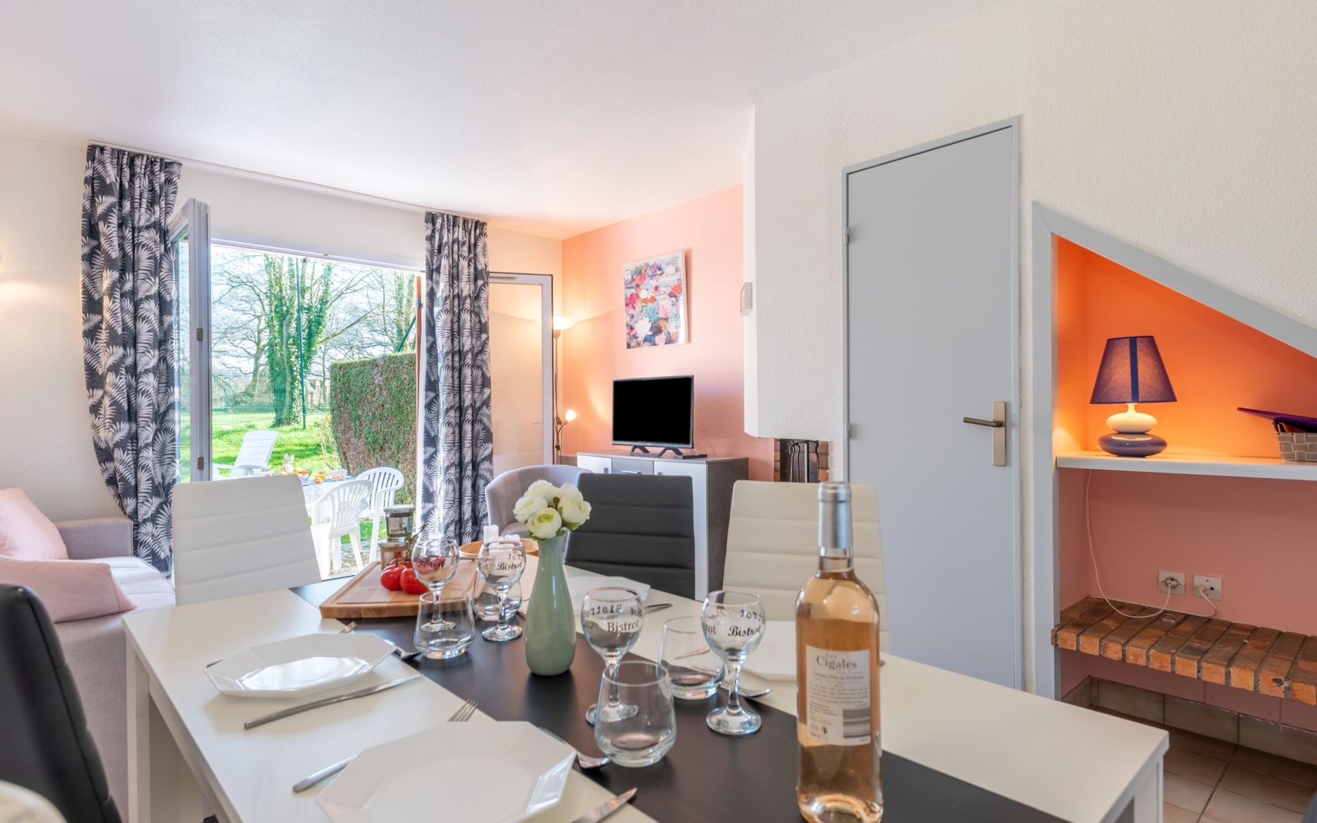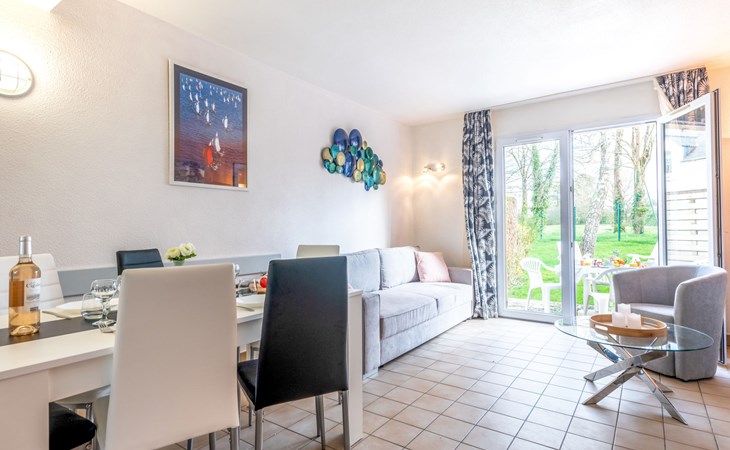 Ploemel 9 km from Carnac: Residence "Les Cottages du Golf". 109 houses in the residence. On the outskirts, 4 km from the centre of Ploemel, 7 km from the sea, 7 km from the beach, on the golf course. For shared use: swimming pool heated, fenced (seasonal availability: 15.Jun. - 15.Sep.). Children's playground. Grocery 4 km, supermarket 4 km, restaurant 4 km, bakery 4 km, bus stop "Ploemel centre" 3 km, sandy beach "Kerhilio" 7 km. Golf course (18 hole) 5 m. Nearby attractions: Les alignements de Carnac 12 km, Auray 13 km, Presqu'ile de Quiberon 24 km, Vannes 30 km, lorient 32 km. Hiking paths: Le Golfe du Morbihan, St Cado 7 km.