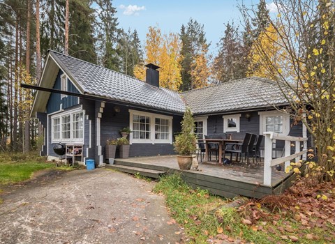 76 km to the northeast from Joensuu, lake Koitere 25 m (163,667 km²), shallow natural sand beach, own beach, pier and boat. Own coastline 80 m. Wooden holiday cabin 2012. Living room-kitchen with spreadable divan-sofa, bedroom with double bed, wood-heated sauna, terrace.