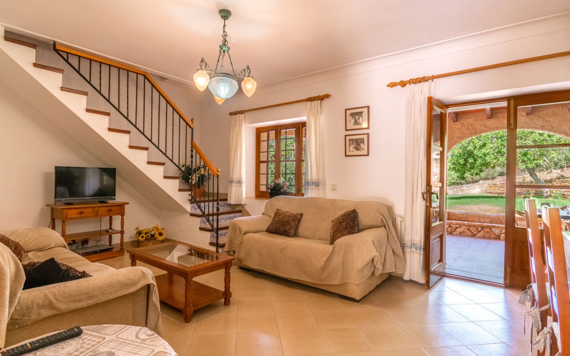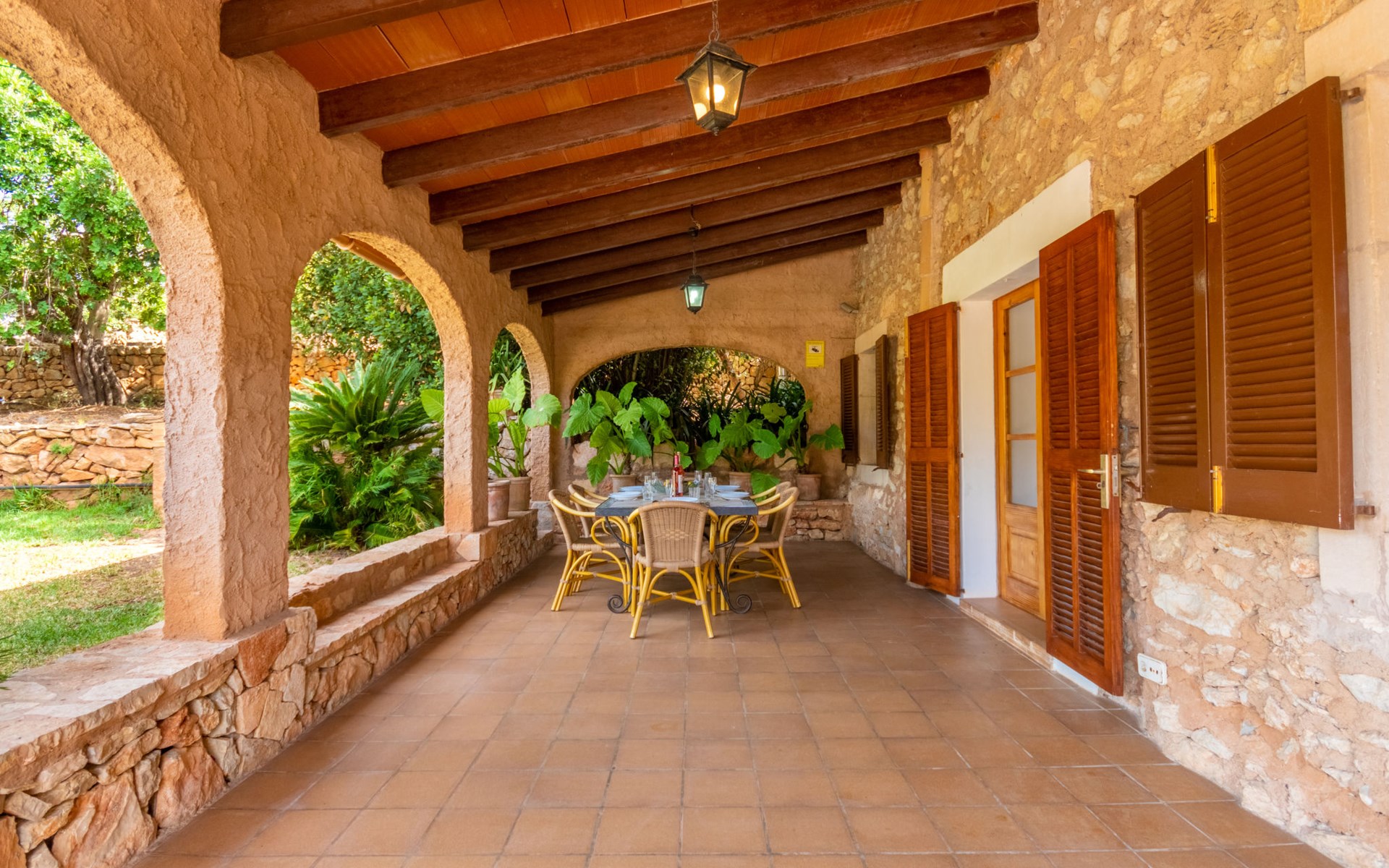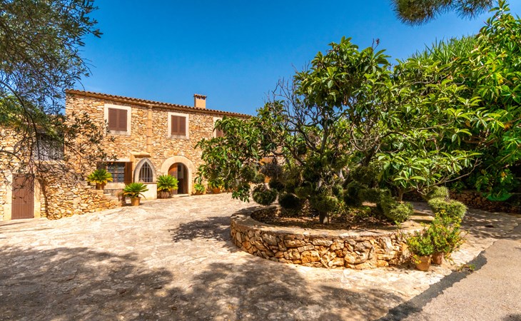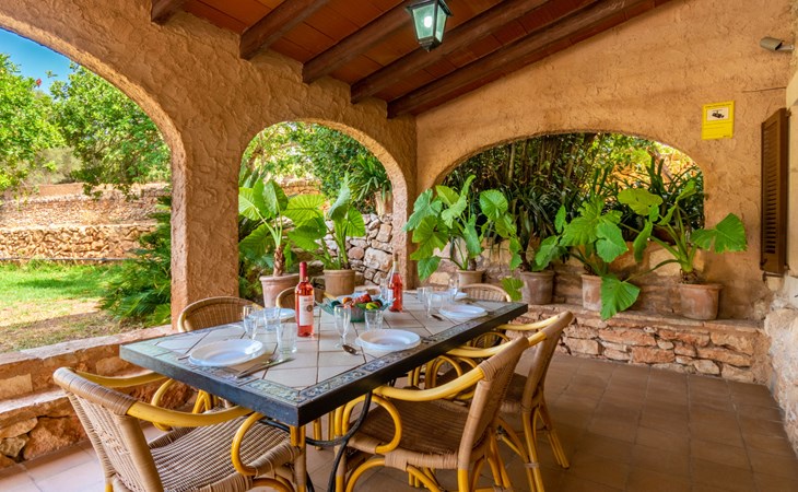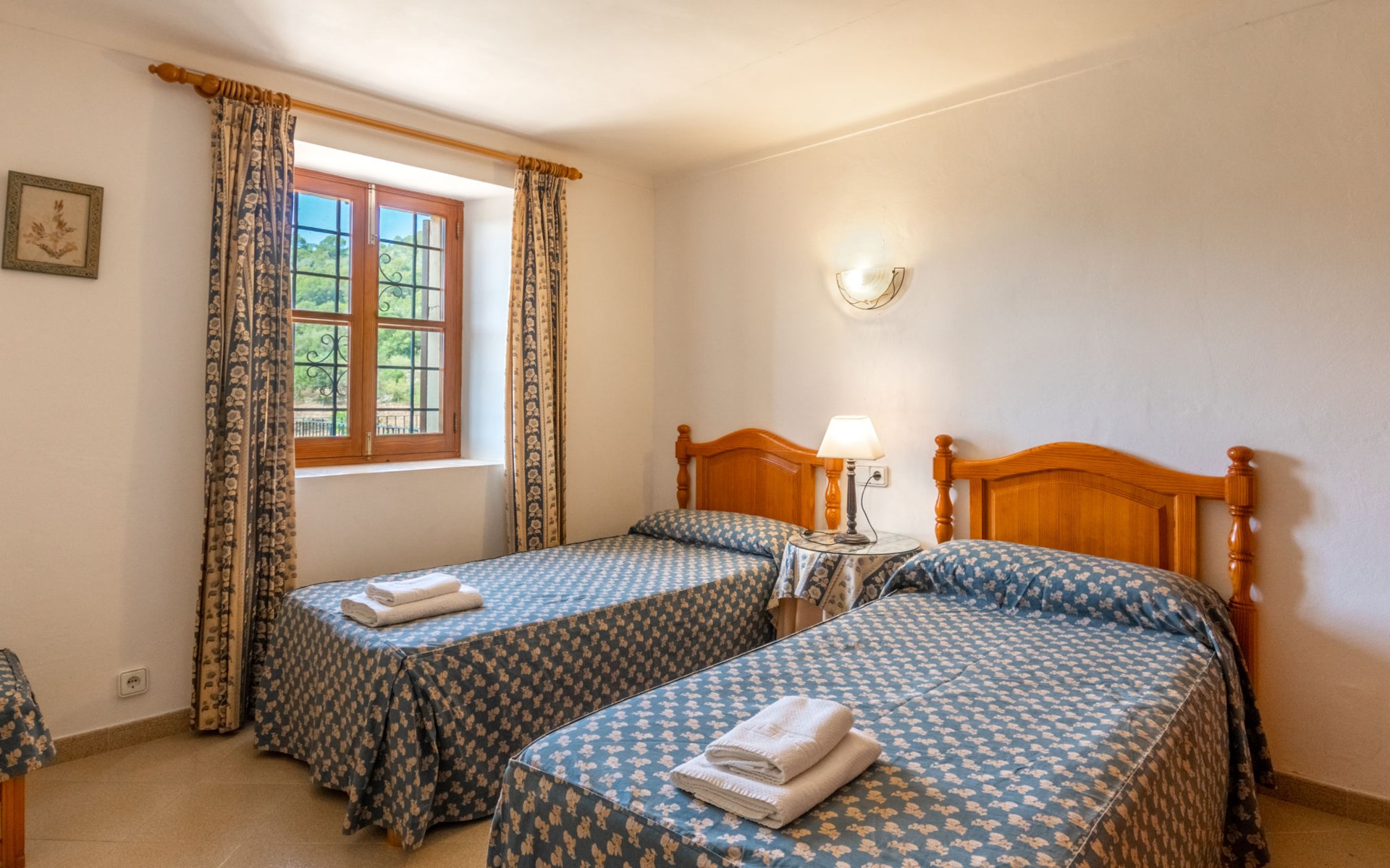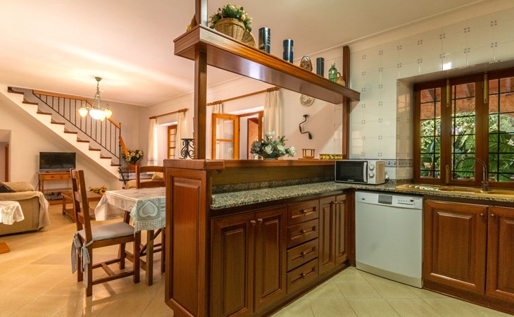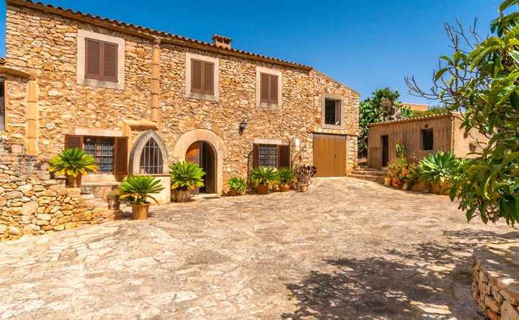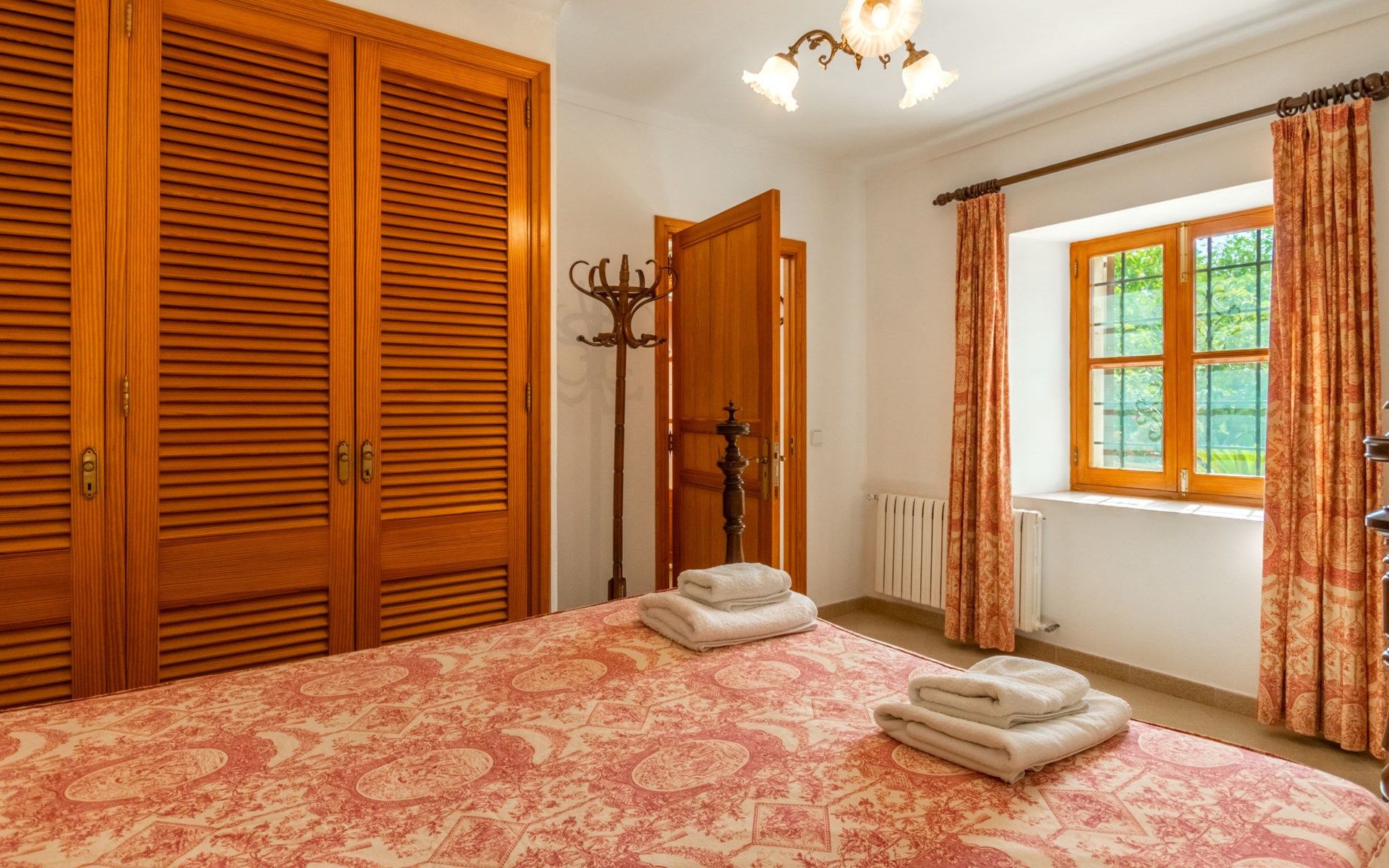 Farm estate "Can Caubo". 3 km from the centre of Calonge, 3.5 km from the centre of S'Horta, 57 km from the centre of Palma, on a slope, 6.5 km from the sea. Private: property 3'000 m2, terraced garden with lawn and trees, swimming pool (10 x 5 m, seasonal availability: 01.Jan. - 31.Dec.). Outdoor shower, terrace. In the house: central heating system. Parking on the premises. Shop 3 km, restaurant 1.4 km, bar 3 km, bus stop 200 m, sandy beach 6.5 km. Please note: car recommended. 1st floor is closed and not occupied.