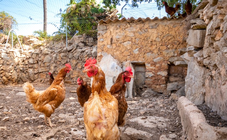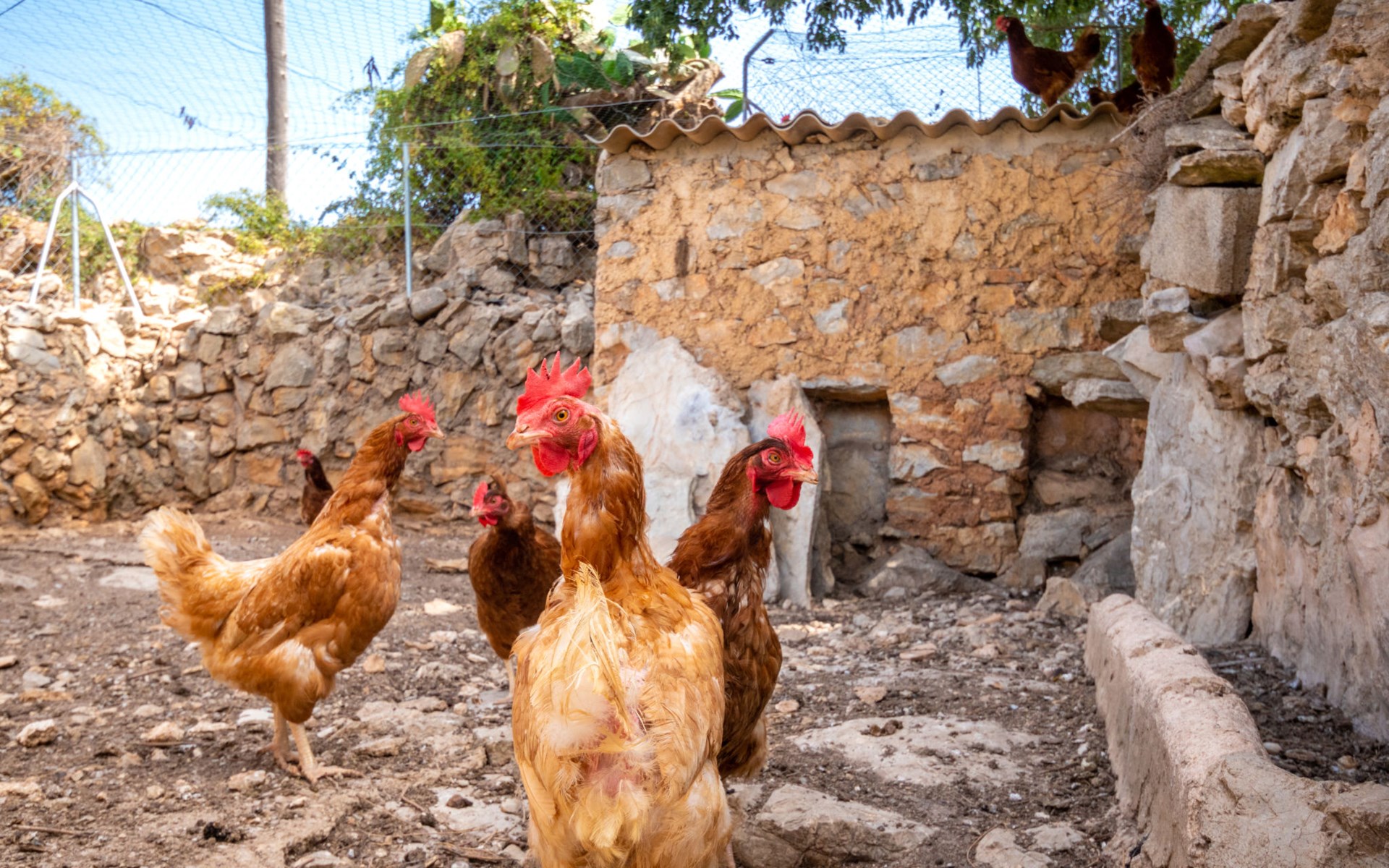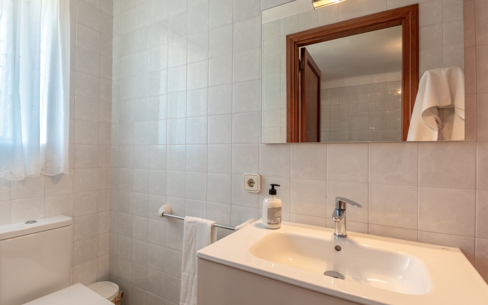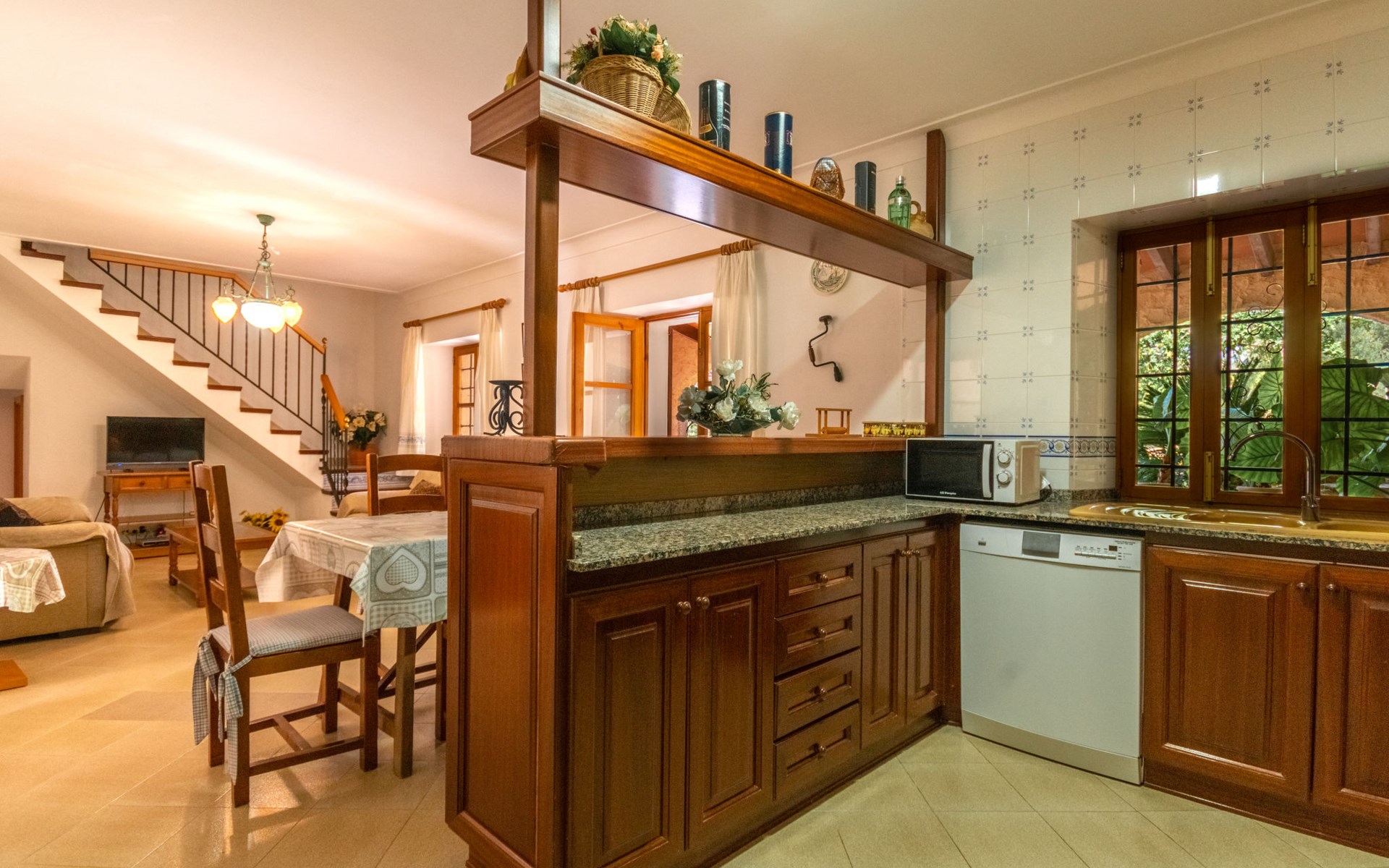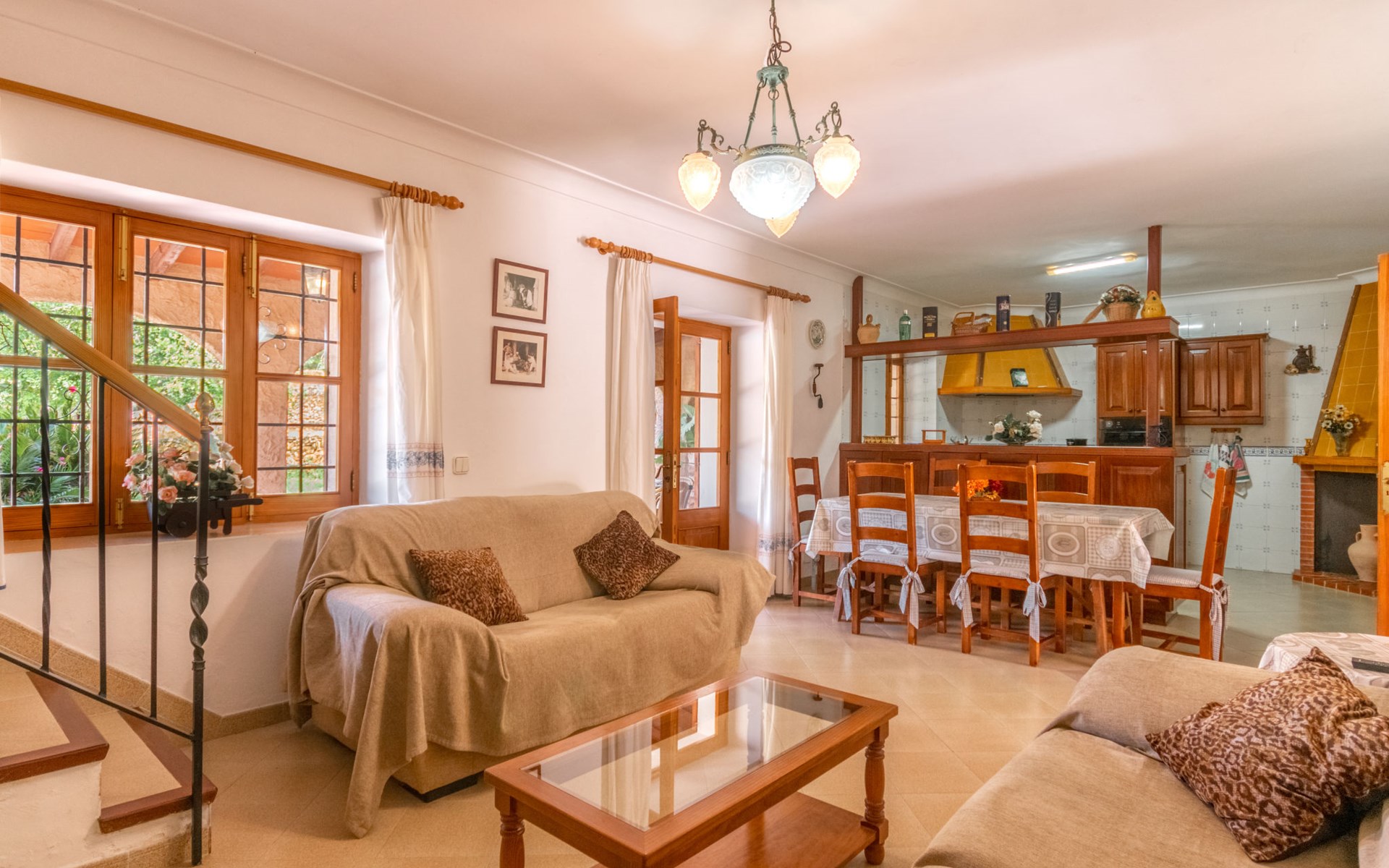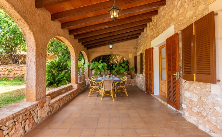 Farm estate "Can Caubo". 3 km from the centre of Calonge, 3.5 km from the centre of S'Horta, 57 km from the centre of Palma, on a slope, 6.5 km from the sea. Private: property 3'000 m2, terraced garden with lawn and trees, swimming pool (10 x 5 m, seasonal availability: 01.Jan. - 31.Dec.). Outdoor shower, terrace. In the house: central heating system. Parking on the premises. Shop 3 km, restaurant 1.4 km, bar 3 km, bus stop 200 m, sandy beach 6.5 km. Please note: car recommended. 1st floor is closed and not occupied.