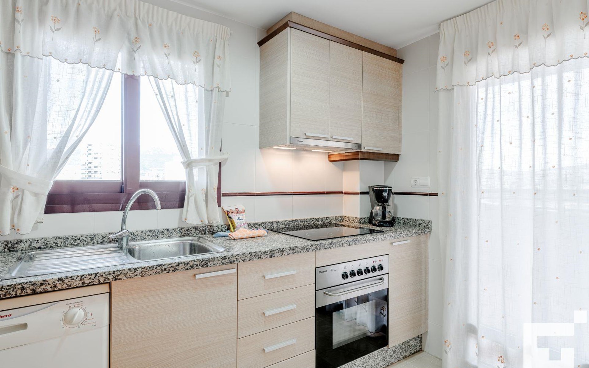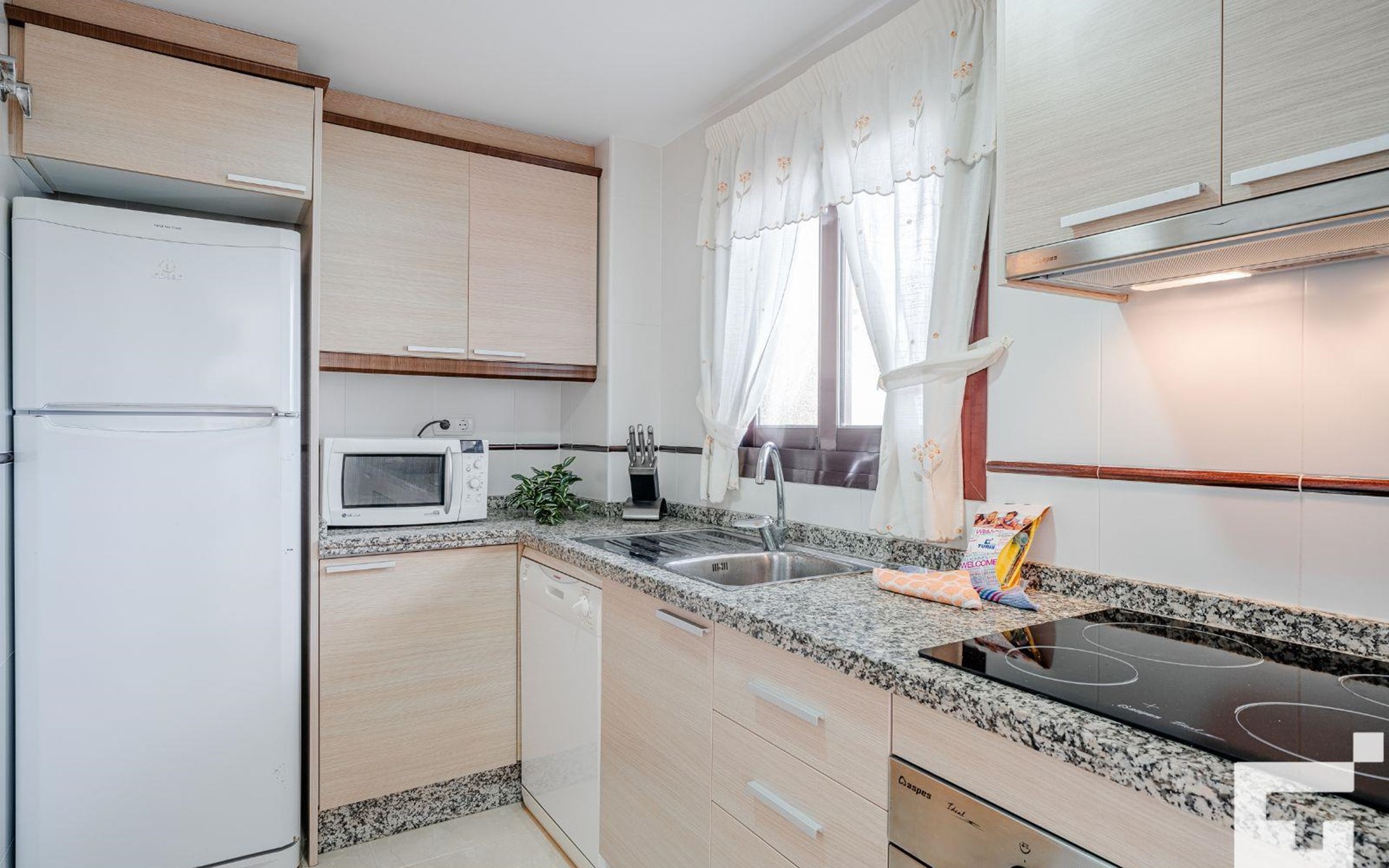 ๐ณ Fully equipped kitchen with ceramic hob, oven, microwave, refrigerator, and dishwasher.