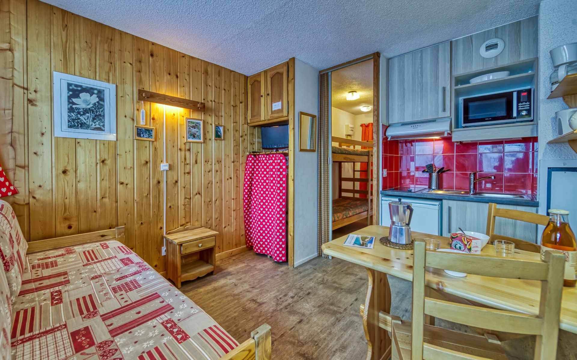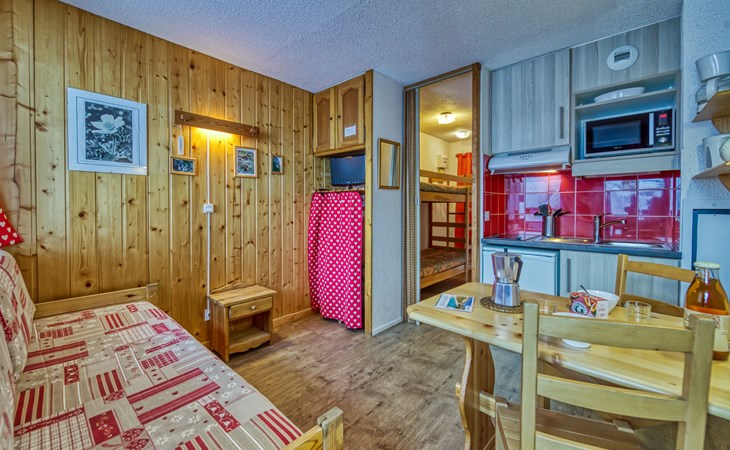 Small residence "Les Asters", 5 storeys. In the district of Fontanettes 800 m from the centre of La Croisette, in a quiet position, 200 m from the skiing area. Public parking on the road. Grocery, shopping centre 800 m, 10 minute walk to the centre, bus stop " ARRET les fontanettes" 500 m. Sports centre 800 m, chair lift, skisport facilities 200 m, slopes 50 m, ski rental 50 m, ski school 800 m, cross country ski track 1.5 km. Well-known ski regions can easily be reached: Les 3 Vallées. Please note: no lift. The photograph shows a typical example. Additional accommodations can be booked.