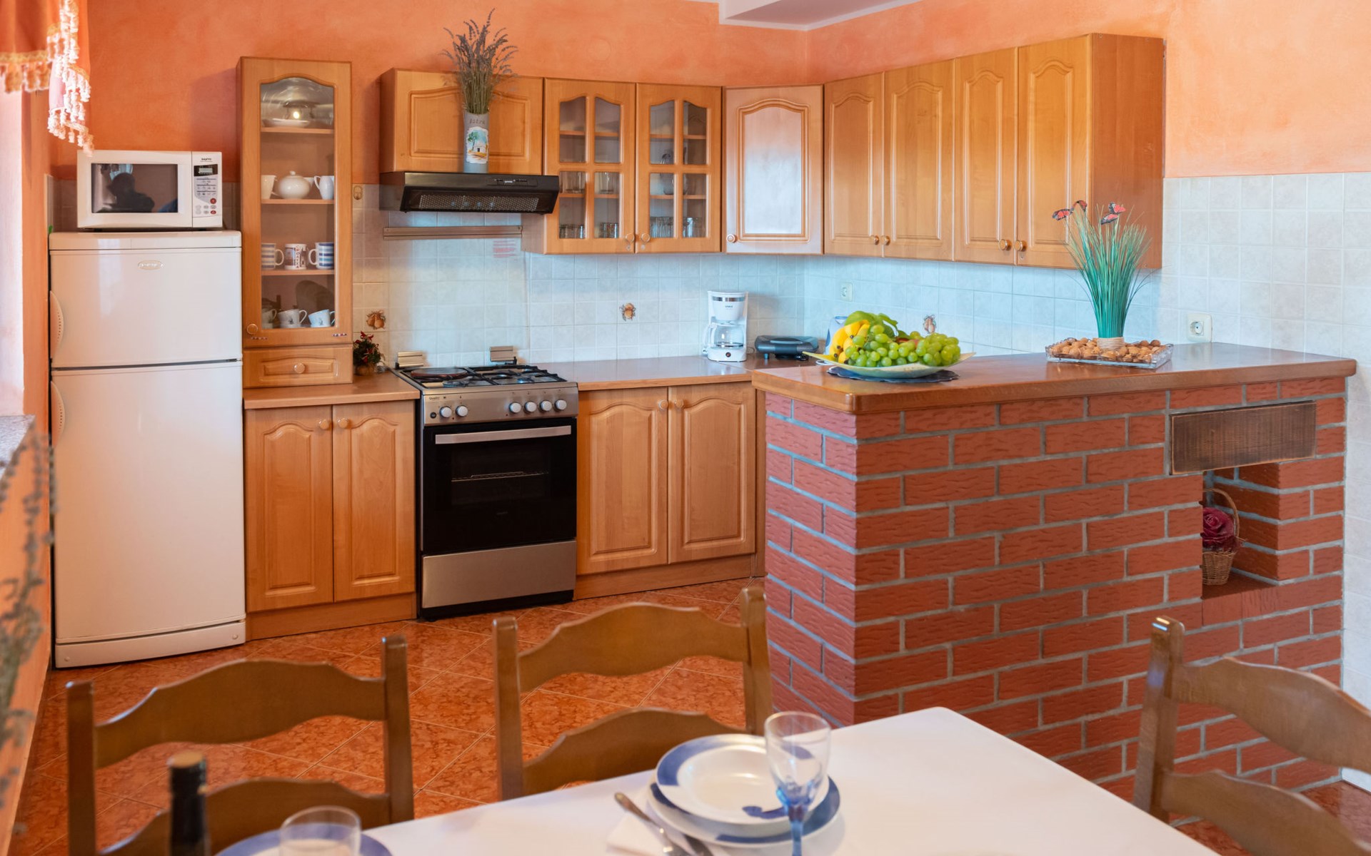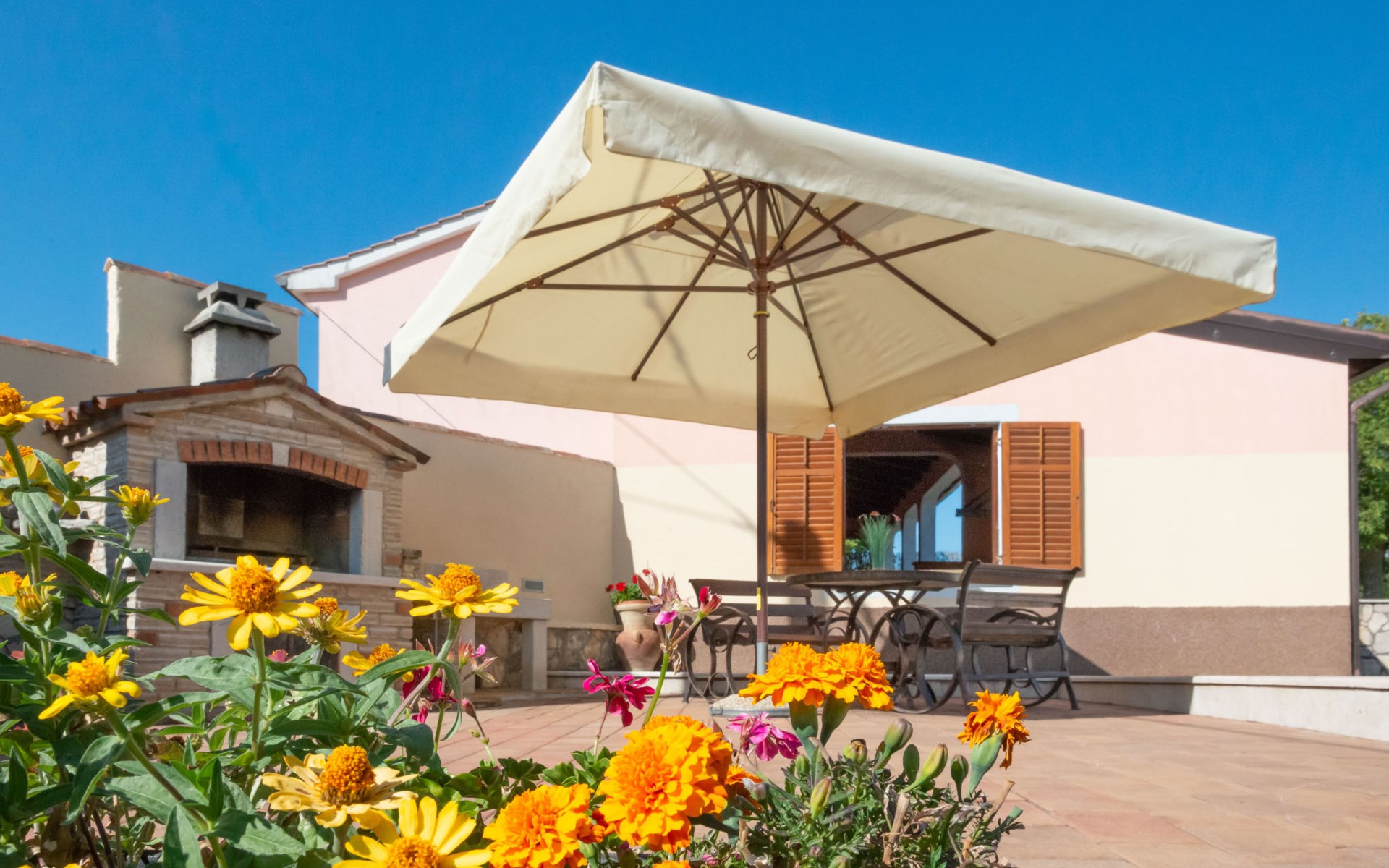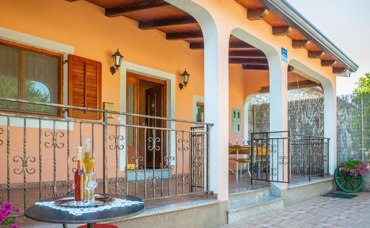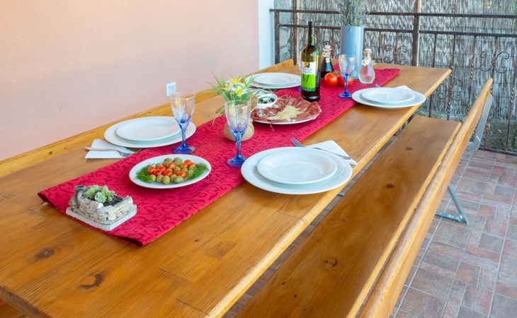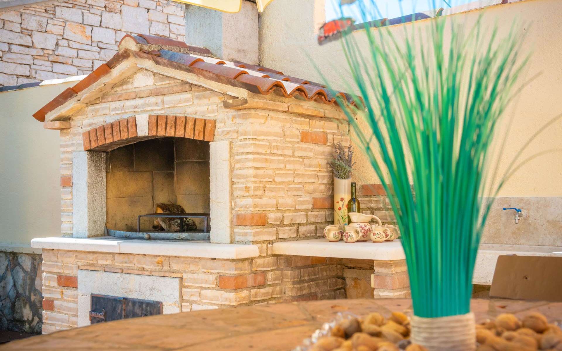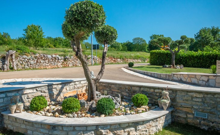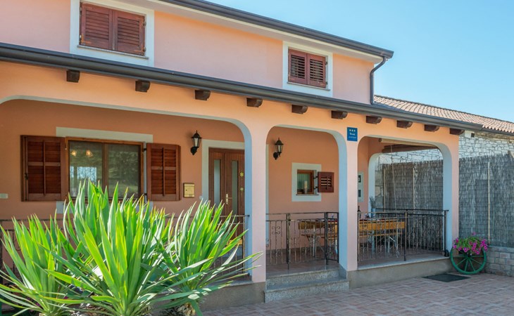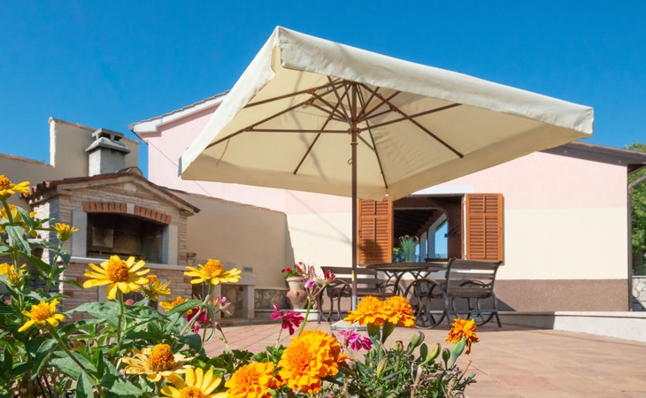 Semi-detached house "Medica", 2 storeys. In the hamlet Milotići 1 km from the centre of Tinjan, 12 km from the centre of Pazin, 20 km from the sea. Private: property 200 m2 with lawn and trees, swimming pool (24 m2, depth 135 cm, seasonal availability: 15.May. - 20.Sep.). Outdoor shower, table tennis, terrace, garden furniture, barbecue, pool maintenance by the owner/gardener. In the house: internet access. Parking on the premises, single garage. Shop 1 km, restaurant 1 km, bus stop 950 m, rocky beach 20 km.