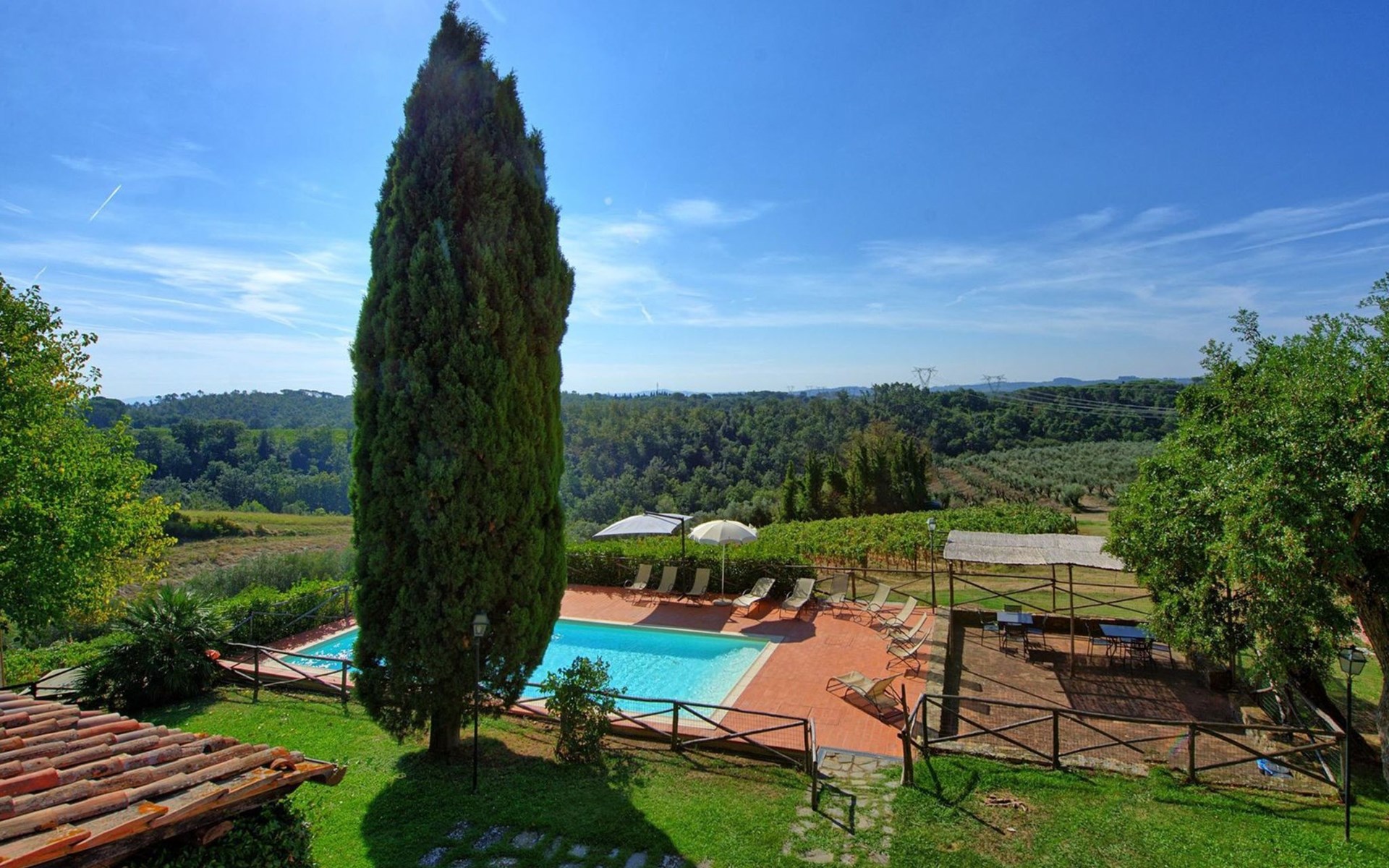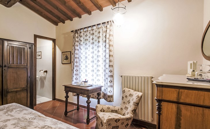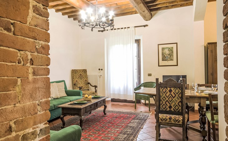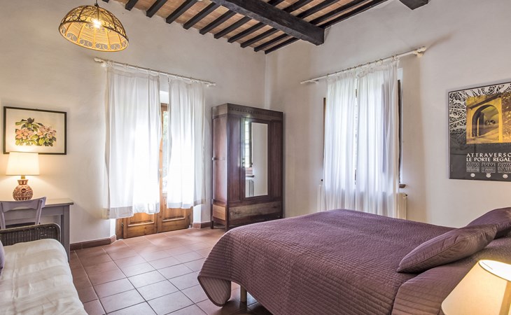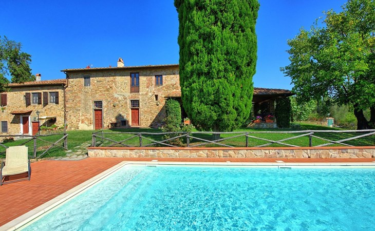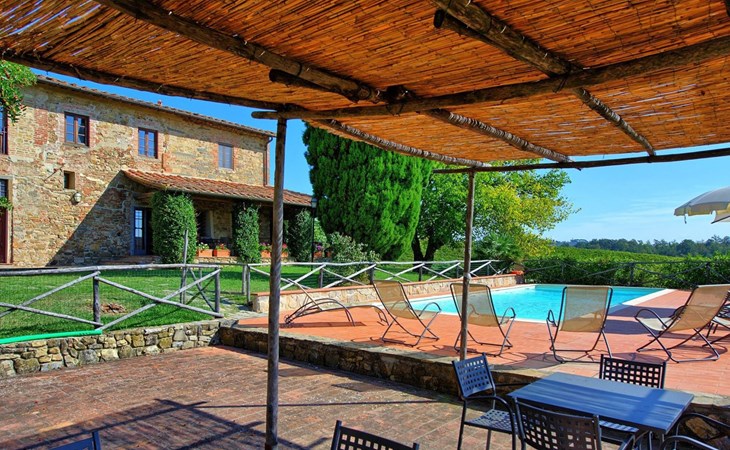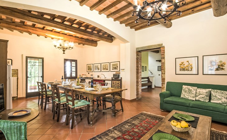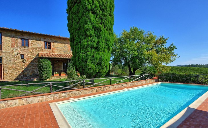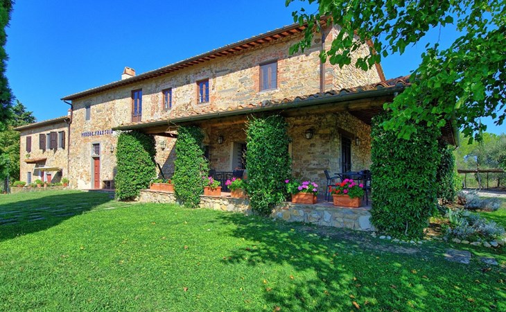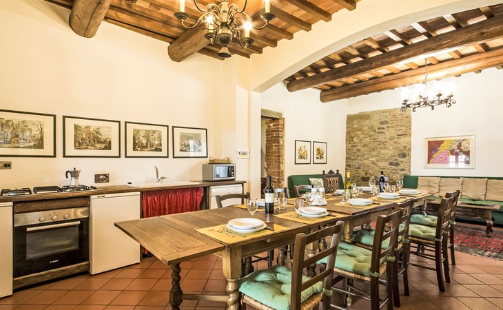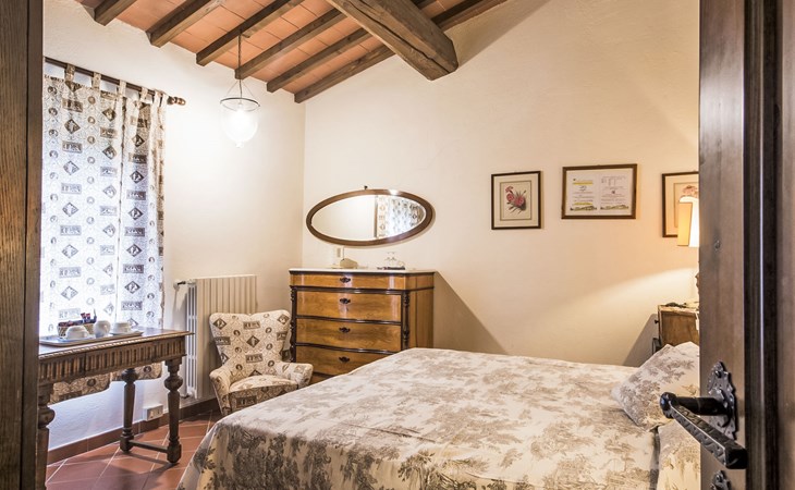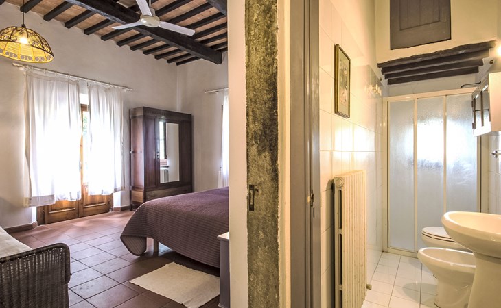 Large farmhouse, surrounded by vineyards and olive groves, consisting of the main object which can accommodate up to fourteen people and an adjacent, non-communicating apartment that can accommodate two more people. The owner lives in the property. Just a few hundred meters away, the owners own a restaurant where you can taste the typical dishes of the local tradition. Country house "Il Frantoio". 7 km from the centre of Montelupo Fiorentino, 20 km from the centre of Firenze, 68 km from the centre of Pisa, in a sunny position, in the countryside. Private: garden (not fenced), swimming pool (12 x 6 m, depth 200 - 110 cm, seasonal availability: 15.May. - 15.Sep.). Outdoor shower, garden furniture, barbecue. In the complex: restaurant, heating to be paid on the spot, heating available only from 01.Nov. - 04.Apr.. Motor access to the house (300 m via unmade road). Parking on the premises. Shop 4 km, grocery 4 km, supermarket 4 km, restaurant 1 km. Golf course (18 hole) 35 km. Nearby attractions: Carmignano 10 km, San Casciano in Val di Pesa 23 km, San Miniato 25 km, Vinci 27 km, San Gimignano 47 km, Volterra 65 km. Suitable for events. Local sale of farm products.