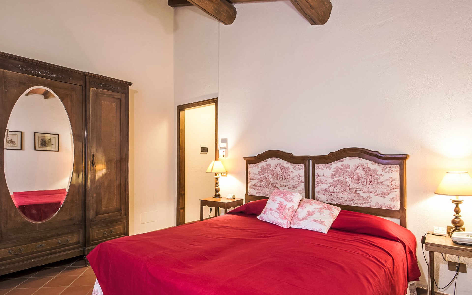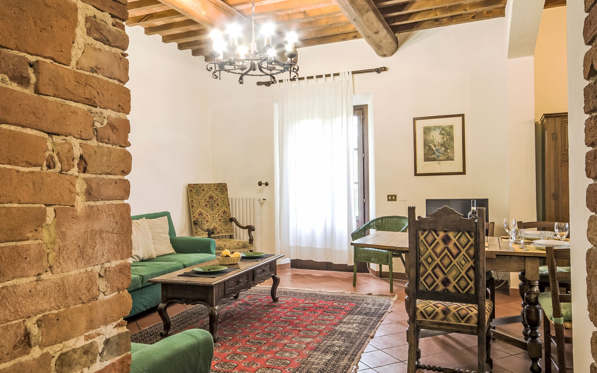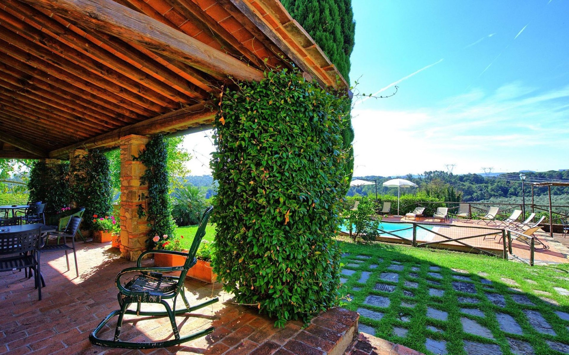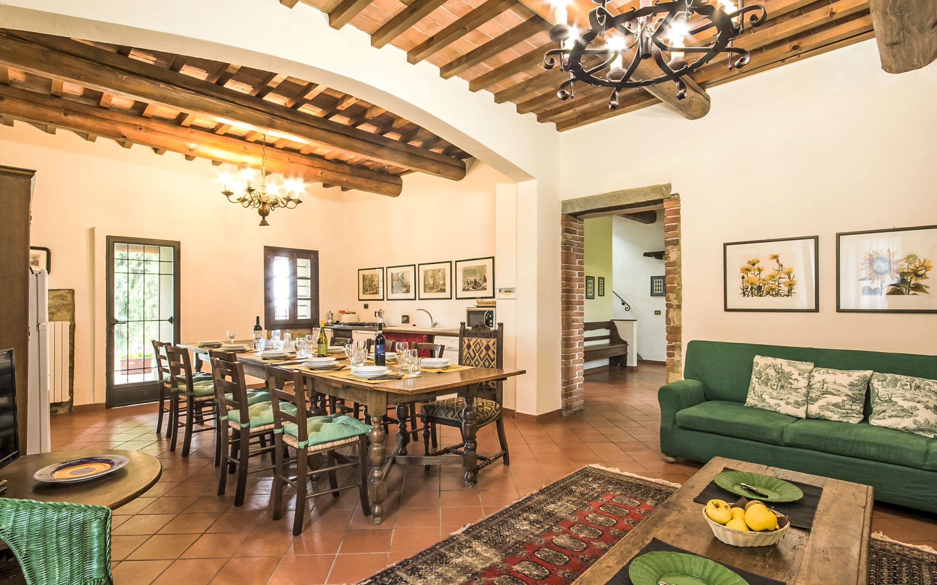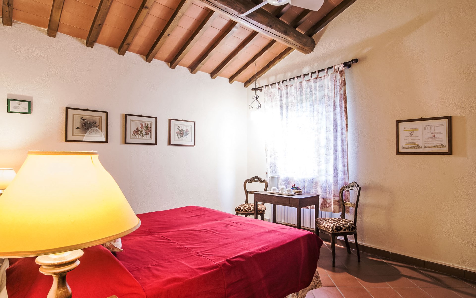 Large farmhouse, surrounded by vineyards and olive groves, consisting of the main object which can accommodate up to fourteen people and an adjacent, non-communicating apartment that can accommodate two more people. The owner lives in the property. Just a few hundred meters away, the owners own a restaurant where you can taste the typical dishes of the local tradition. Country house "Il Frantoio". 7 km from the centre of Montelupo Fiorentino, 20 km from the centre of Firenze, 68 km from the centre of Pisa, in a sunny position, in the countryside. Private: garden (not fenced), swimming pool (12 x 6 m, depth 200 - 110 cm, seasonal availability: 15.May. - 15.Sep.). Outdoor shower, garden furniture, barbecue. In the complex: restaurant, heating to be paid on the spot, heating available only from 01.Nov. - 04.Apr.. Motor access to the house (300 m via unmade road). Parking on the premises. Shop 4 km, grocery 4 km, supermarket 4 km, restaurant 1 km. Golf course (18 hole) 35 km. Nearby attractions: Carmignano 10 km, San Casciano in Val di Pesa 23 km, San Miniato 25 km, Vinci 27 km, San Gimignano 47 km, Volterra 65 km. Suitable for events. Local sale of farm products.
