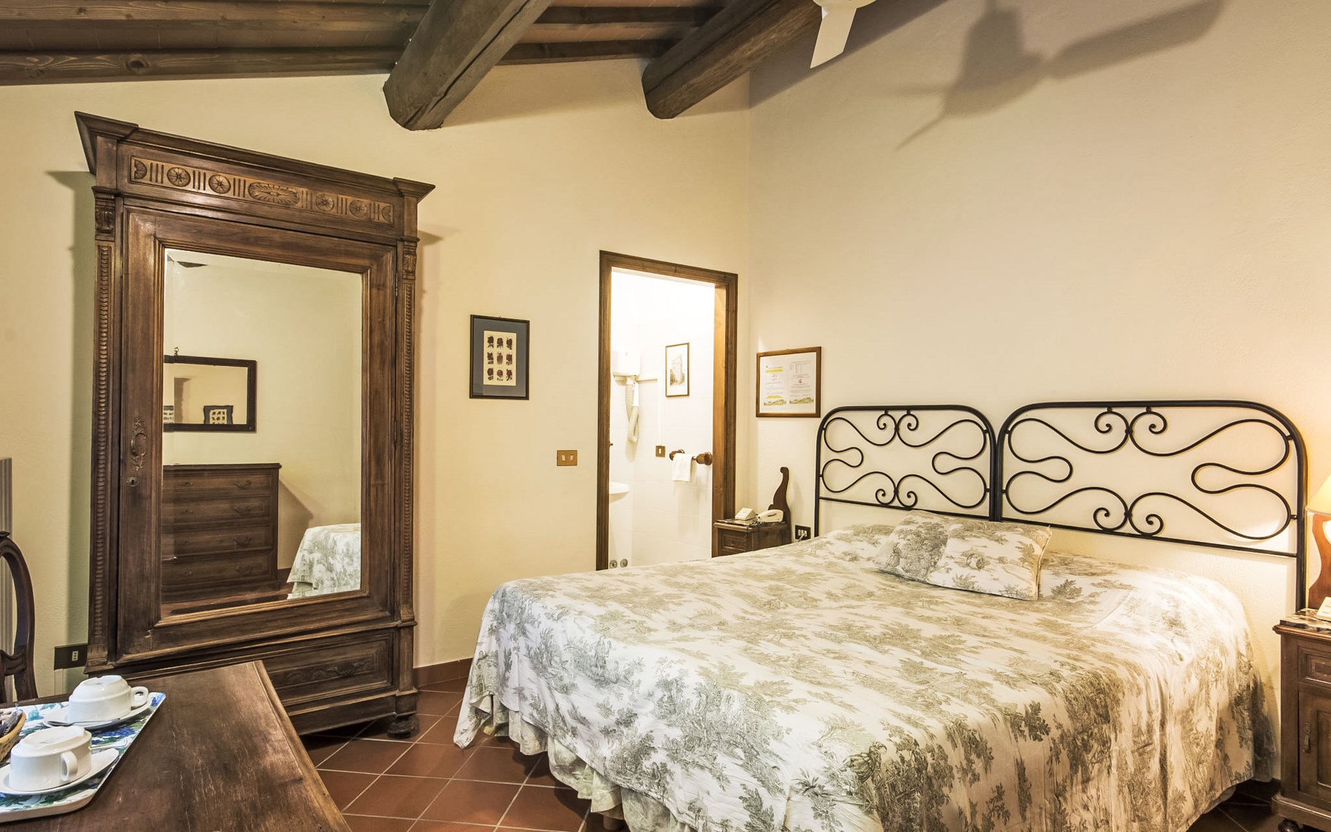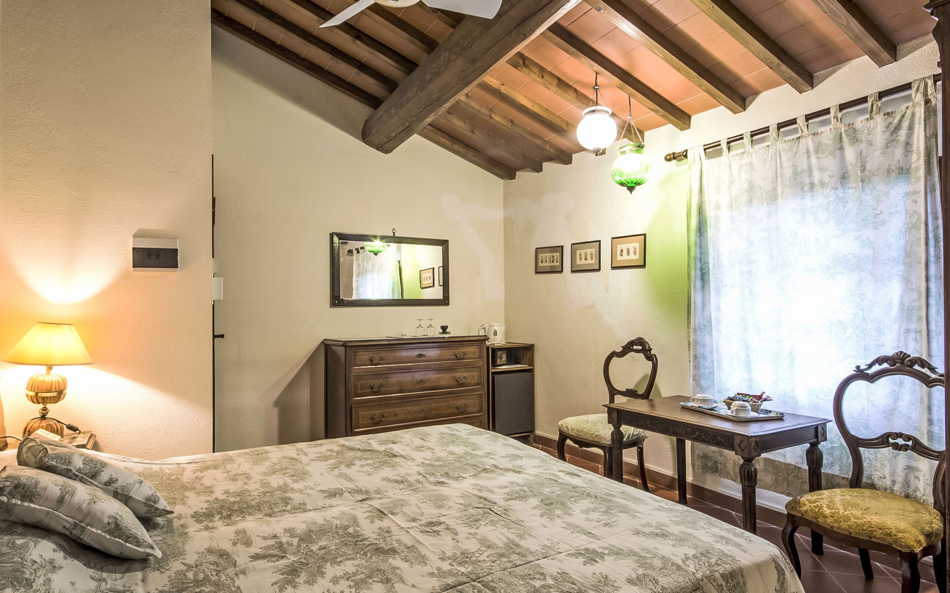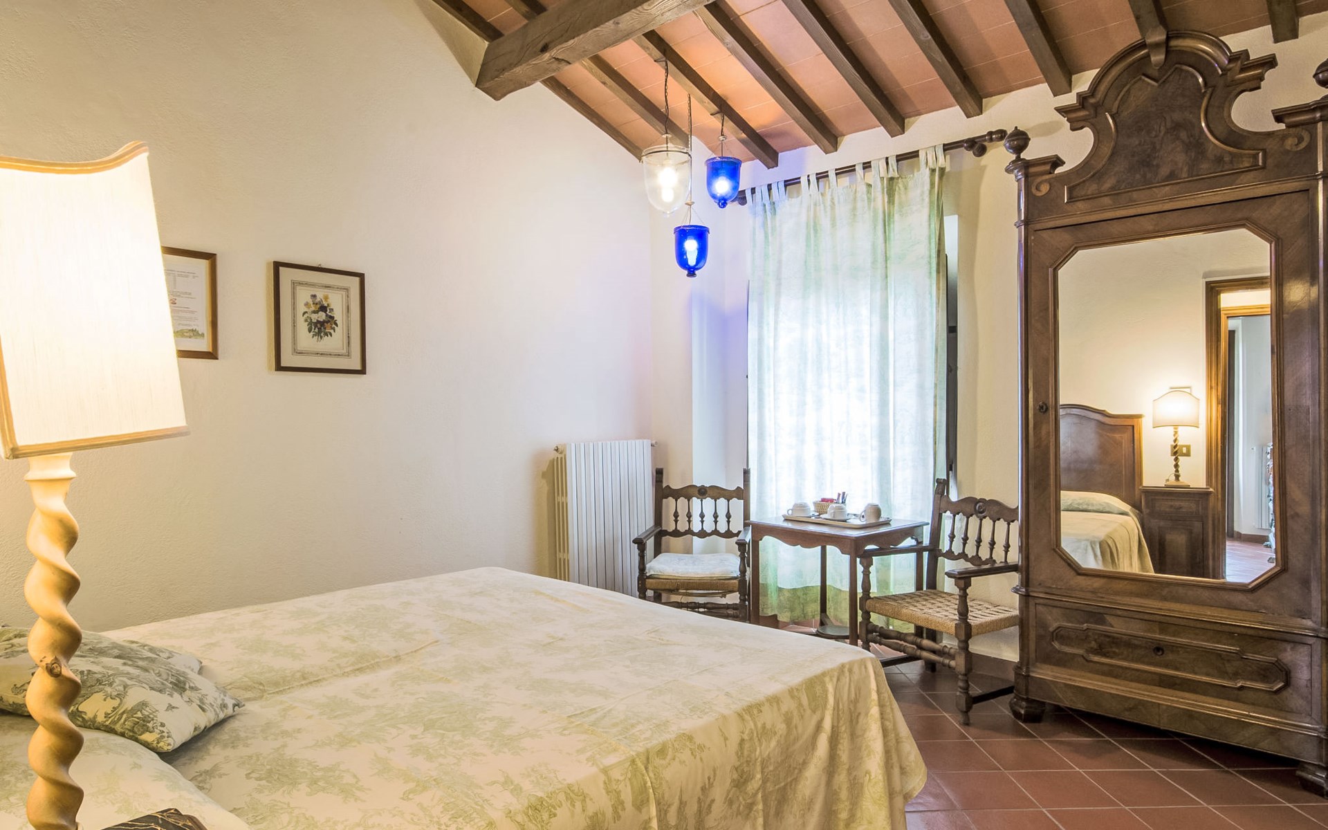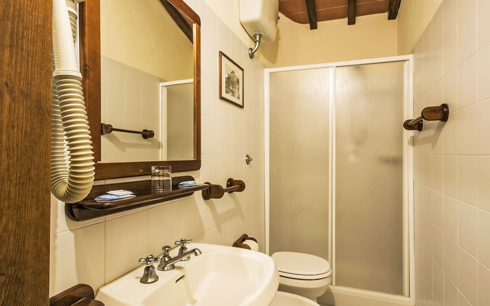 Large farmhouse, surrounded by vineyards and olive groves, consisting of the main object which can accommodate up to fourteen people and an adjacent, non-communicating apartment that can accommodate two more people. The owner lives in the property. Just a few hundred meters away, the owners own a restaurant where you can taste the typical dishes of the local tradition. Country house "Il Frantoio". 7 km from the centre of Montelupo Fiorentino, 20 km from the centre of Firenze, 68 km from the centre of Pisa, in a sunny position, in the countryside. Private: garden (not fenced), swimming pool (12 x 6 m, depth 200 - 110 cm, seasonal availability: 15.May. - 15.Sep.). Outdoor shower, garden furniture, barbecue. In the complex: restaurant, heating to be paid on the spot, heating available only from 01.Nov. - 04.Apr.. Motor access to the house (300 m via unmade road). Parking on the premises. Shop 4 km, grocery 4 km, supermarket 4 km, restaurant 1 km. Golf course (18 hole) 35 km. Nearby attractions: Carmignano 10 km, San Casciano in Val di Pesa 23 km, San Miniato 25 km, Vinci 27 km, San Gimignano 47 km, Volterra 65 km. Suitable for events. Local sale of farm products.
