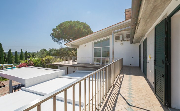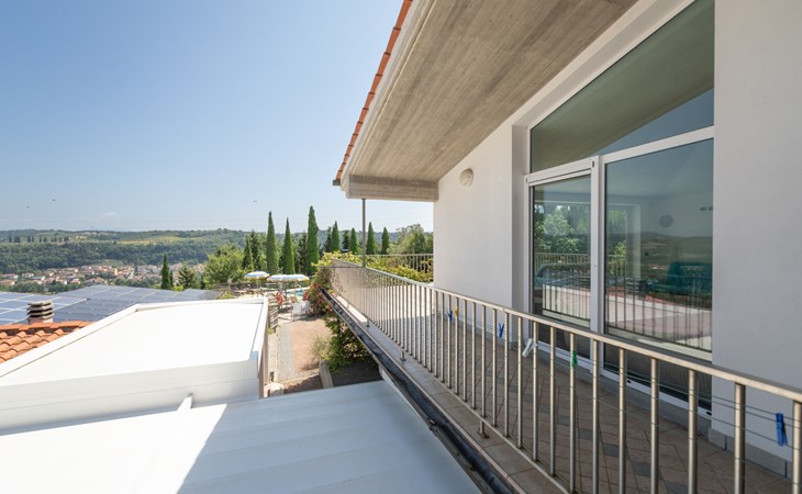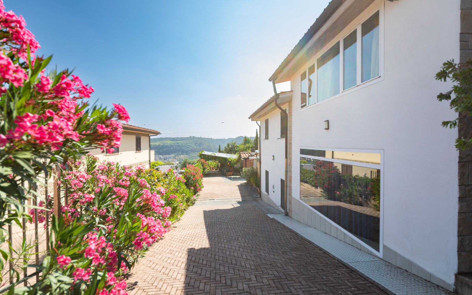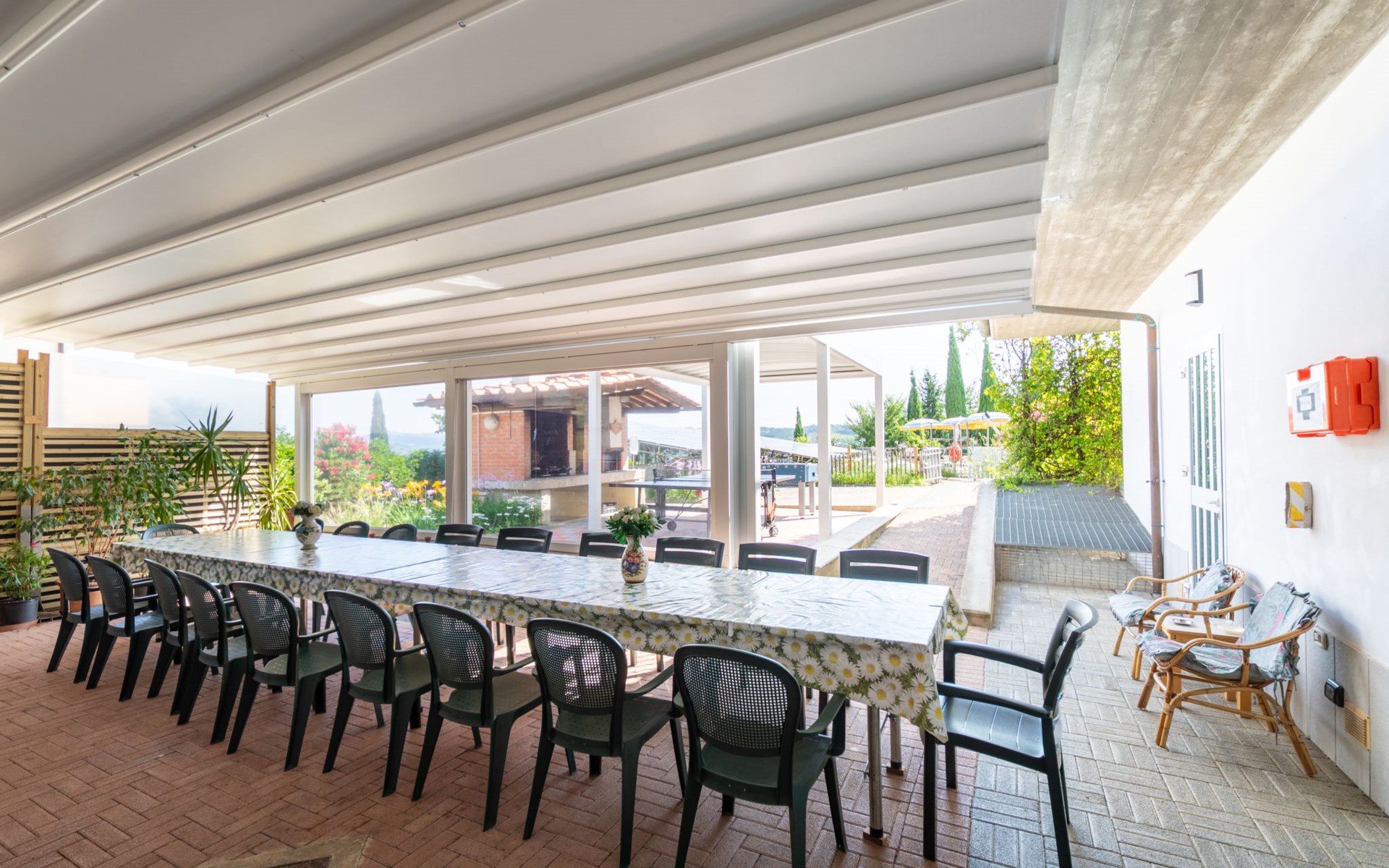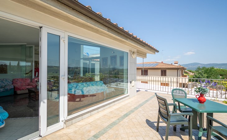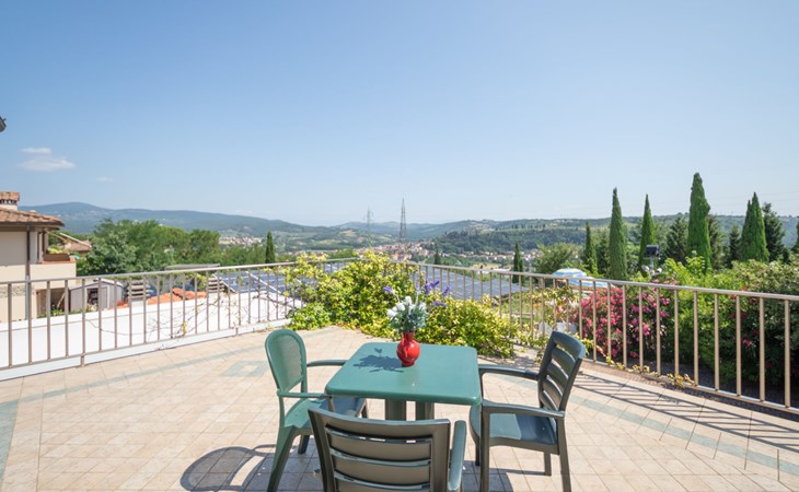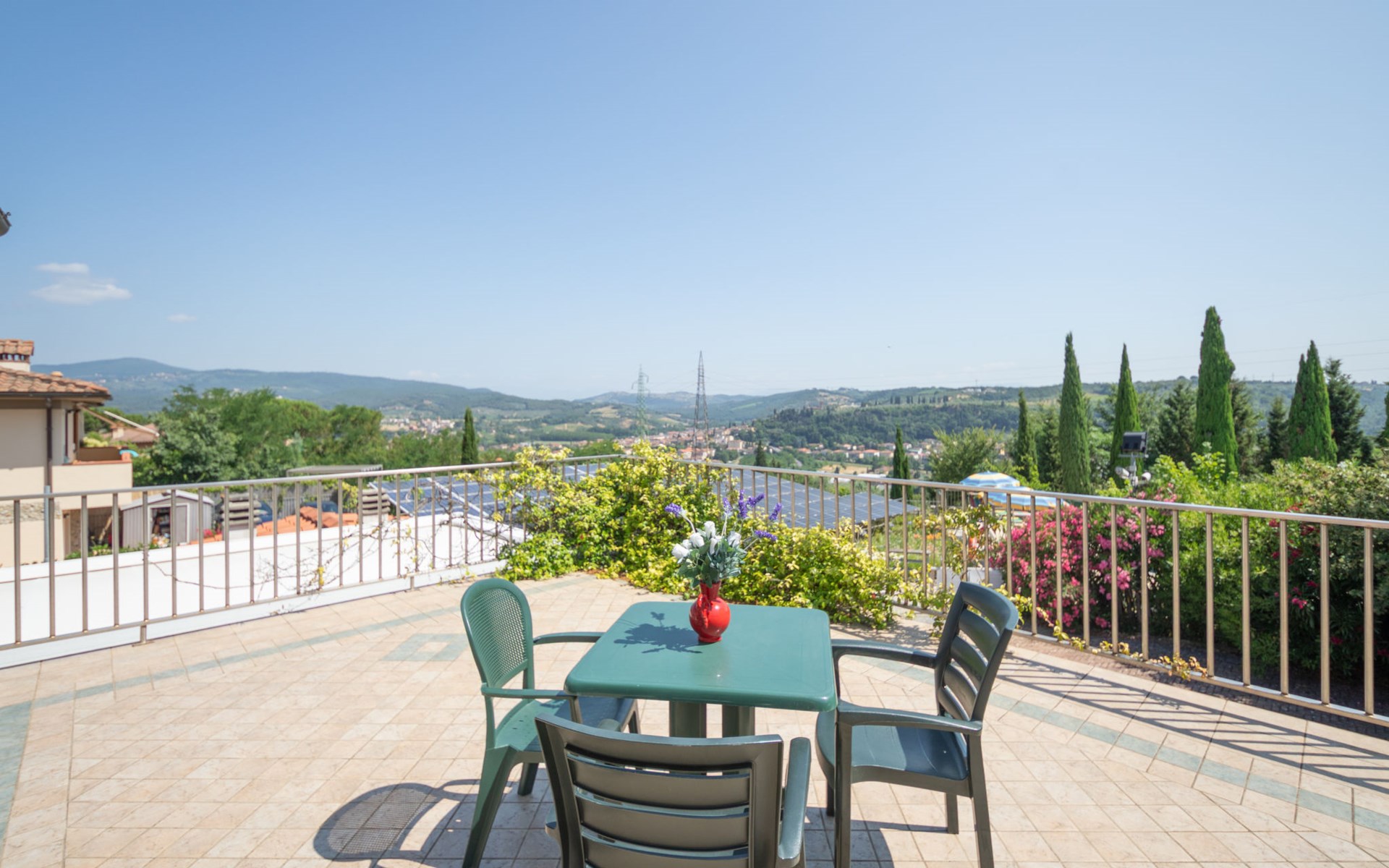 Villa "La Rosa", 250 m a.s.l., semi-detached, built in 2005, surrounded by trees, meadows and vineyards. 2 km from the centre of Montelupo Fiorentino, 22 km from the centre of Firenze, 60 km from the centre of Pisa, in a sunny position on a slope, 70 km from the sea. Private: terraced garden, 2'000 m2 (fenced), swimming pool (12 x 6 m, depth 150 cm, seasonal availability: 03.May. - 20.Sep. pool opening hours: 10:00-19:00). Outdoor shower, table tennis, basketball, garden furniture, barbecue, pool maintenance by the owner/gardener. In the house: central heating system, heating available only from 01.Nov. - 15.Apr.. Parking on the premises. E-charging station. Shop 1 km, grocery 1 km, supermarket 1.8 km, bus stop 1 km, railway station "Montelupo Fiorentino" 2 km, thermal baths "Gambassi Terme" 30 km. Golf course (10 hole) 4 km. Nearby attractions: San Miniato 18 km, San Casciano in Val di Pesa 20 km, Certaldo 26 km, San Gimignano 38 km. The house can be booked, even for a group of 13 people (our ref. IT5492.901.1) and for a group of 09 people (our ref . IT5492.902.1). 1 pool towel for adults provided free of charge. Electric car battery charger 20 kw type 2.