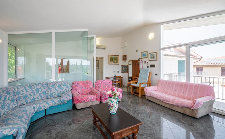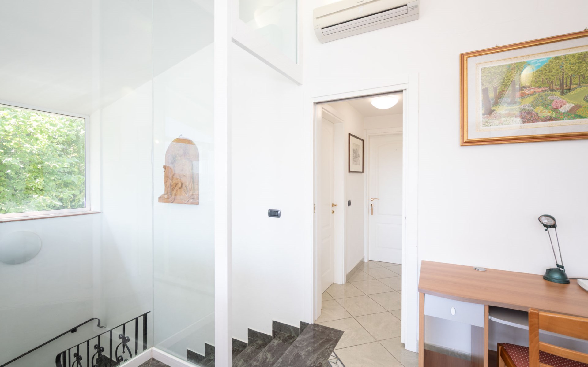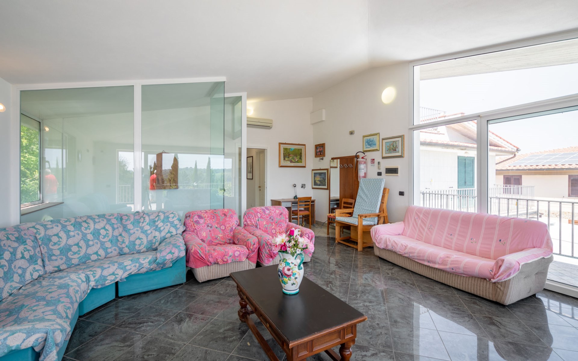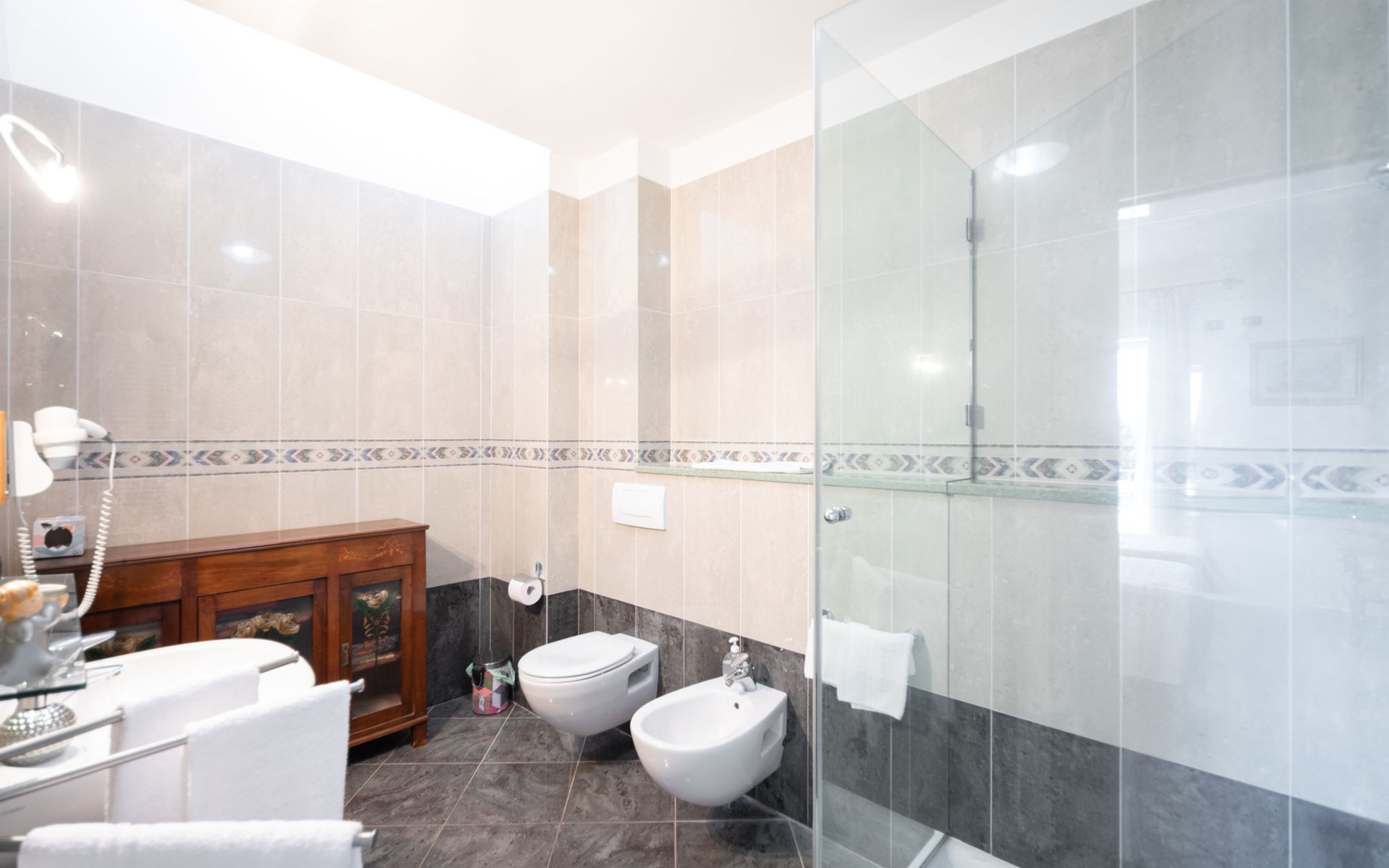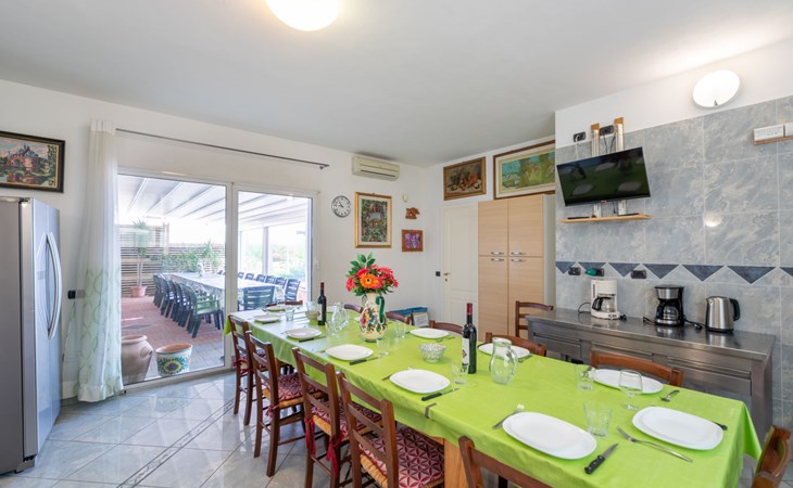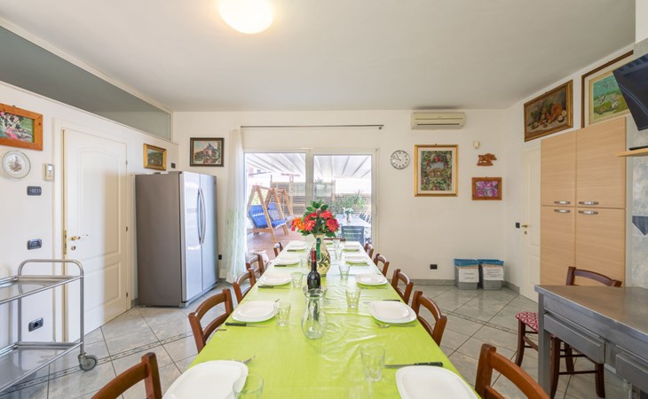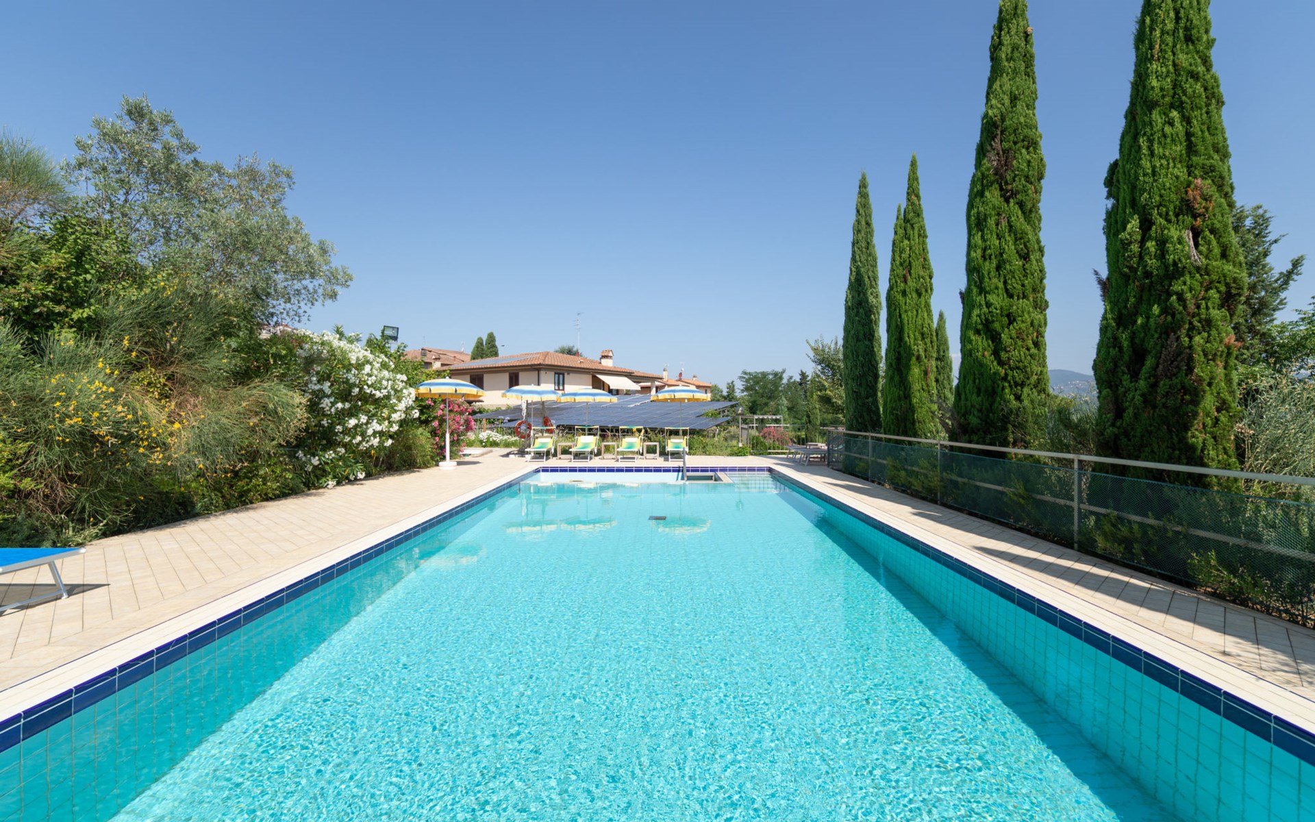 Villa "La Rosa", 250 m a.s.l., semi-detached, built in 2005, surrounded by trees, meadows and vineyards. 2 km from the centre of Montelupo Fiorentino, 22 km from the centre of Firenze, 60 km from the centre of Pisa, in a sunny position on a slope, 70 km from the sea. Private: terraced garden, 2'000 m2 (fenced), swimming pool (12 x 6 m, depth 150 cm, seasonal availability: 03.May. - 20.Sep. pool opening hours: 10:00-19:00). Outdoor shower, table tennis, basketball, garden furniture, barbecue, pool maintenance by the owner/gardener. In the house: central heating system, heating available only from 01.Nov. - 15.Apr.. Parking on the premises. E-charging station. Shop 1 km, grocery 1 km, supermarket 1.8 km, bus stop 1 km, railway station "Montelupo Fiorentino" 2 km, thermal baths "Gambassi Terme" 30 km. Golf course (10 hole) 4 km. Nearby attractions: San Miniato 18 km, San Casciano in Val di Pesa 20 km, Certaldo 26 km, San Gimignano 38 km. The house can be booked, even for a group of 13 people (our ref. IT5492.901.1) and for a group of 09 people (our ref . IT5492.902.1). 1 pool towel for adults provided free of charge. Electric car battery charger 20 kw type 2.
