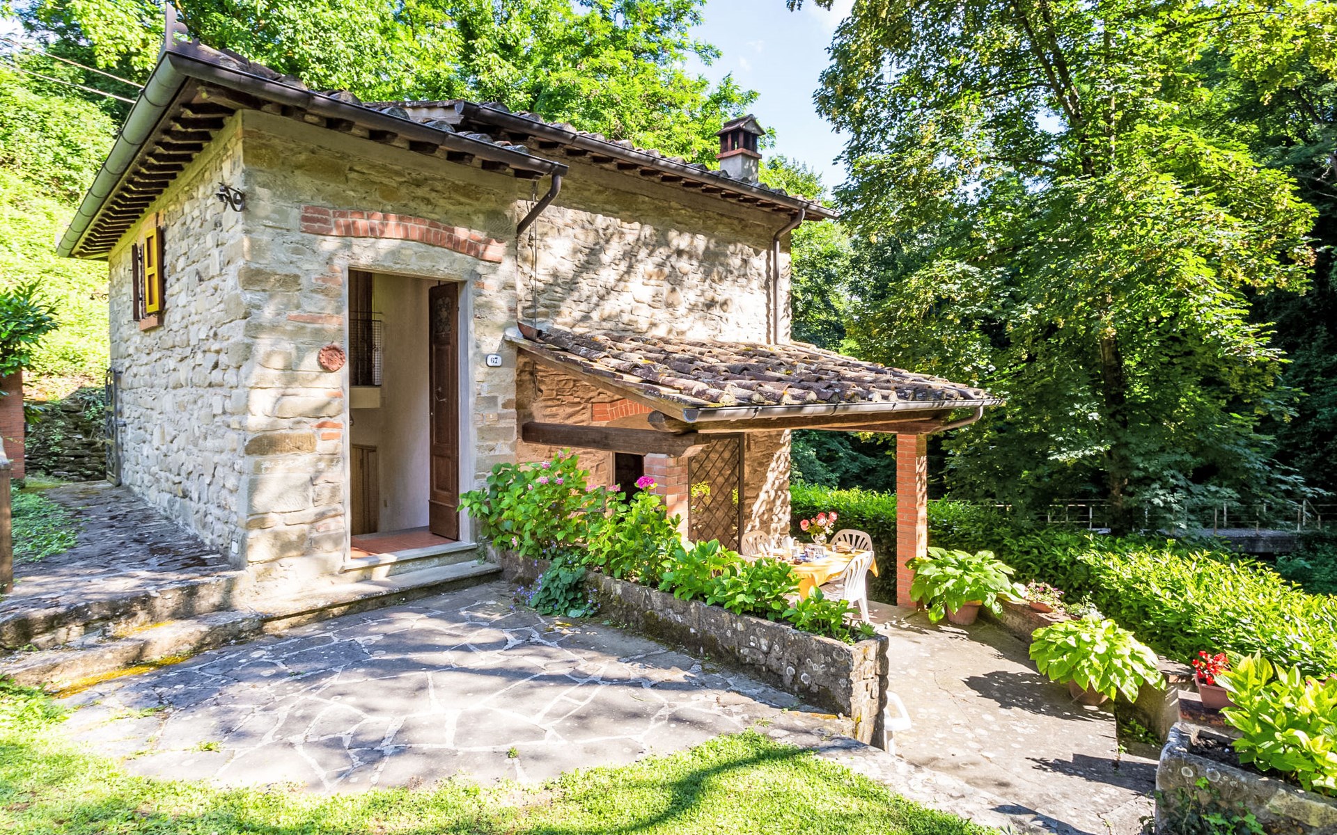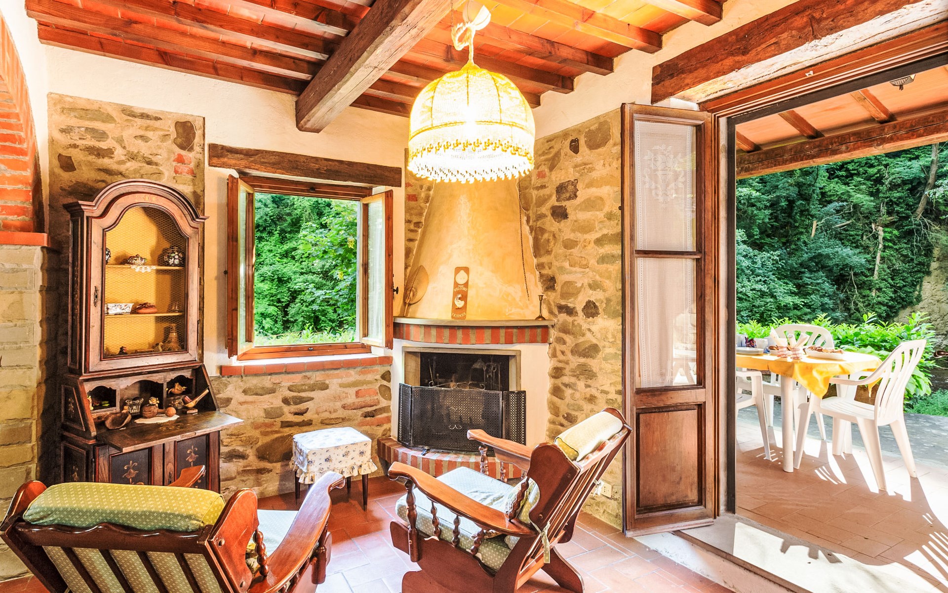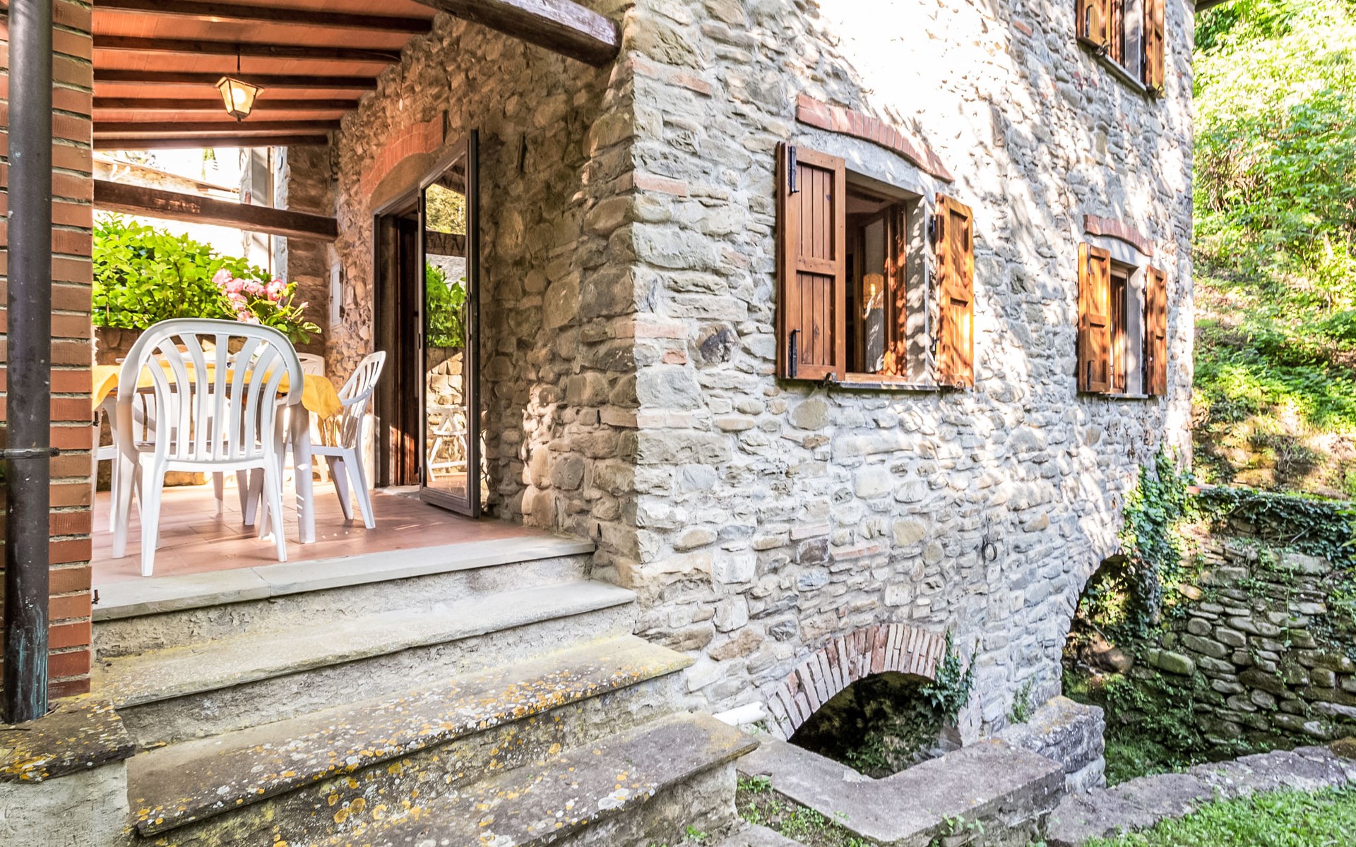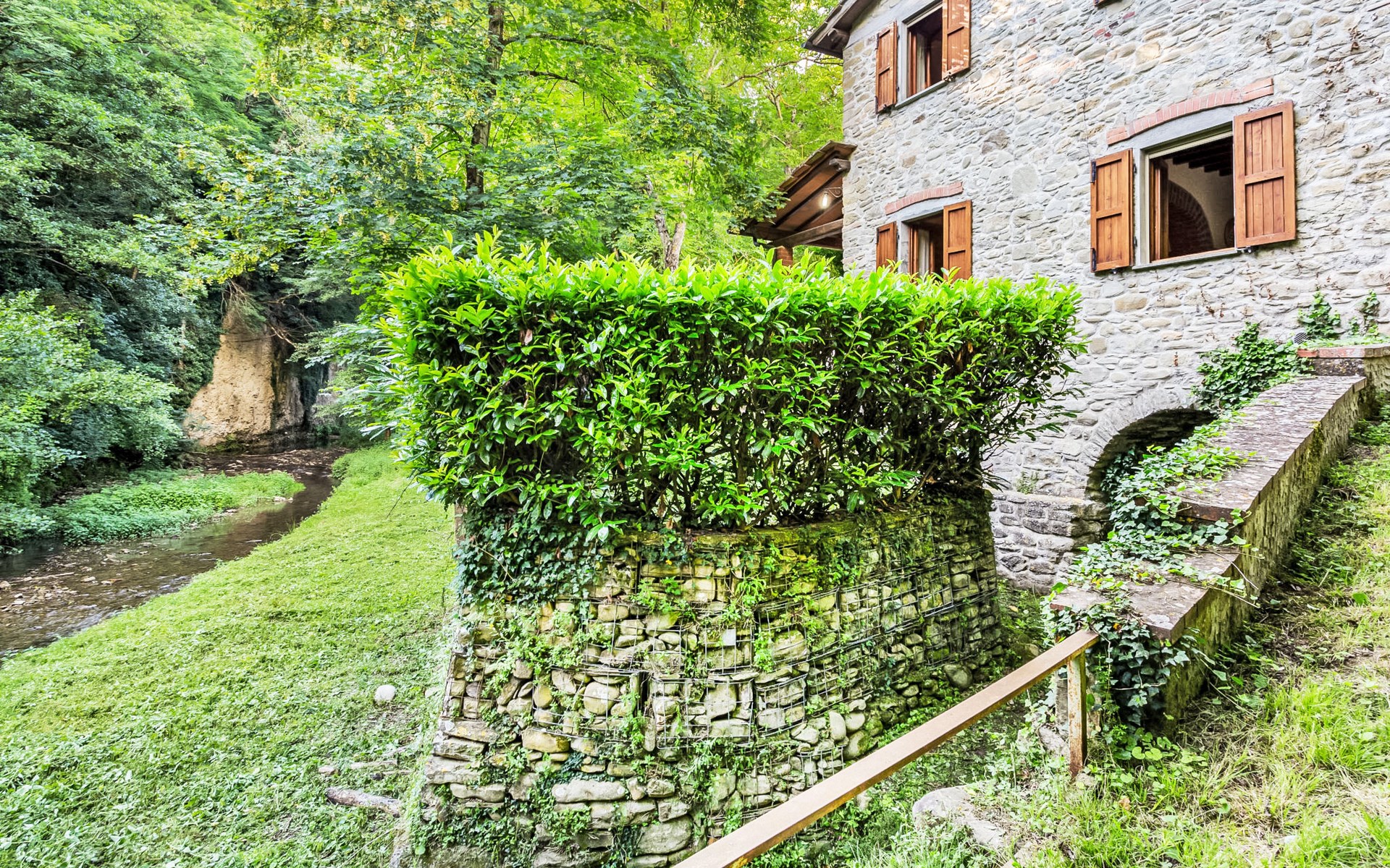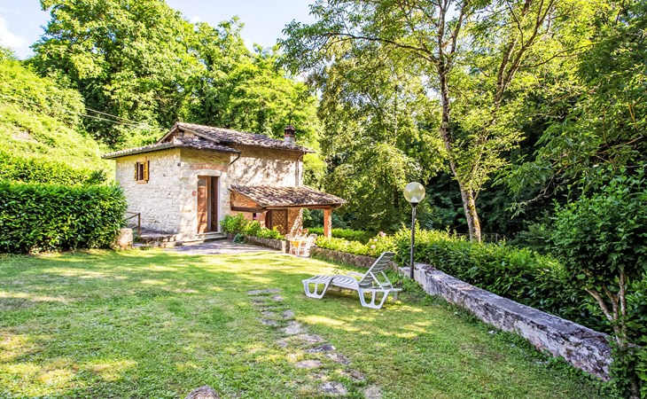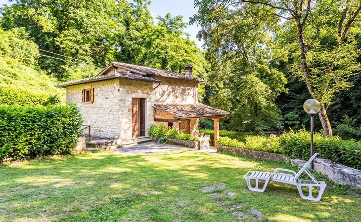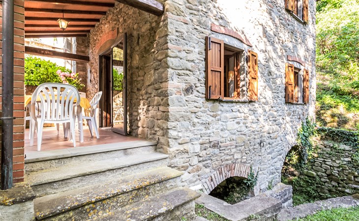 Very beautiful windmill "La Ripresa", 2 storeys, from the 16th century. 6 km from the centre of Vicchio di Mugello, 36 km from the centre of Firenze, in a secluded, quiet position, 25 m from the river, in the countryside. Private: garden 1'000 m2 with lawn and wildlife garden. In the house: central heating system, heating to be paid on the spot, heating available only from 01.Nov. - 04.Apr.. Narrow motor access to 100 m from the house. Parking on the premises. Grocery 2 km, supermarket 6 km, shopping centre 6 km.