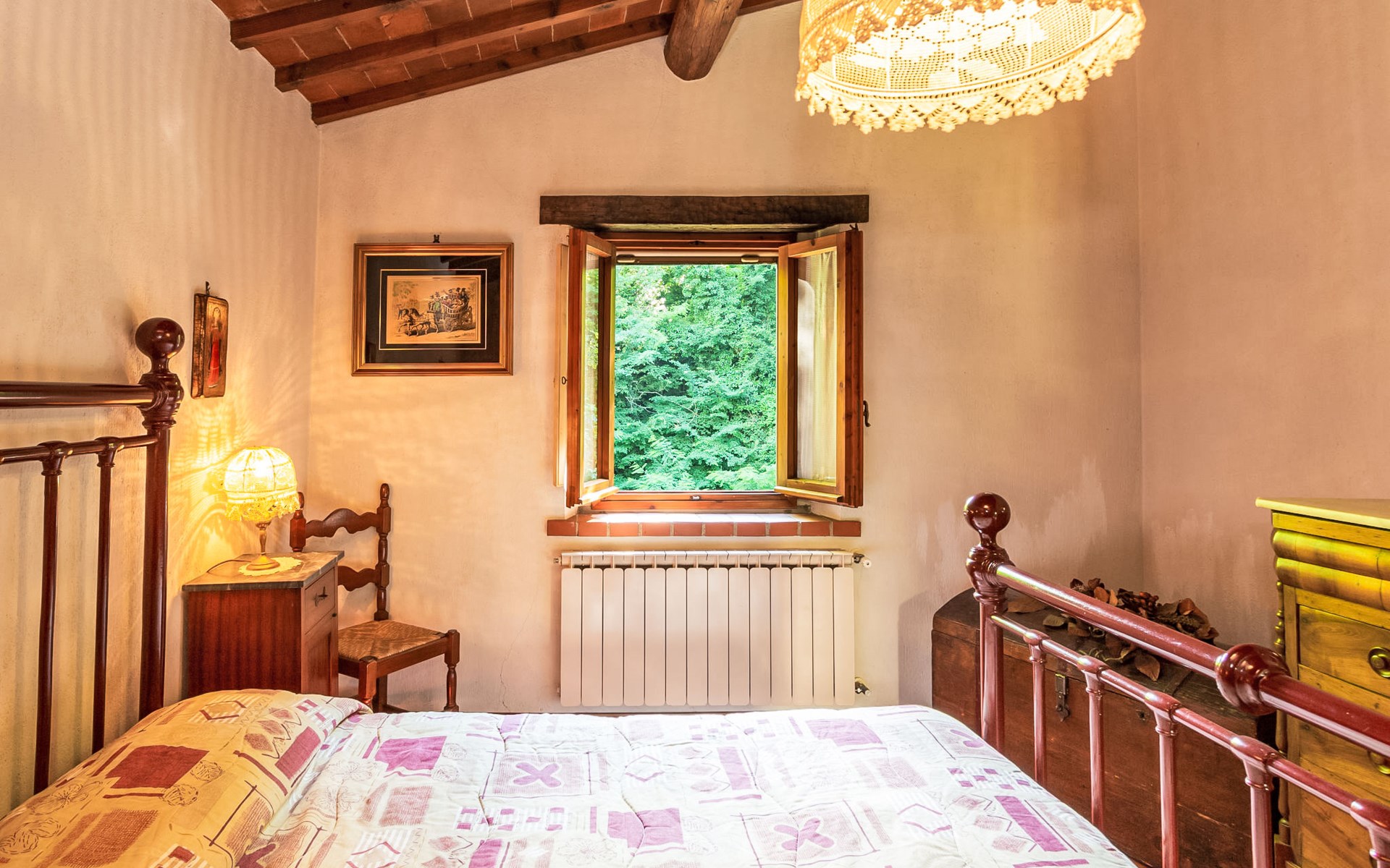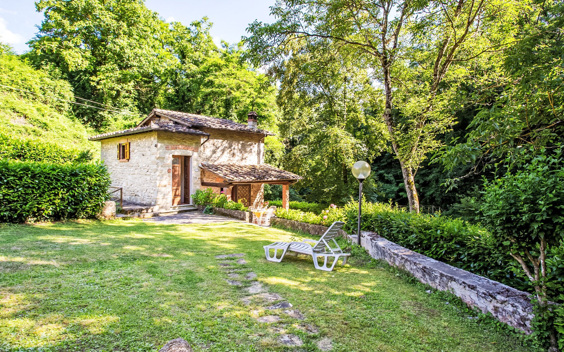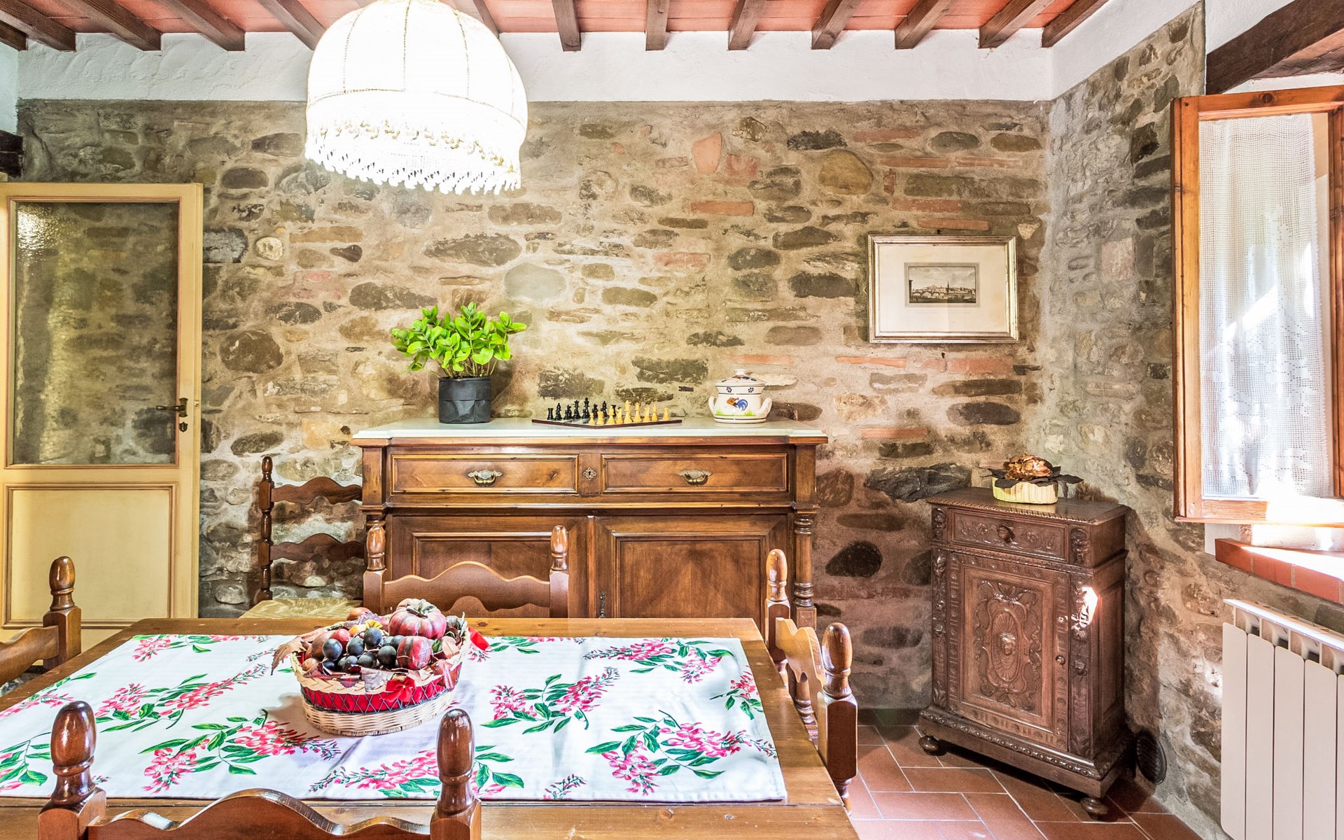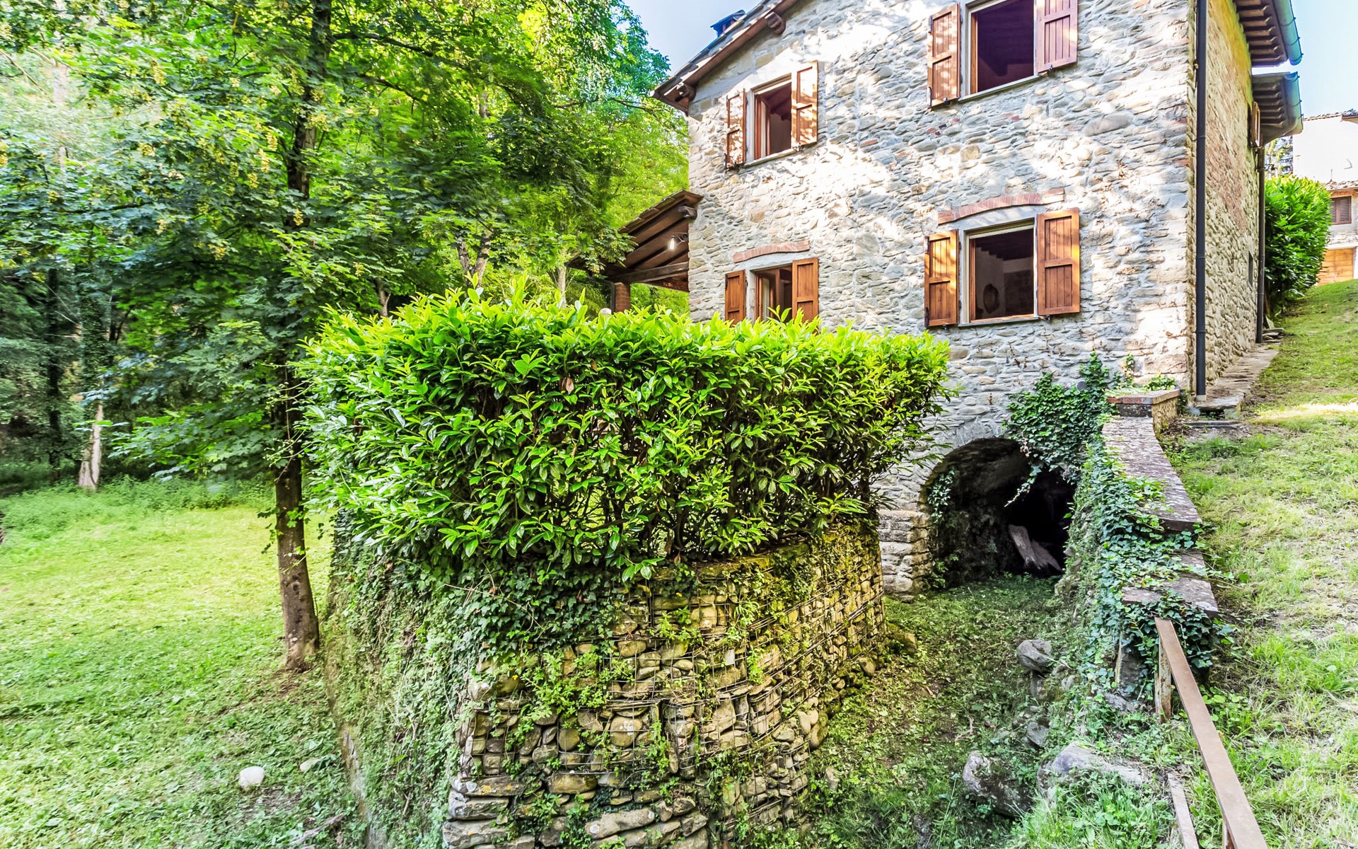 Very beautiful windmill "La Ripresa", 2 storeys, from the 16th century. 6 km from the centre of Vicchio di Mugello, 36 km from the centre of Firenze, in a secluded, quiet position, 25 m from the river, in the countryside. Private: garden 1'000 m2 with lawn and wildlife garden. In the house: central heating system, heating to be paid on the spot, heating available only from 01.Nov. - 04.Apr.. Narrow motor access to 100 m from the house. Parking on the premises. Grocery 2 km, supermarket 6 km, shopping centre 6 km.