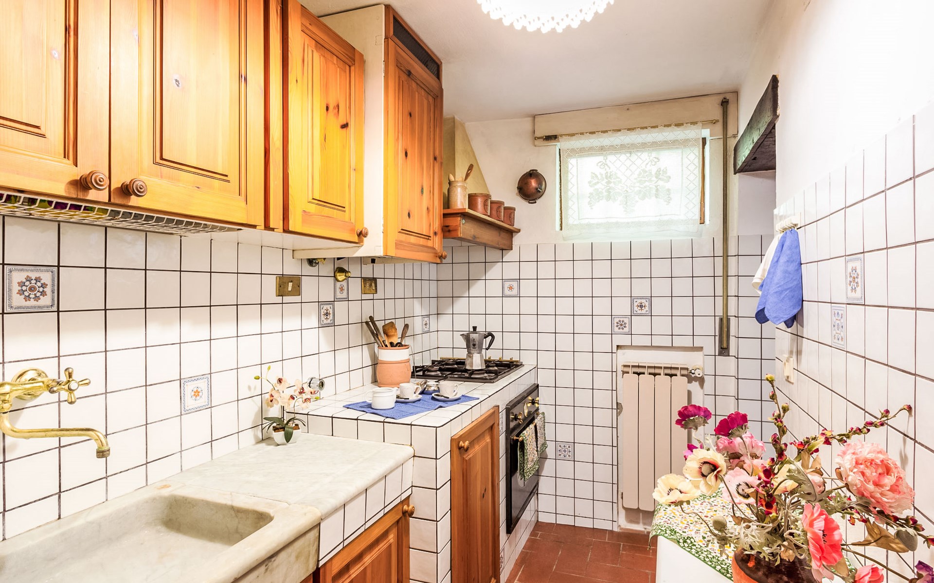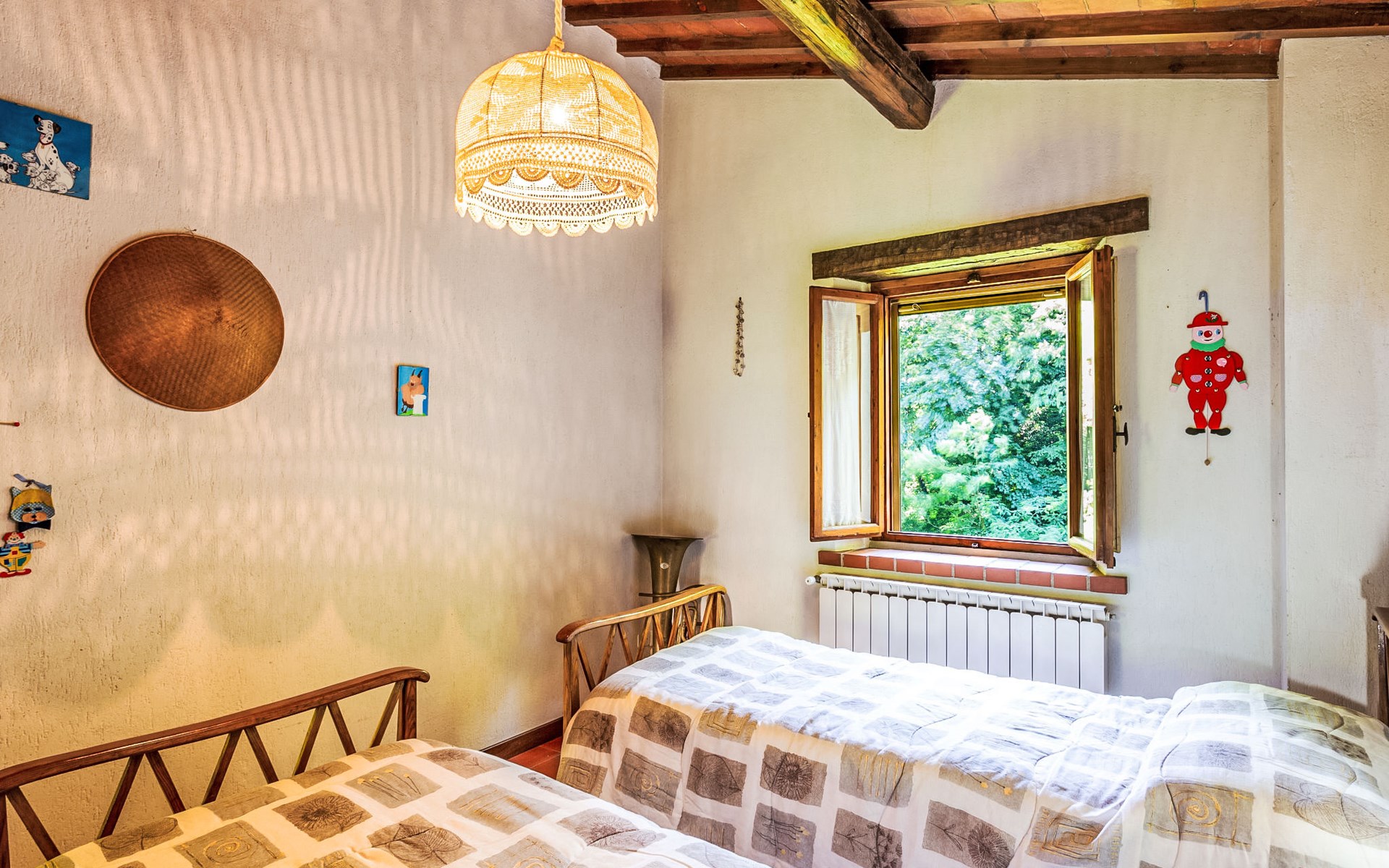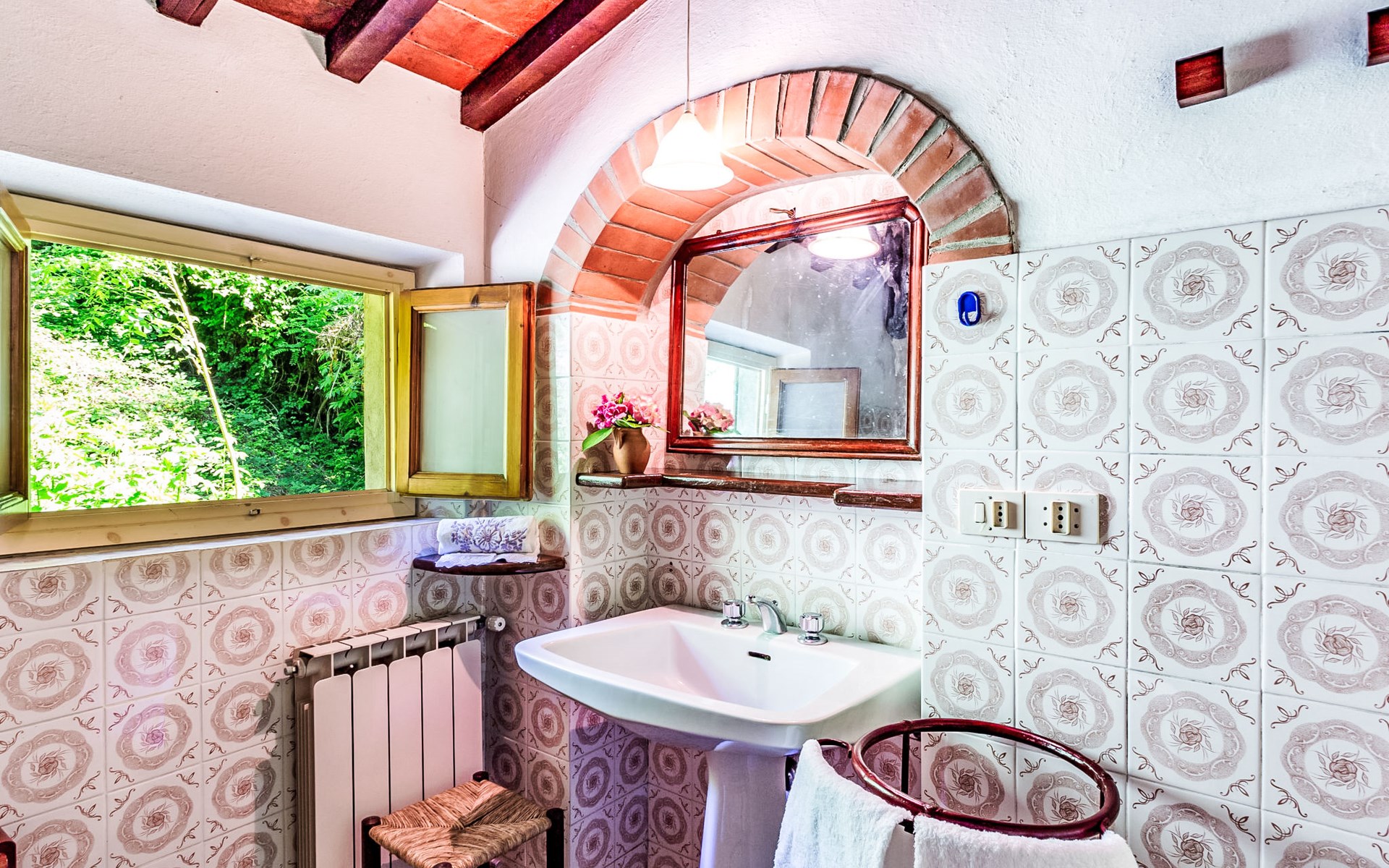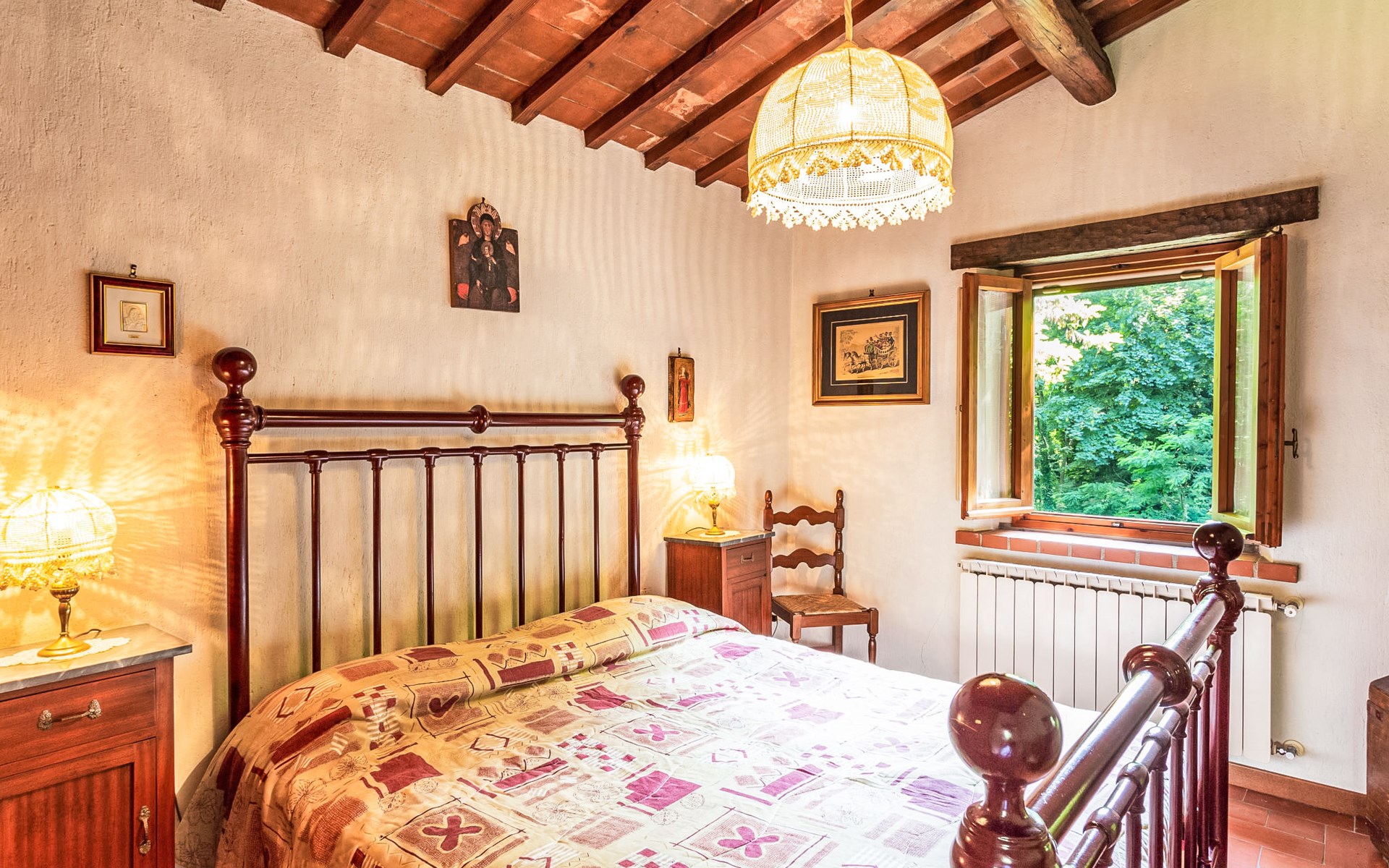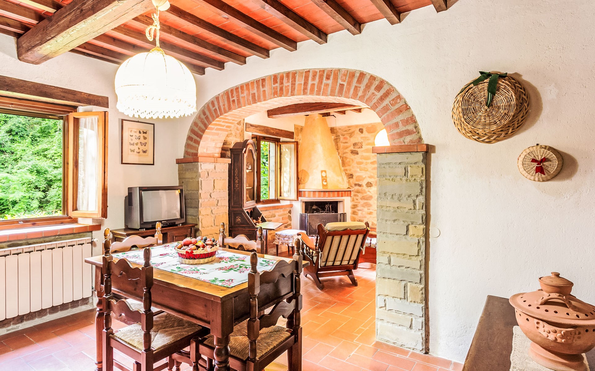 Very beautiful windmill "La Ripresa", 2 storeys, from the 16th century. 6 km from the centre of Vicchio di Mugello, 36 km from the centre of Firenze, in a secluded, quiet position, 25 m from the river, in the countryside. Private: garden 1'000 m2 with lawn and wildlife garden. In the house: central heating system, heating to be paid on the spot, heating available only from 01.Nov. - 04.Apr.. Narrow motor access to 100 m from the house. Parking on the premises. Grocery 2 km, supermarket 6 km, shopping centre 6 km.