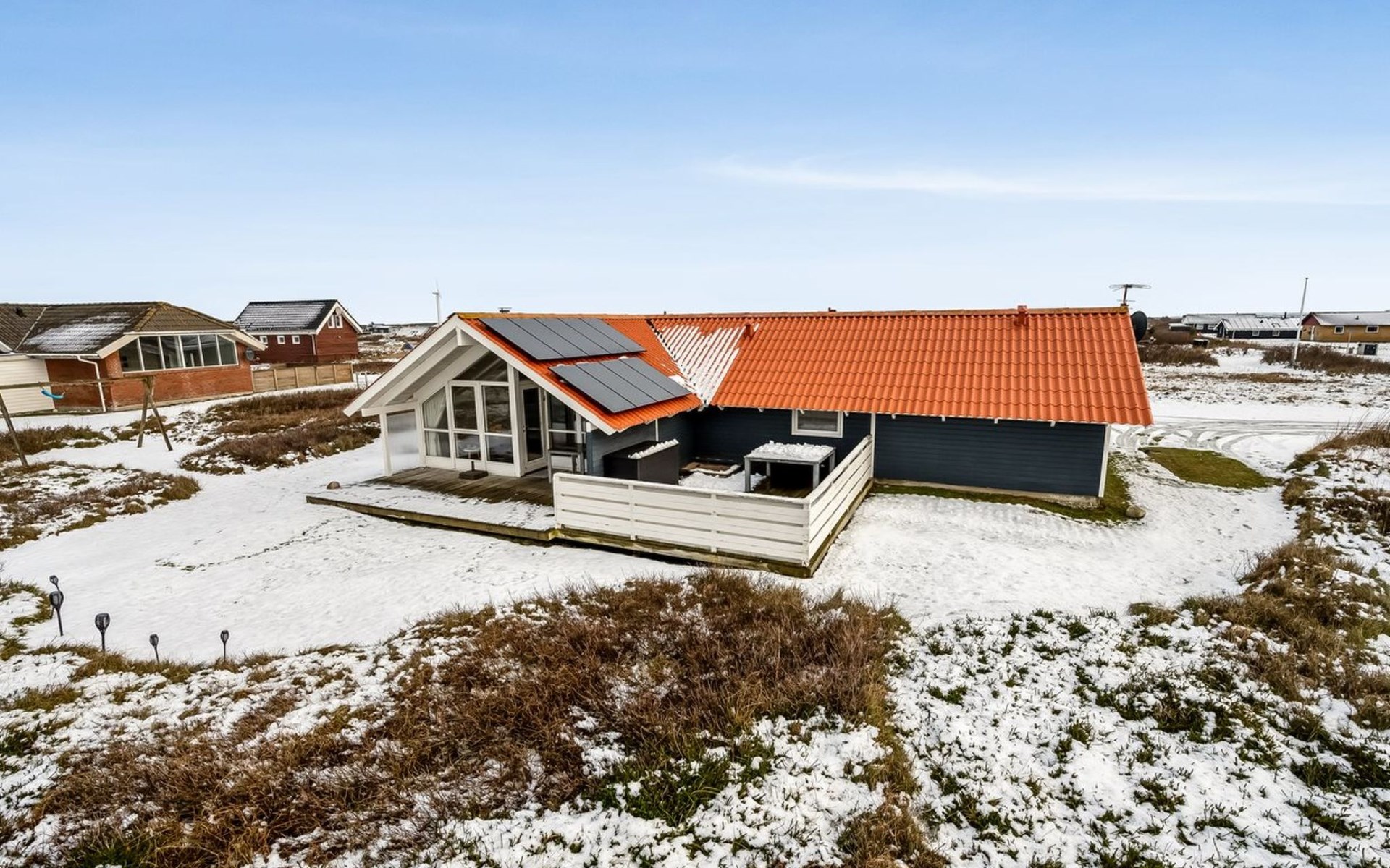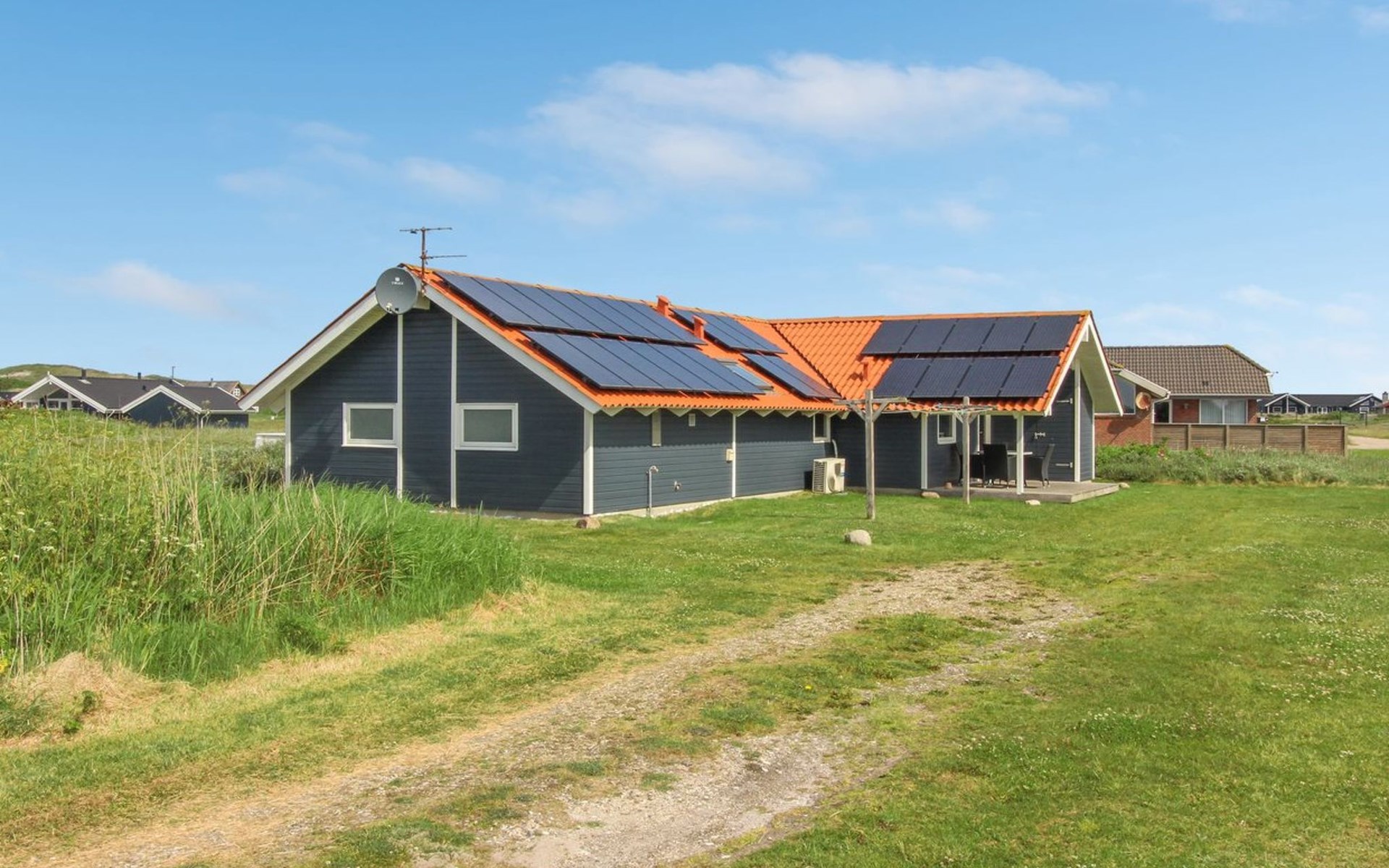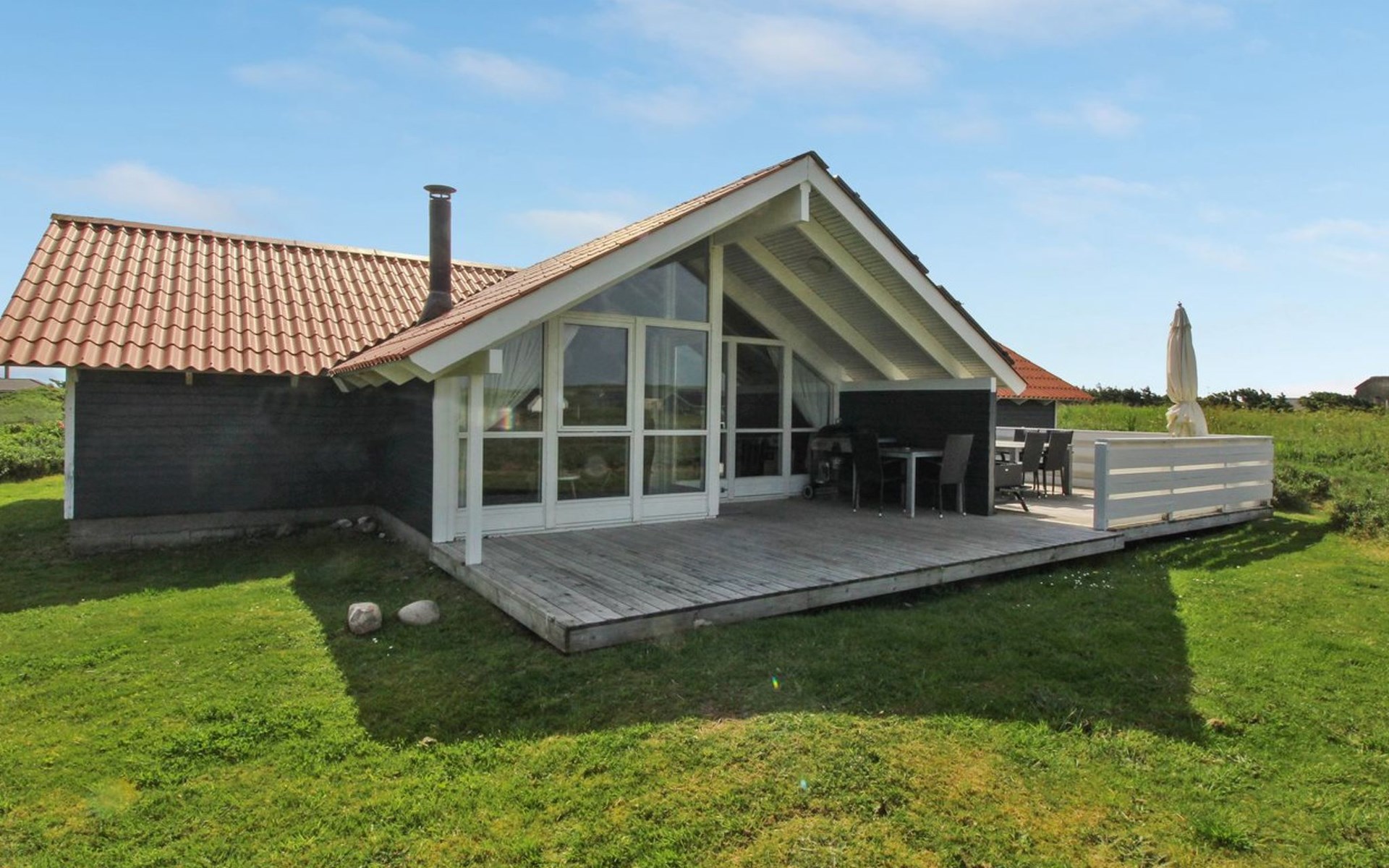Single-family house, built in 1992. 150 m from the sea. Private: natural state property 2'500 m2. Terrace (30 m2), children's playground. In the house: sauna, washing machine, tumble dryer. Parking at the house. E-charging station. Grocery 1.5 km. The owner does not accept any youth groups.