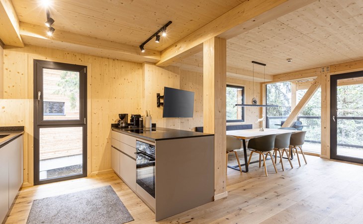 Turracher Höhe: Modern, comfortable resort "Naturchalets Turracher Höhe by Alps", 1'700 m a.s.l.. 10 km from the centre of Ebene Reichenau, in a quiet, sunny position on a slope, 2 km from the skiing area. In Winter: please take snow chains. Parking at the house. Supermarket 8 km, bus stop "Predlitz" 20 km, railway station "Predlitz" 20 km. Skisport facilities 2 km, ski rental 2 km, ski school 2 km, cross country ski track 2 km. Well-known ski regions can easily be reached: Turracher Höhe.
