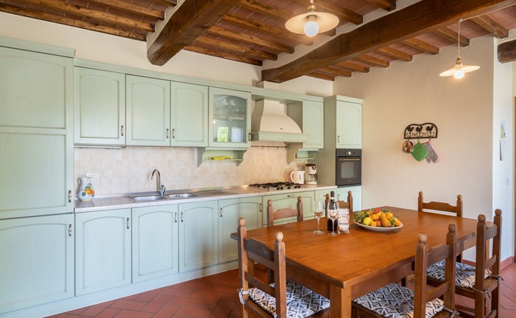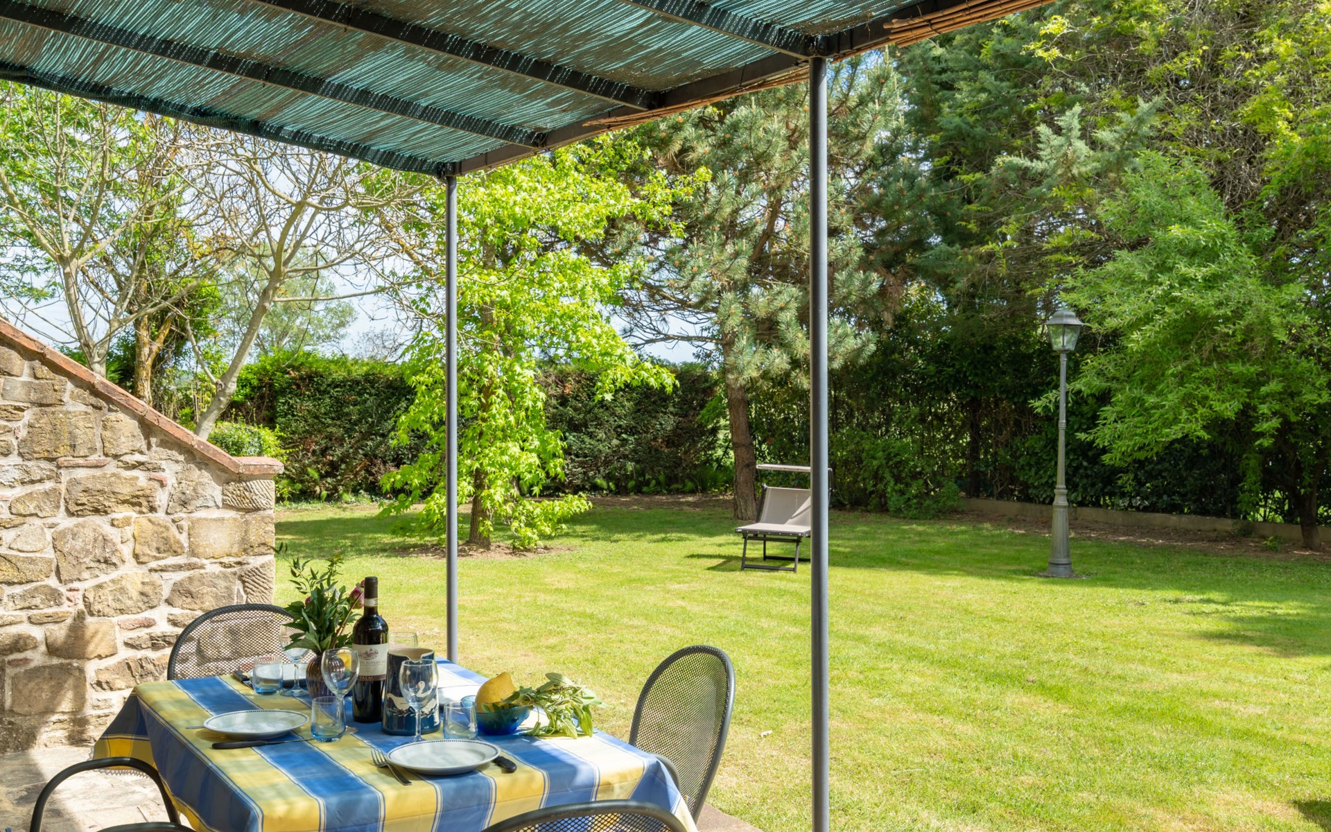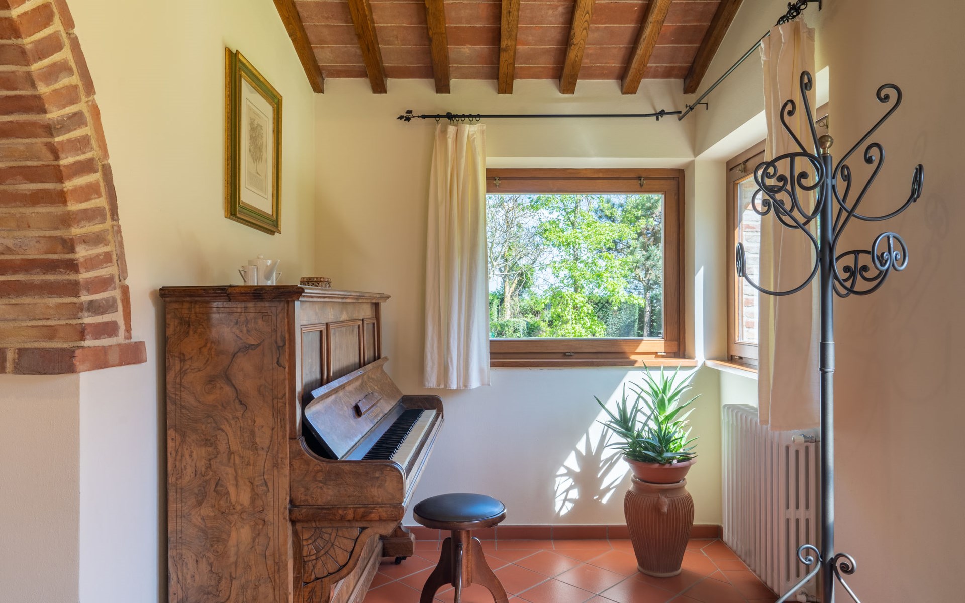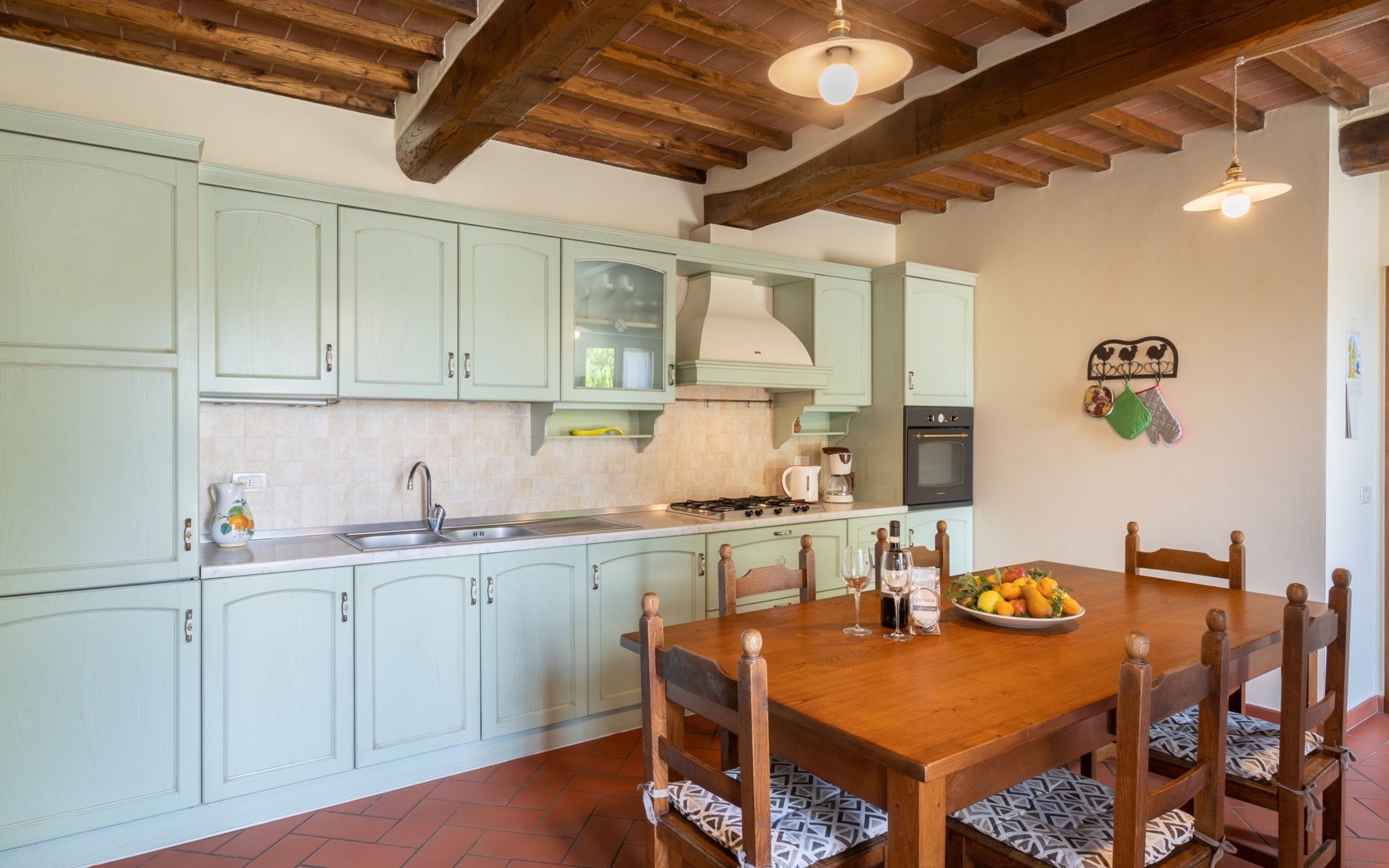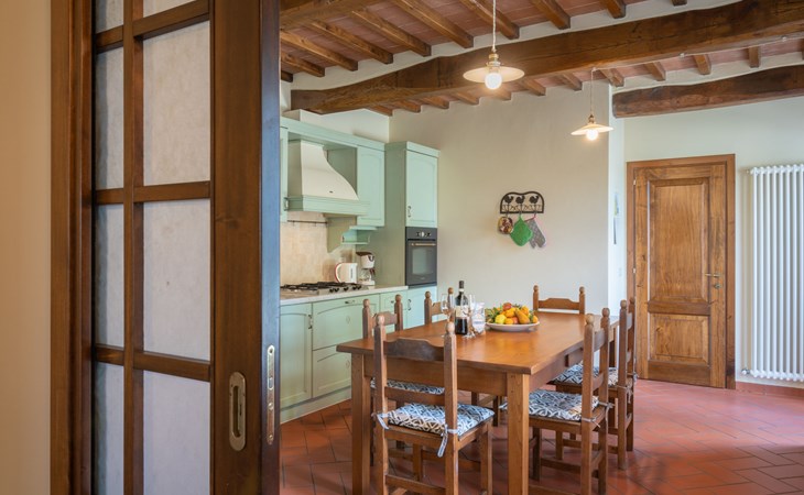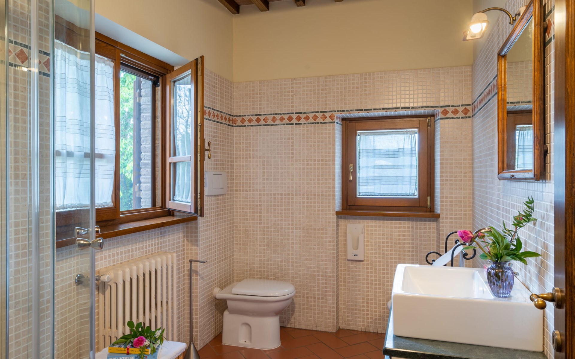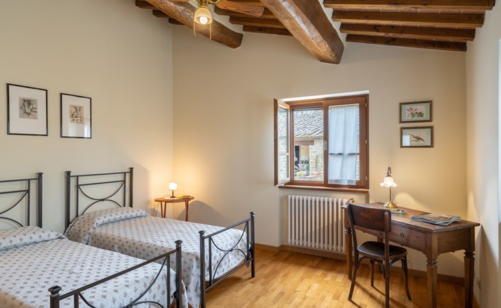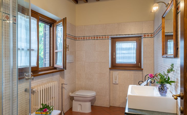 Cosy cottage, recently renovated, divided into two spaciuos parts, each with private garden of 400 m2. Under conservation act. A large fenced garden surrounds this house and the owners house which lay nearby. Swimming pool with outdoor hot water shower. View of the sunflowers fields, typical of the tuscan landcape. Sunset over the famous Gargonza castle. Private gate. Video entry phone for each apartments. The interiors are well kept, have terracotta and parquet floorings, beamed ceilings, stone archways, bedrooms had ceiling fan. Wrought iron beds. Siena 50 km. Florence 60 km. Rome is approx 2 hours by car. Cosy working farm "Casale il Giglio", renovated in 2004. 5 km from the centre of Monte San Savino, 19 km from the centre of Arezzo, 30 km from the centre of Terme di Rapolano, in the countryside. Private: garden 800 m2 (fenced), swimming pool (11 x 5 m, depth 100 - 175 cm, seasonal availability: 27.Apr. - 12.Oct.) with salt-electrolysis pool-cleaning system. Unconventional pool shape. Outdoor shower, table tennis, boules, garden furniture. In the complex: WiFi, table football, heating to be paid on the spot, heating available only from 01.Nov. - 15.Apr.. Available: bicycles (4). Parking at the house. Shop 5 km, restaurant 5 km, café 5 km, bus stop 800 m, railway station "Monte San Savino" 5 km, thermal baths "Rapolano Terme" 28 km. Riding stable 10 km. Nearby attractions: Lucignano 12 km, Rapolano Terme 28 km, Cortona 32 km, Montepulciano 37 km, Gaiole in Chianti 45 km. Please note: car recommended. Suitable for families, suitable for seniors. The owner lives on the same property.
