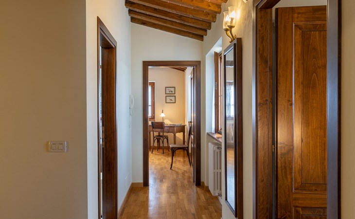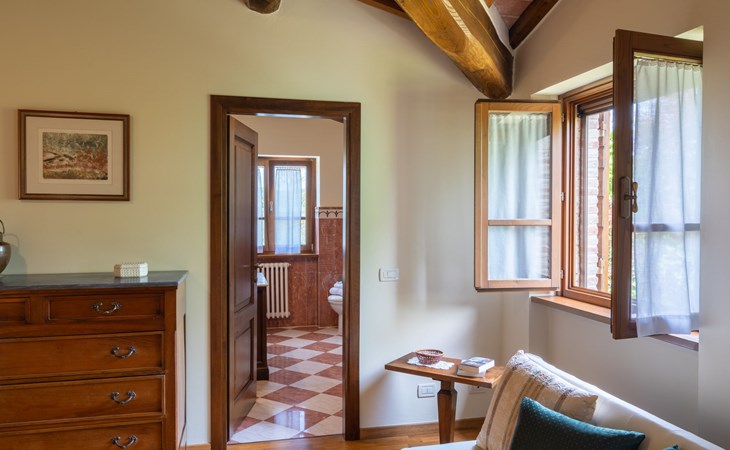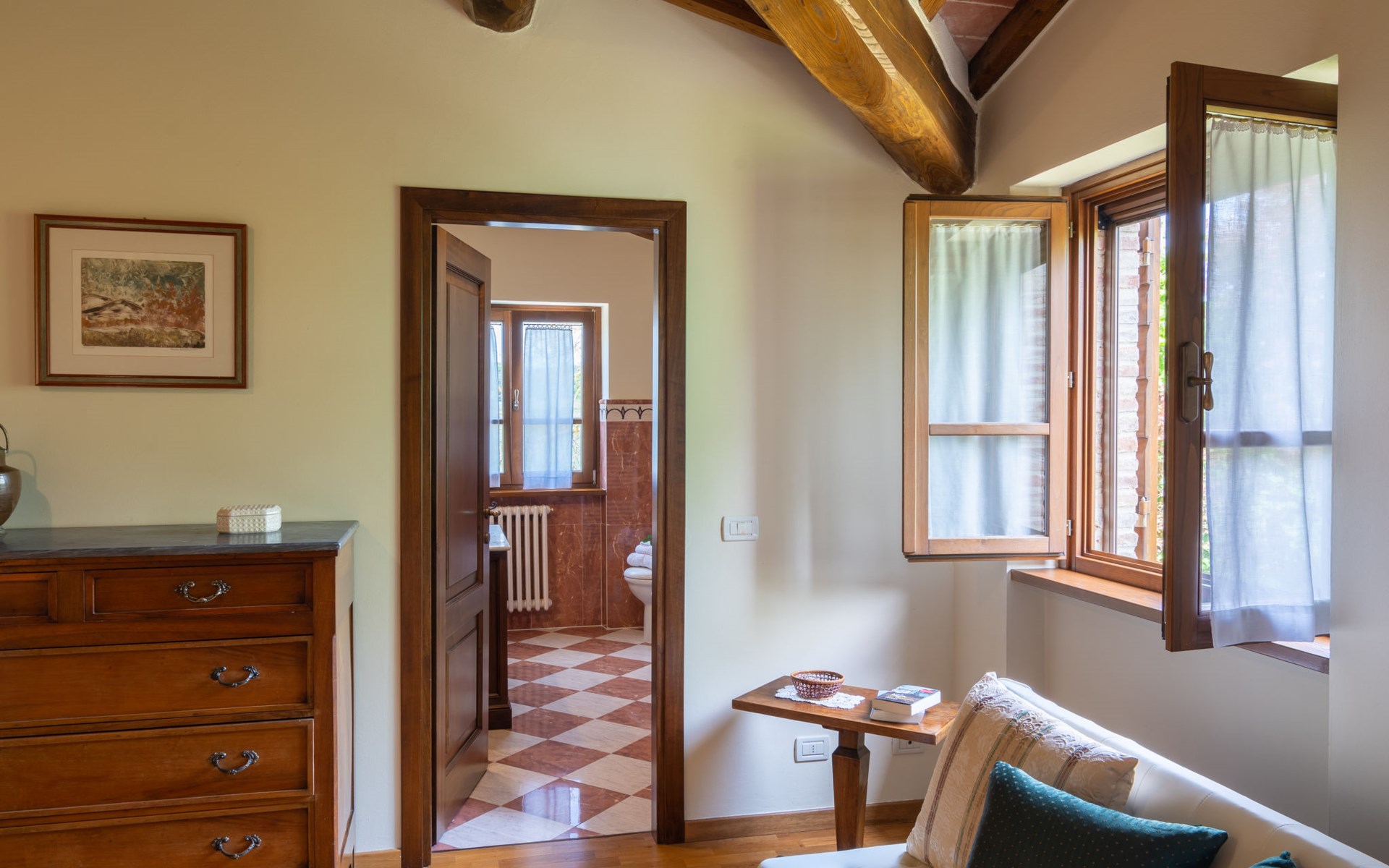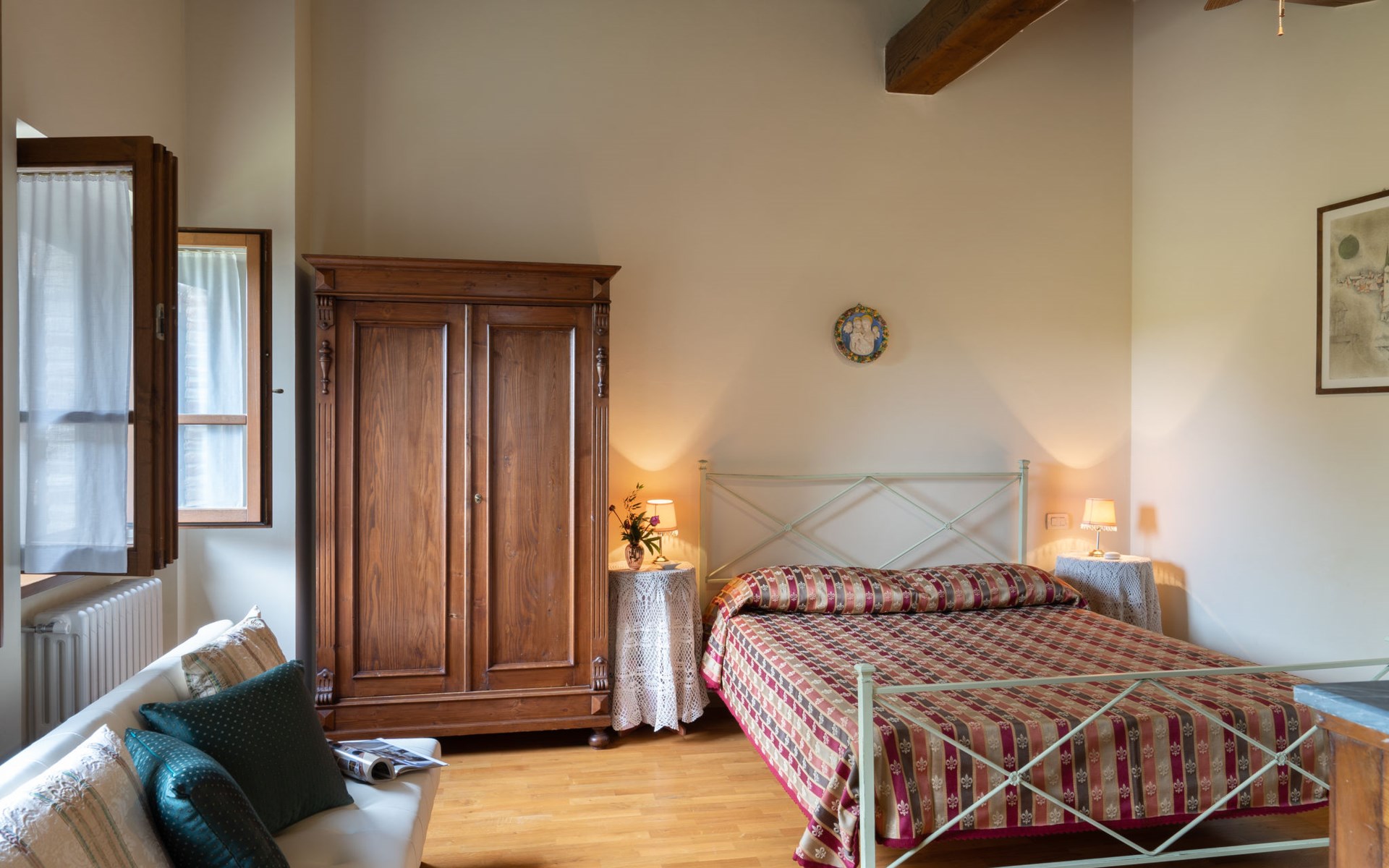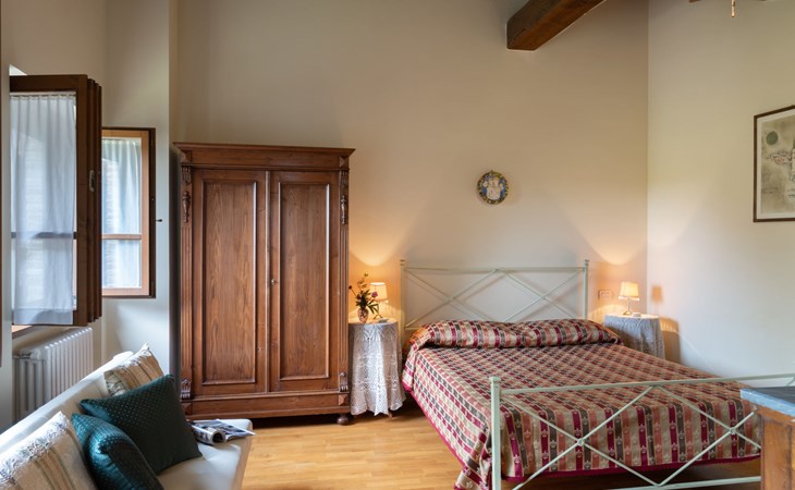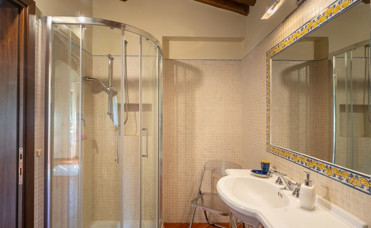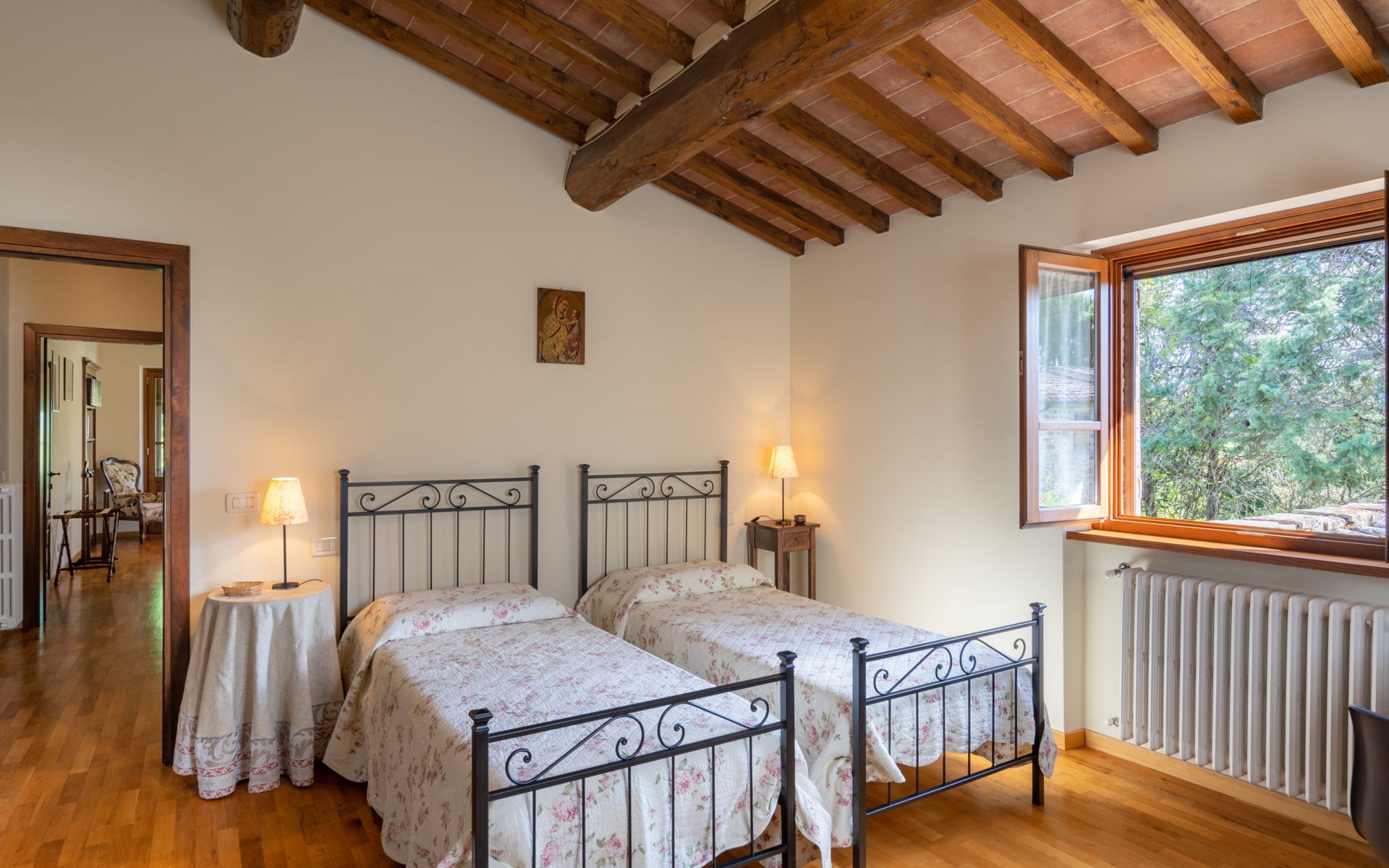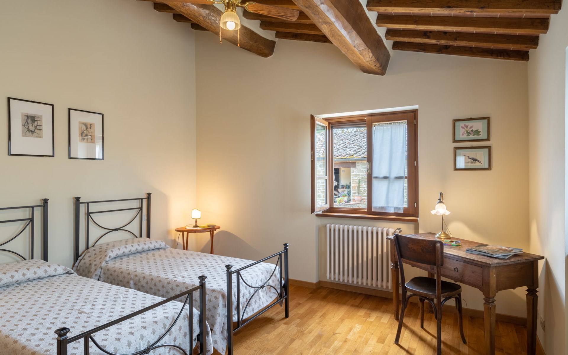 Cosy cottage, recently renovated, divided into two spaciuos parts, each with private garden of 400 m2. Under conservation act. A large fenced garden surrounds this house and the owners house which lay nearby. Swimming pool with outdoor hot water shower. View of the sunflowers fields, typical of the tuscan landcape. Sunset over the famous Gargonza castle. Private gate. Video entry phone for each apartments. The interiors are well kept, have terracotta and parquet floorings, beamed ceilings, stone archways, bedrooms had ceiling fan. Wrought iron beds. Siena 50 km. Florence 60 km. Rome is approx 2 hours by car. Cosy working farm "Casale il Giglio", renovated in 2004. 5 km from the centre of Monte San Savino, 19 km from the centre of Arezzo, 30 km from the centre of Terme di Rapolano, in the countryside. Private: garden 800 m2 (fenced), swimming pool (11 x 5 m, depth 100 - 175 cm, seasonal availability: 27.Apr. - 12.Oct.) with salt-electrolysis pool-cleaning system. Unconventional pool shape. Outdoor shower, table tennis, boules, garden furniture. In the complex: WiFi, table football, heating to be paid on the spot, heating available only from 01.Nov. - 15.Apr.. Available: bicycles (4). Parking at the house. Shop 5 km, restaurant 5 km, café 5 km, bus stop 800 m, railway station "Monte San Savino" 5 km, thermal baths "Rapolano Terme" 28 km. Riding stable 10 km. Nearby attractions: Lucignano 12 km, Rapolano Terme 28 km, Cortona 32 km, Montepulciano 37 km, Gaiole in Chianti 45 km. Please note: car recommended. Suitable for families, suitable for seniors. The owner lives on the same property.