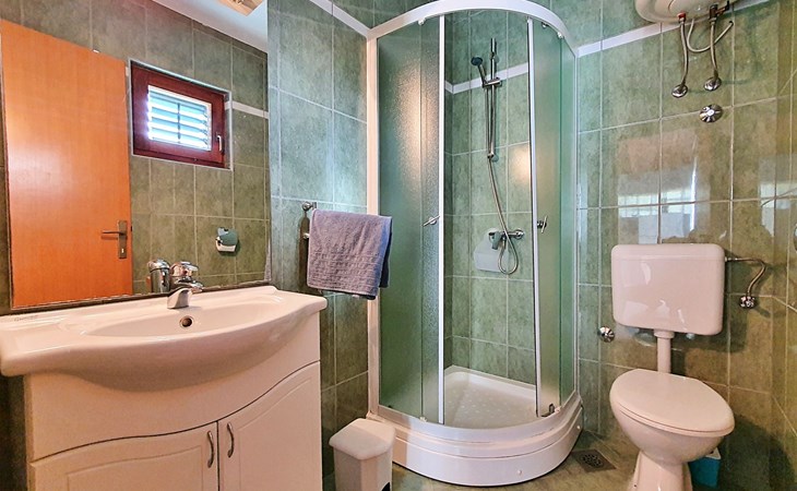 Holiday development "Camp Marko". 1 km from the centre of Rogoznica, 300 m from the sea, 300 m from the beach. For shared use: property 6'000 m2, swimming pool (10 x 5 m, depth 180 cm, seasonal availability: 21.May. - 01.Oct. pool opening hours: 10:00-18:00). Outdoor shower, barbecue. In the complex: restaurant, washing machine (for shared use). Parking on the premises. Shop 1 km, bus stop "Rogoznica" 2.4 km, rocky beach 300 m.
