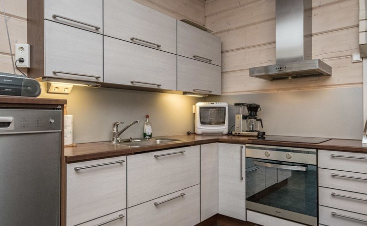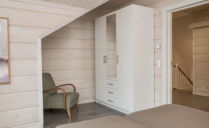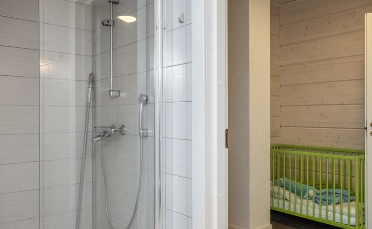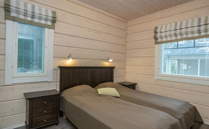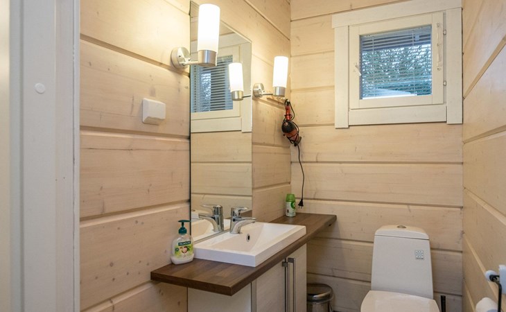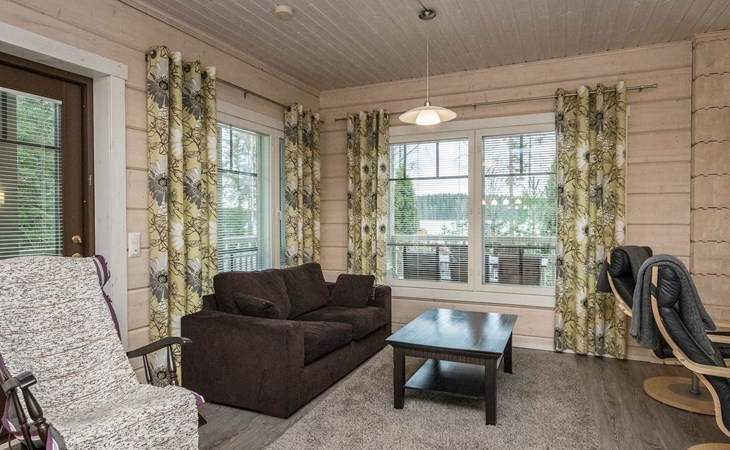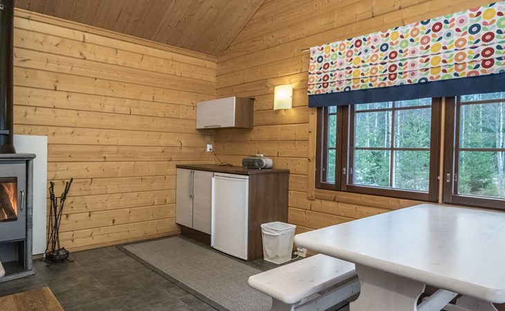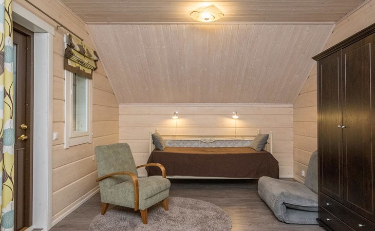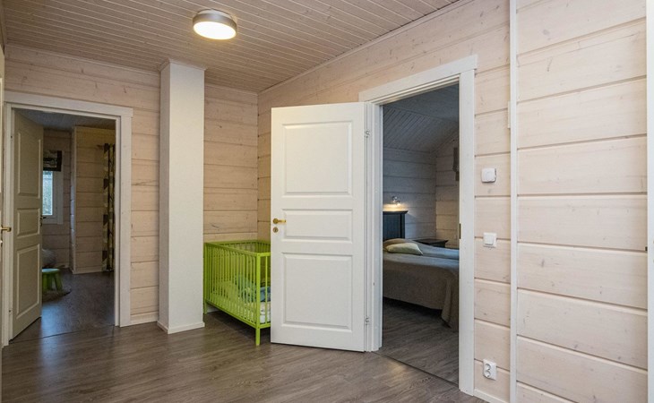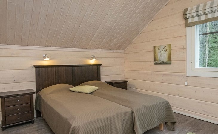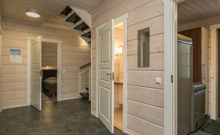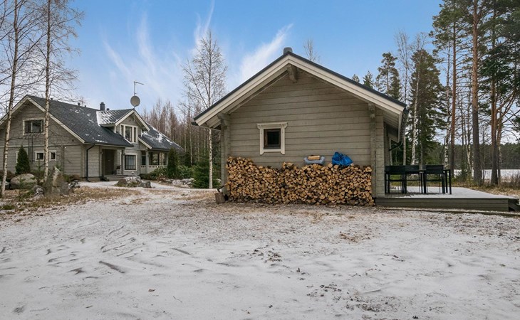 Log cabin 2010, kitchen, living room, bedroom (11 m²) two beds, utility room, washroom (2 showers) sauna, electric sauna stove, separate WC, terrace.