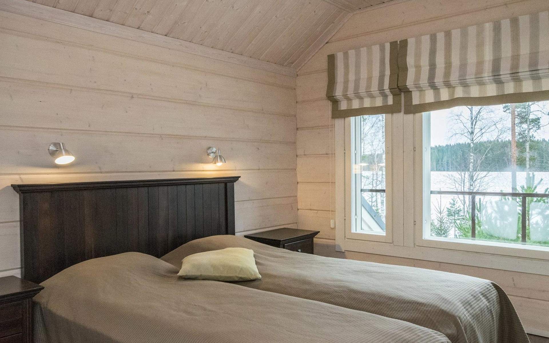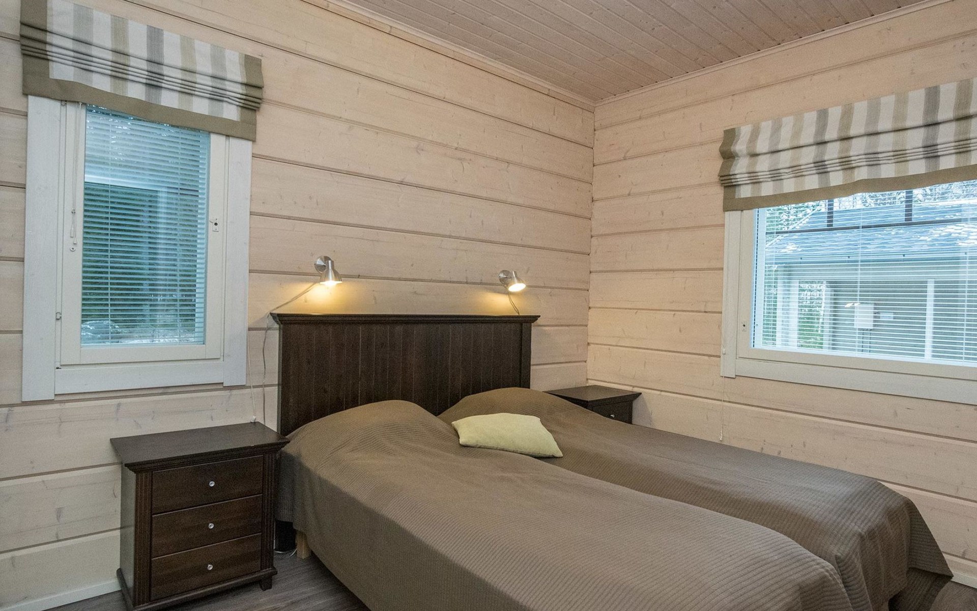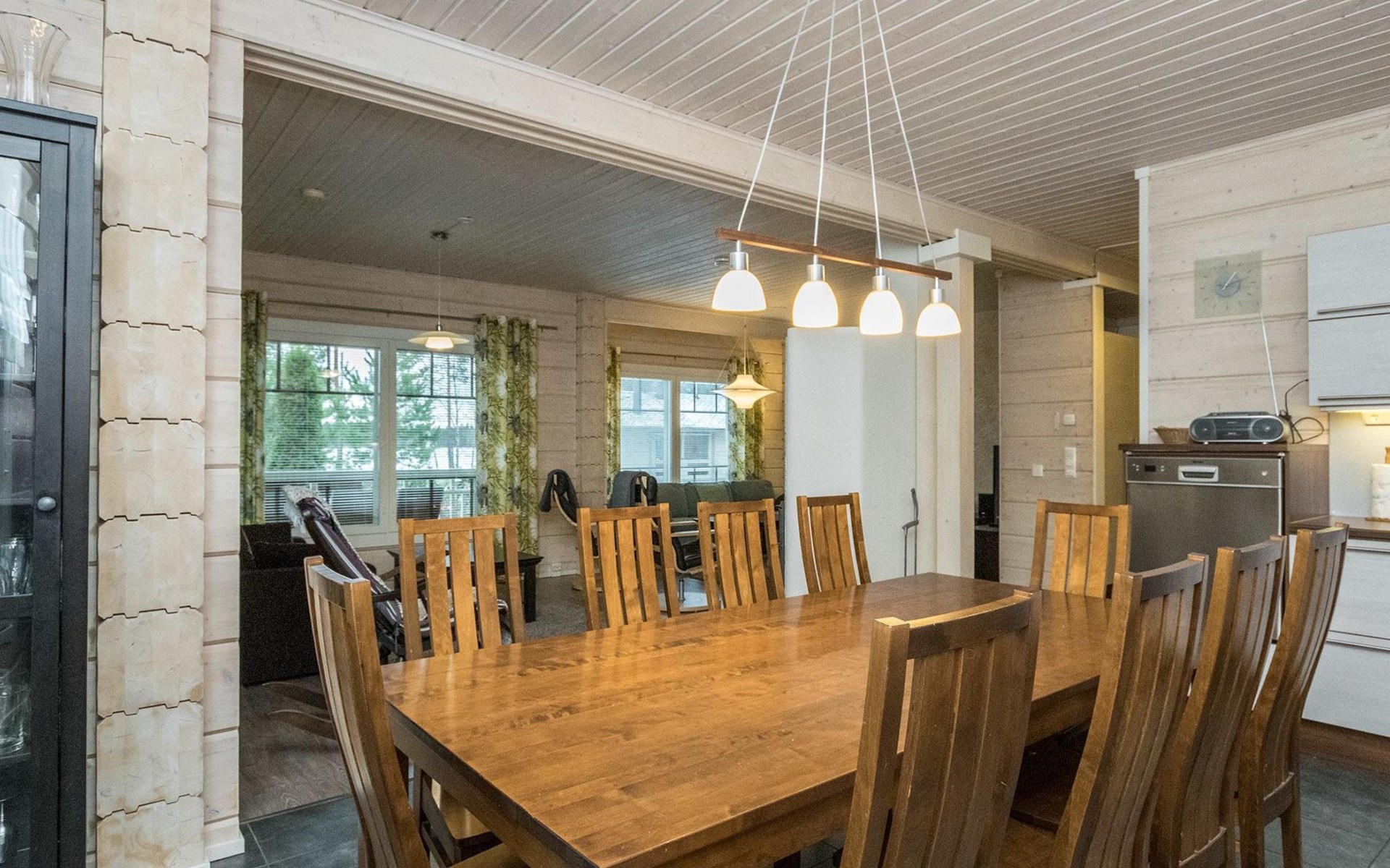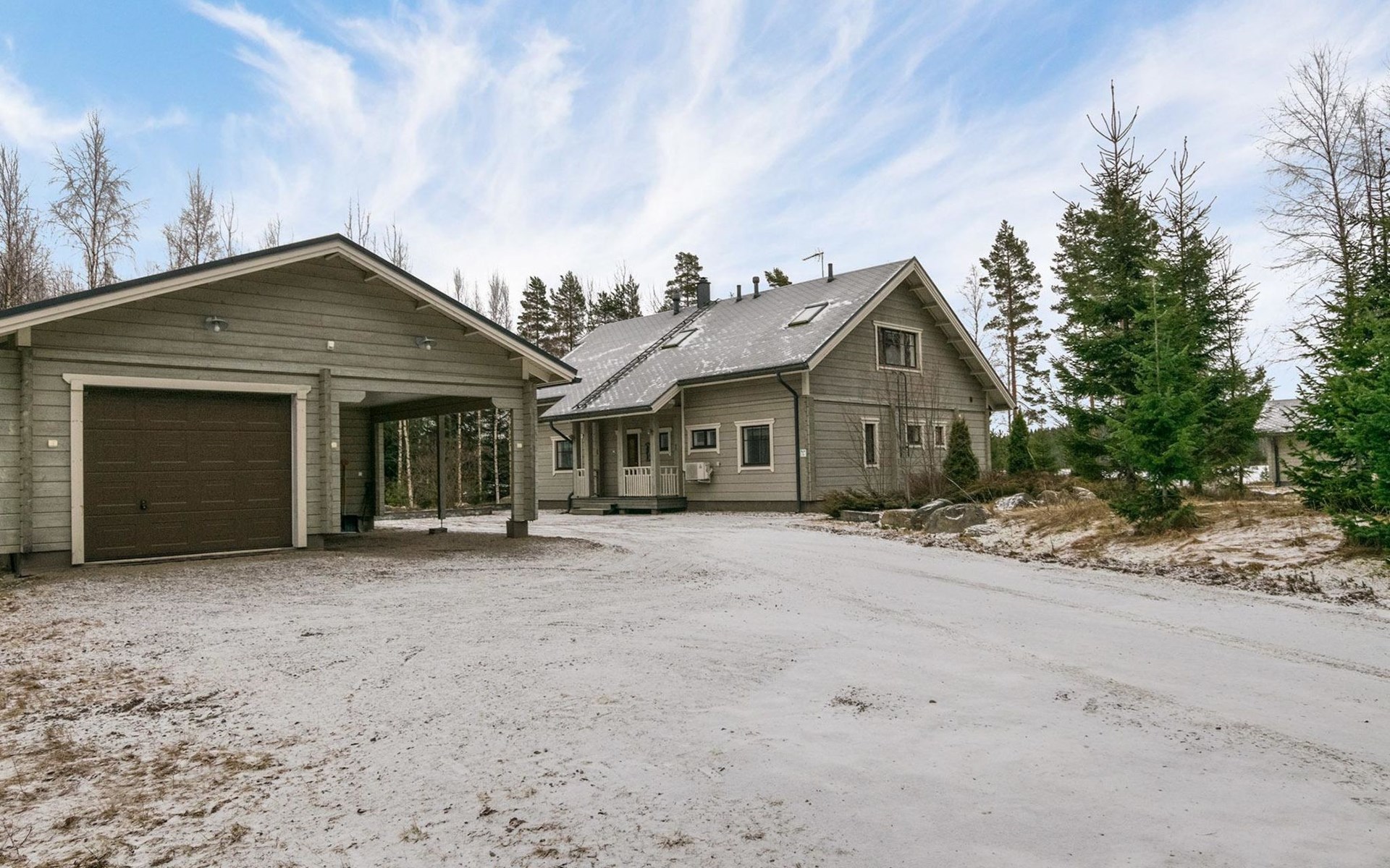 Log cabin 2010, kitchen, living room, bedroom (11 m²) two beds, utility room, washroom (2 showers) sauna, electric sauna stove, separate WC, terrace.