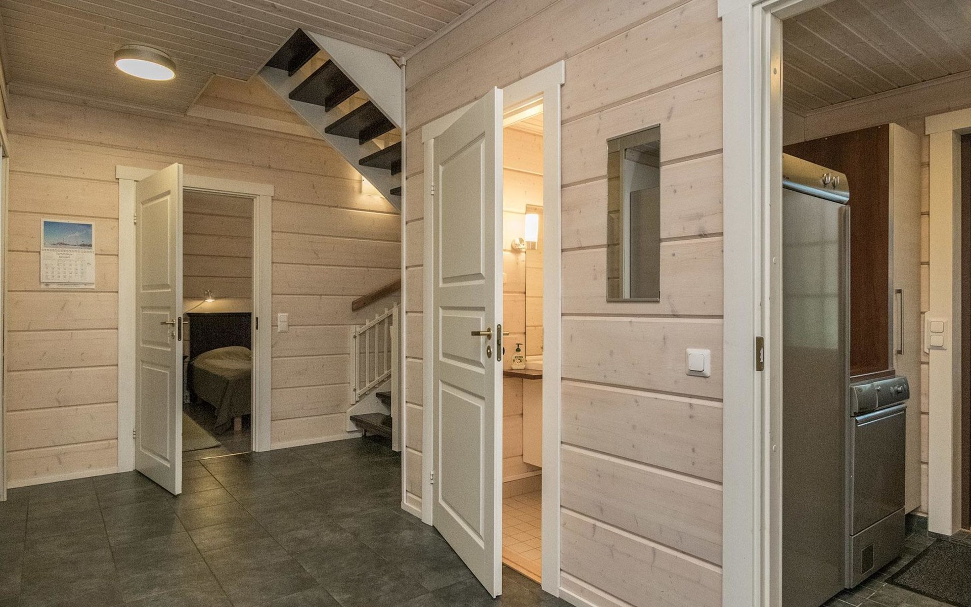 There are spacious wardrobes in all bedrooms, mechanical air conditioning on the upper floor. 100 MB fiber-optic connection, Wi-Fi. You can bring up to 2 pets.