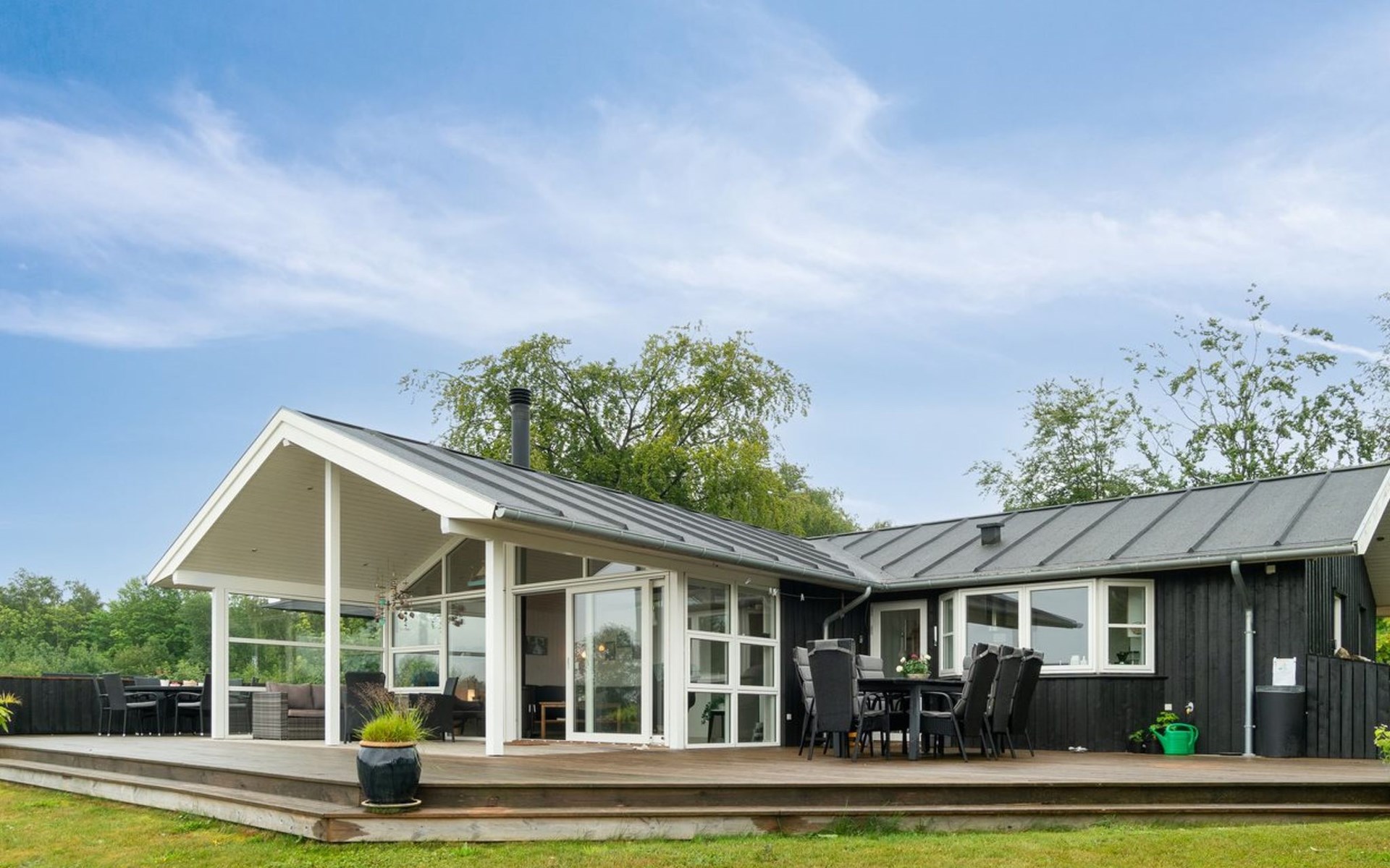 Single-family house, built in 2015. 350 m from the sea. Private: natural state property 1'200 m2. Barbecue. In the house: washing machine, tumble dryer. Parking at the house. Grocery 1 km. Golf course 10 km. The owner does not accept any youth groups.