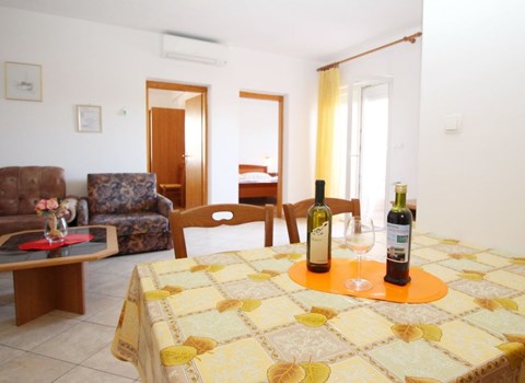 Apartment house "Marija". 300 m from the centre of Vrbnik, 12 km from the centre of Krk, 18 km from the centre of Malinska, in a sunny position, 200 m from the sea, 200 m from the beach, located by a road. For shared use: property 1'000 m2. In the house: internet access, washing machine (for shared use). Parking at the house. Shop 100 m, restaurant 250 m, bus stop 500 m, pebble beach 200 m. Please note: airfield 30 km from the property.
