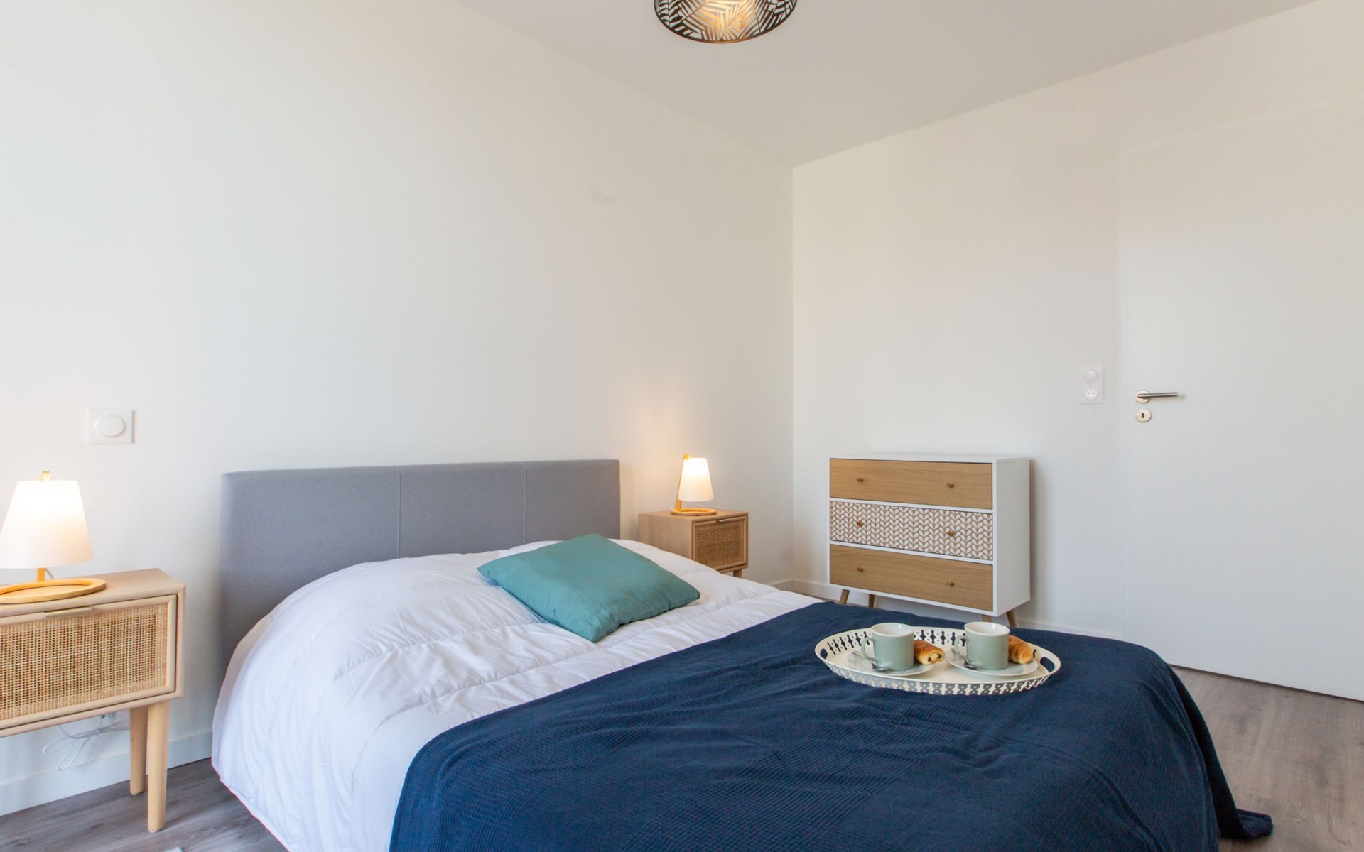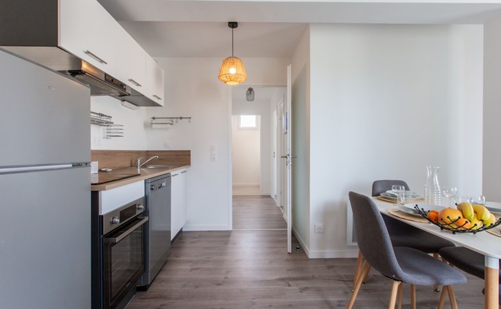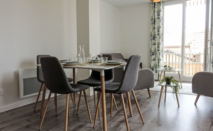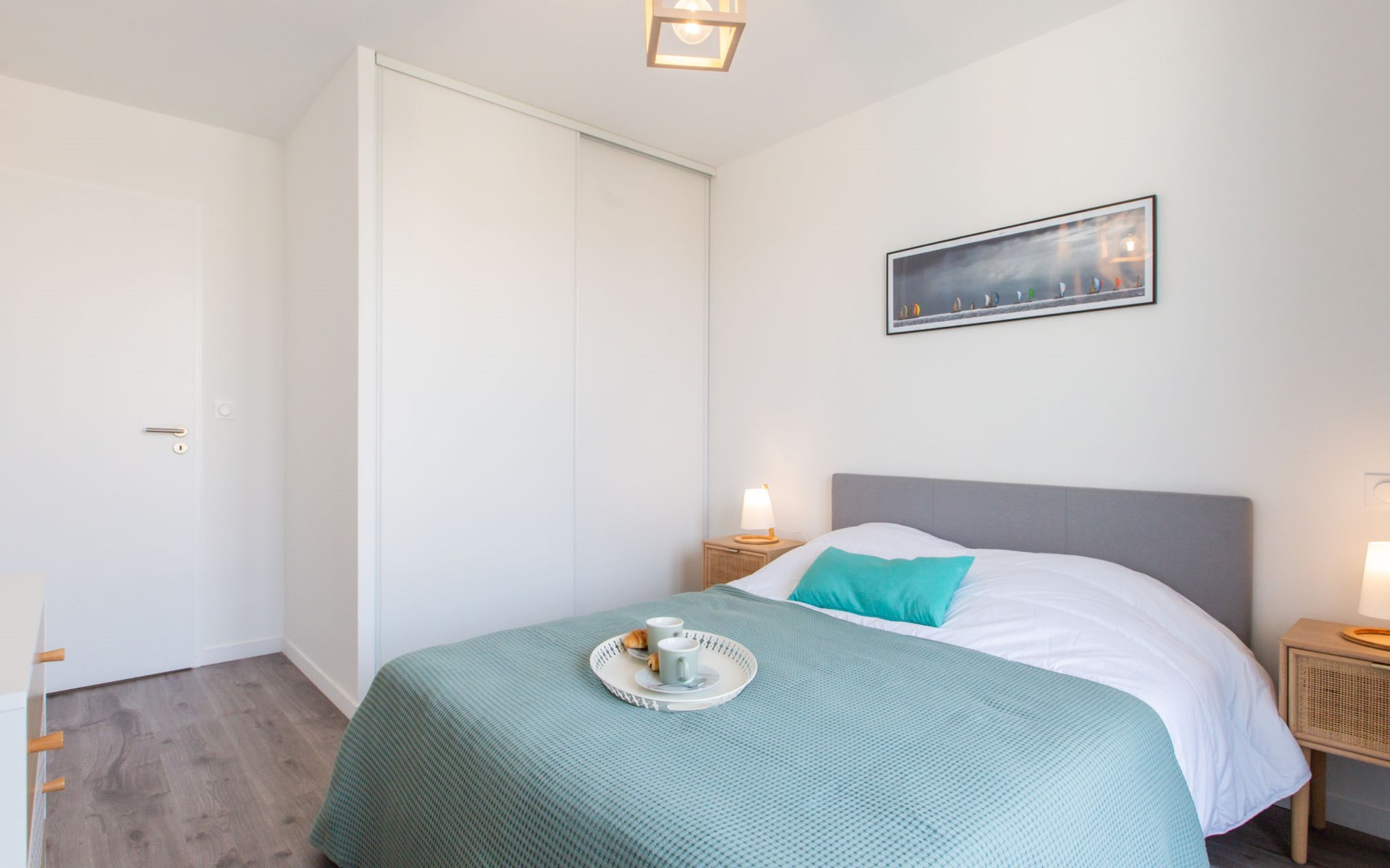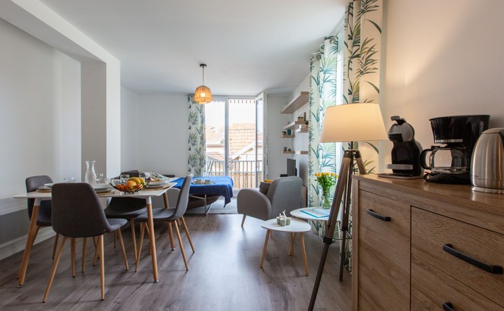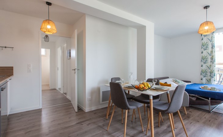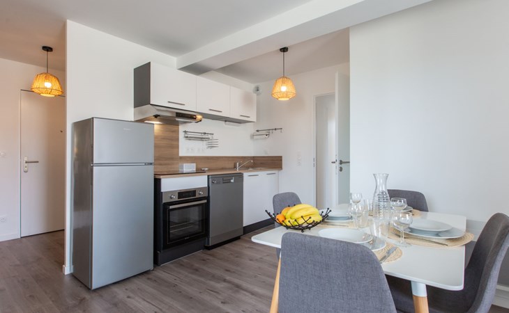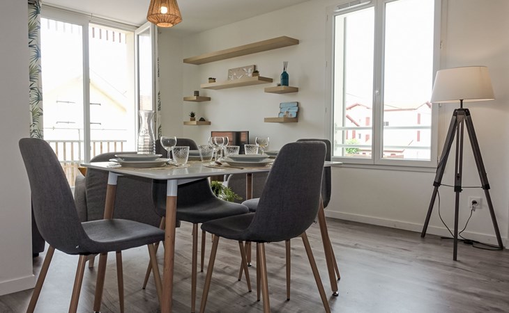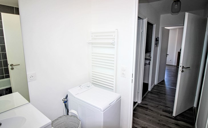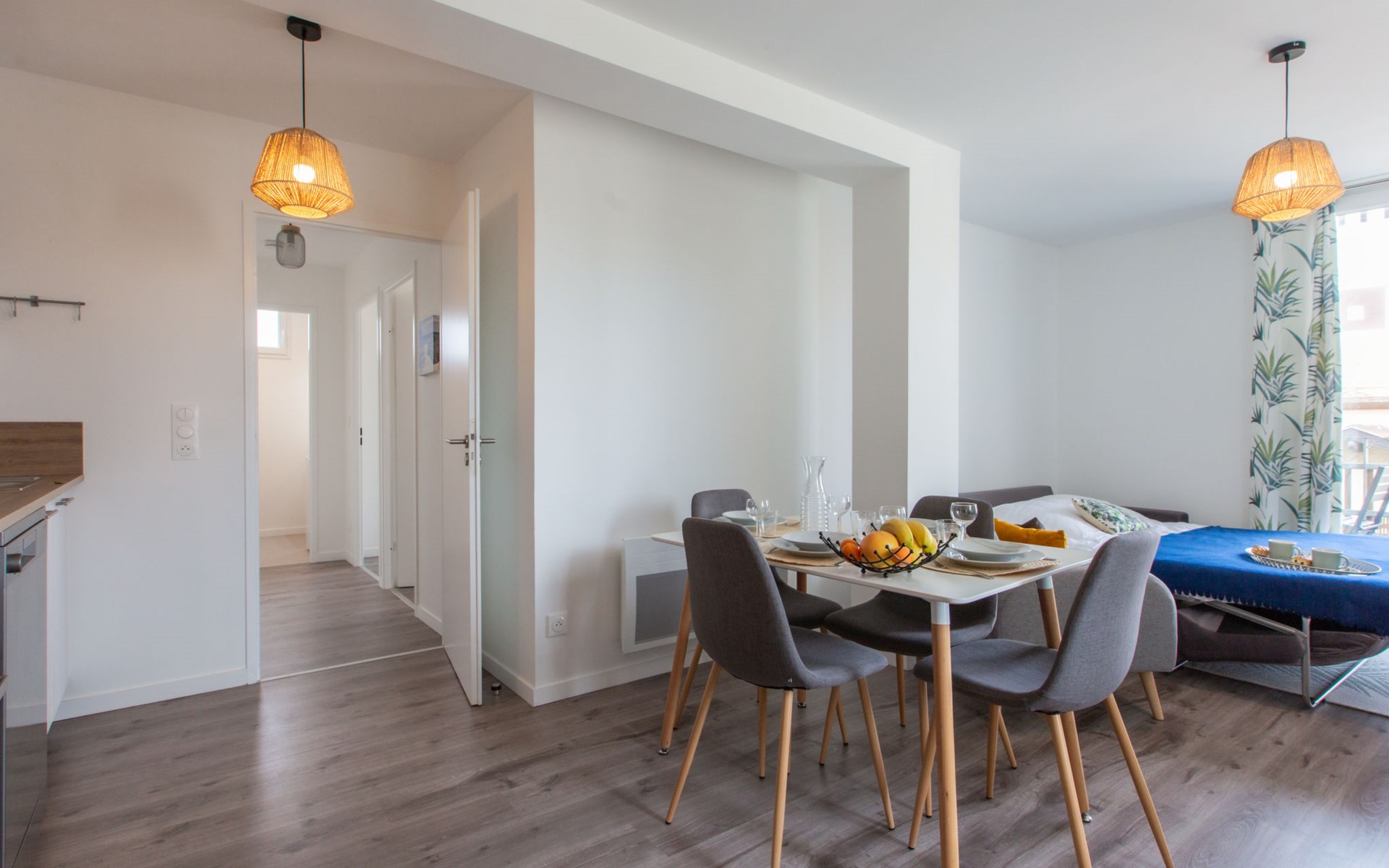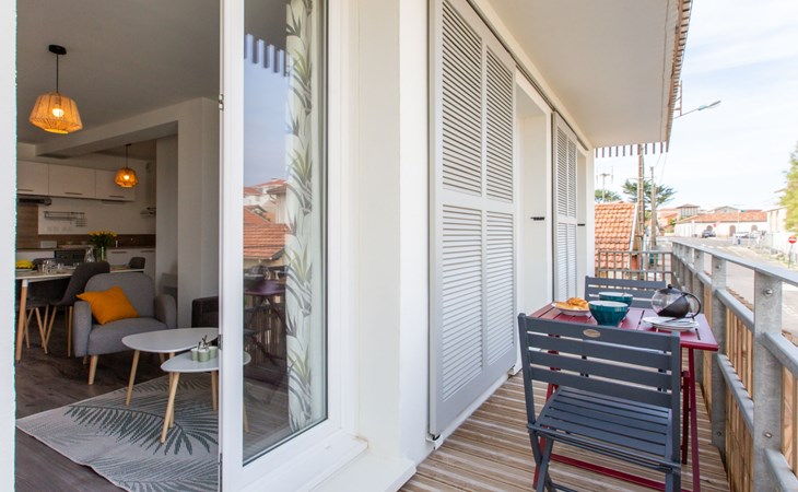 Capbreton: Apartment block "Cap Océan", 2 storeys, built in 2023. 17 apartments in the residence. In the resort, 150 m from the sea, 150 m from the beach. In the complex: washing machine, tumble dryer (for shared use). Public parking on the road. Shop 300 m, grocery 150 m, supermarket 1.8 km, restaurant 50 m, bakery 150 m, bicycle rental 100 m, sandy beach "Du Prévent". Golf course (18 hole) 4 km, surf school 150 m, tennis 3 km, minigolf 200 m, riding stable 1 km. Nearby attractions: Seignosse 15 km, Bayonne 22 km, Dax 37 km, Biarritz 37 km. Well-known lakes can easily be reached: Réserve Naturelle des Marais d’Orx, Réserve Naturelle du courant d’Huchet.