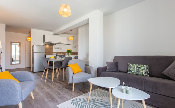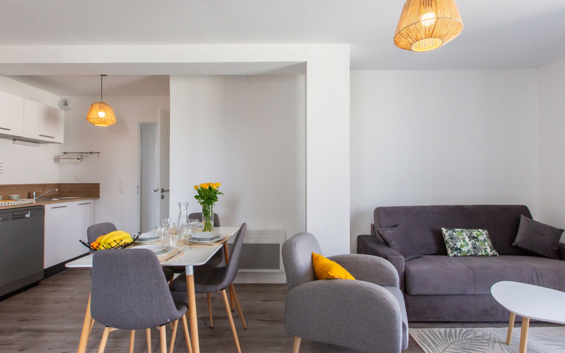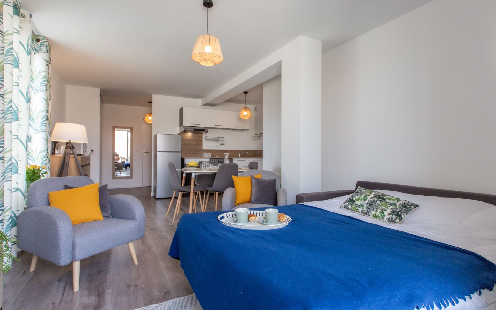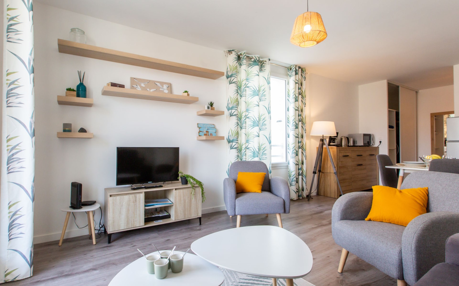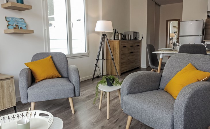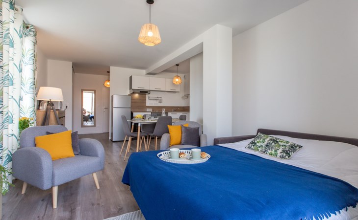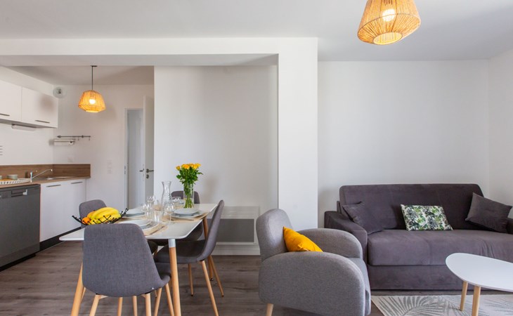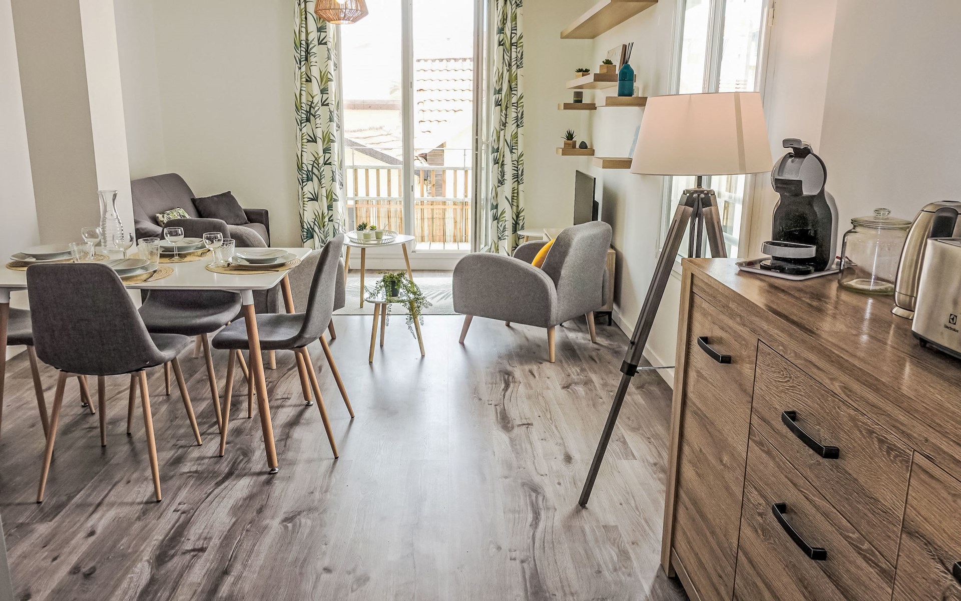 Capbreton: Apartment block "Cap Océan", 2 storeys, built in 2023. 17 apartments in the residence. In the resort, 150 m from the sea, 150 m from the beach. In the complex: washing machine, tumble dryer (for shared use). Public parking on the road. Shop 300 m, grocery 150 m, supermarket 1.8 km, restaurant 50 m, bakery 150 m, bicycle rental 100 m, sandy beach "Du Prévent". Golf course (18 hole) 4 km, surf school 150 m, tennis 3 km, minigolf 200 m, riding stable 1 km. Nearby attractions: Seignosse 15 km, Bayonne 22 km, Dax 37 km, Biarritz 37 km. Well-known lakes can easily be reached: Réserve Naturelle des Marais d’Orx, Réserve Naturelle du courant d’Huchet.