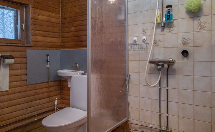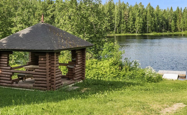 Separate lakeside sauna, living room with fireplace, spreadable sofa for two, washroom with WC and shower, sauna (wood-burning sauna stove). Covered cooking area on lakeside.