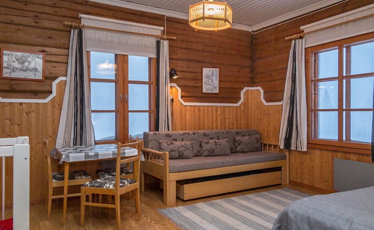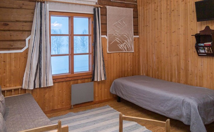 In the living room, there is a big traditional baking oven. Own fireplace in both bedrooms. You can sense old house -feeling and grandma’s house -feeling in the building. Pets allowed at extra fee, which is charged per reservation.