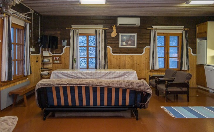 Distance to the Tahko ski centre is 22 km, to the western slopes of Tahko 14 km (the nearest ski lift). There is a spa, restaurants, equipment rental and golf course in Tahko area. 6 km to Varpaisjärvi with the nearest grocery store, a restaurant, and a lighted ski trail.