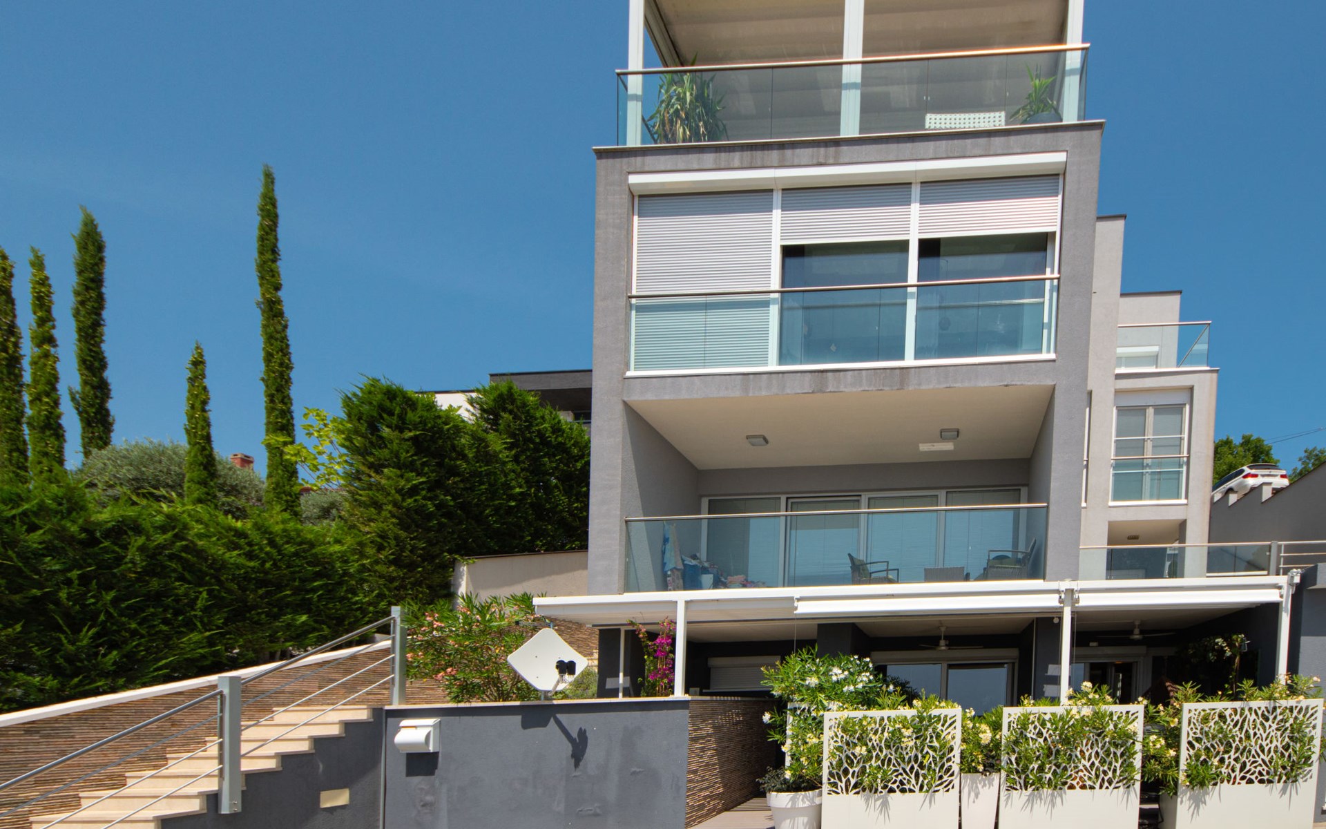 Apartment house. 5 apartments in the property. 2 km from the centre of Crikvenica, in a sunny, elevated position, 2 km from the sea, 2 km from the beach. For shared use: property 550 m2 (fenced). Private: hot tub. In the house: internet access. Parking at the house on the premises. Shop 500 m, supermarket 1 km, restaurant 500 m, bus stop 50 m, pebble beach 2 km, public bathing area 3 km, concrete beach 2 km. Organizing a party is not allowed.
