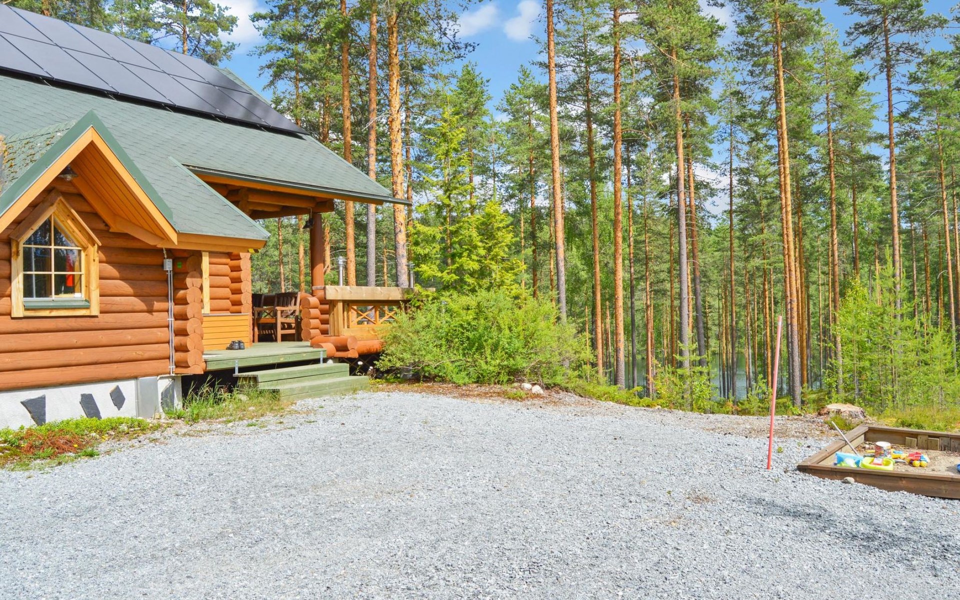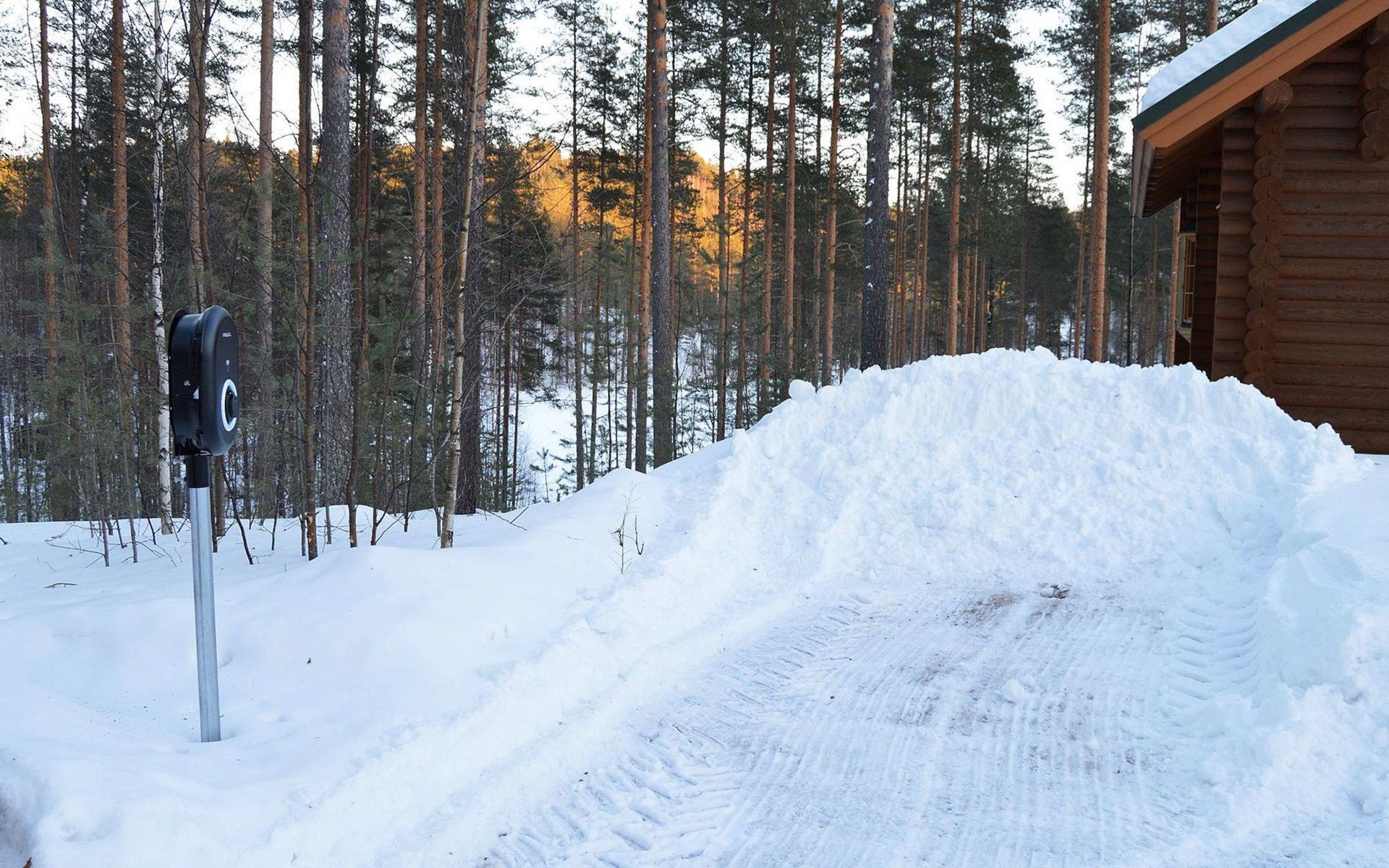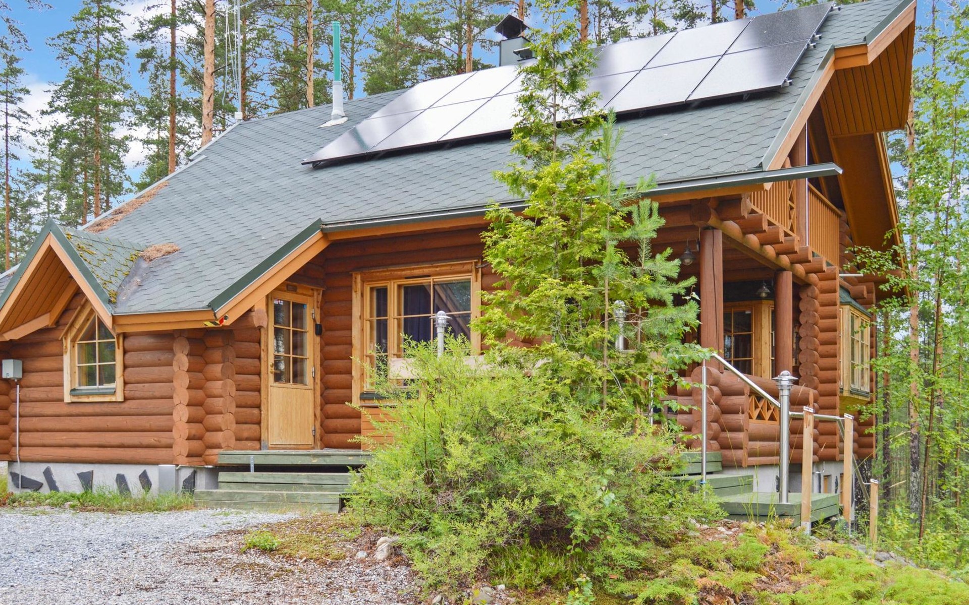 The electric car charging point is included in the price: Finlux Pro EVC-04 22 KWp charging station, charging power 11-13 kWh. The cabin has a solar power plant in addition to the electricity network.