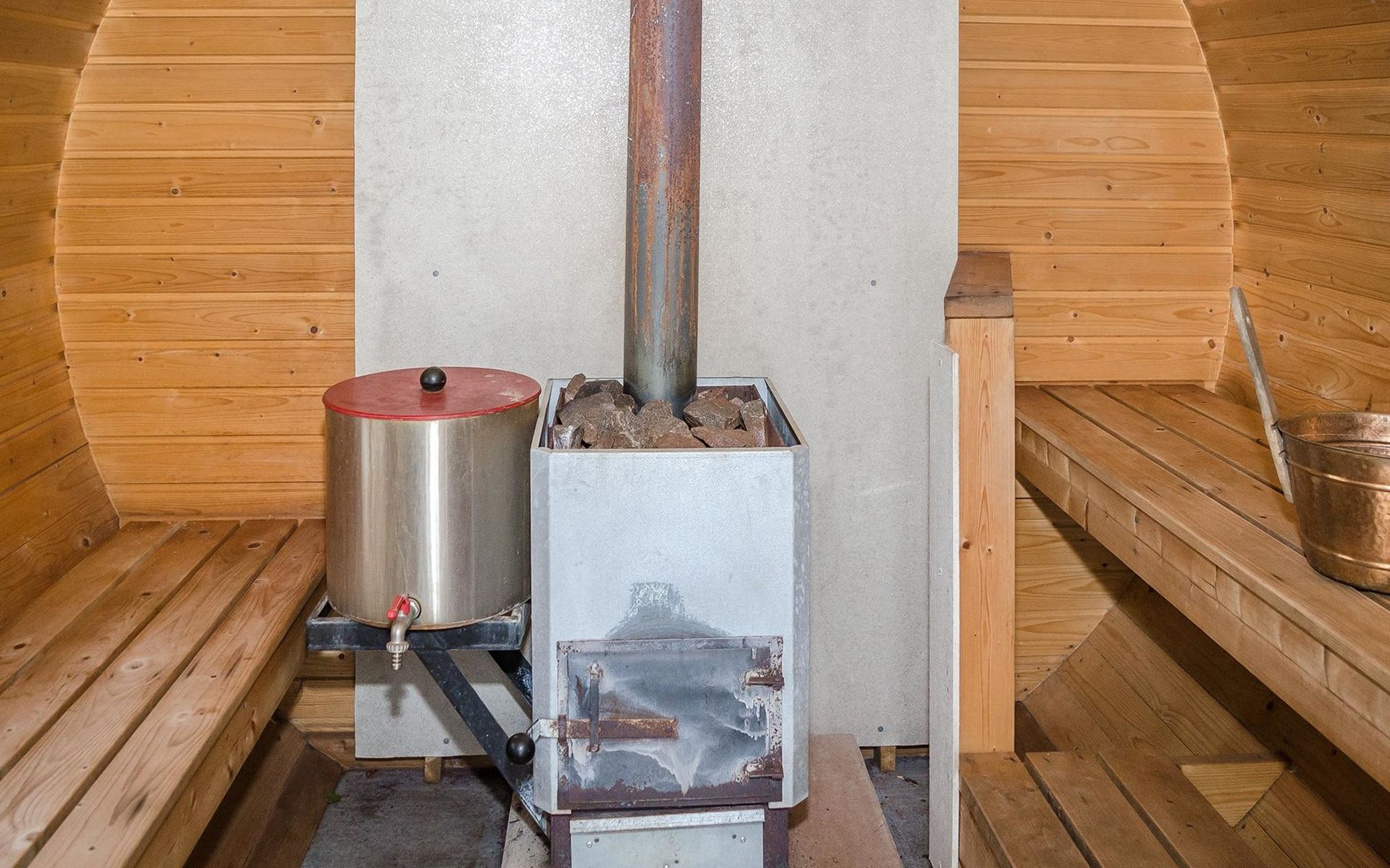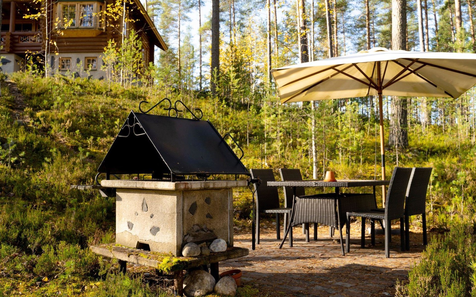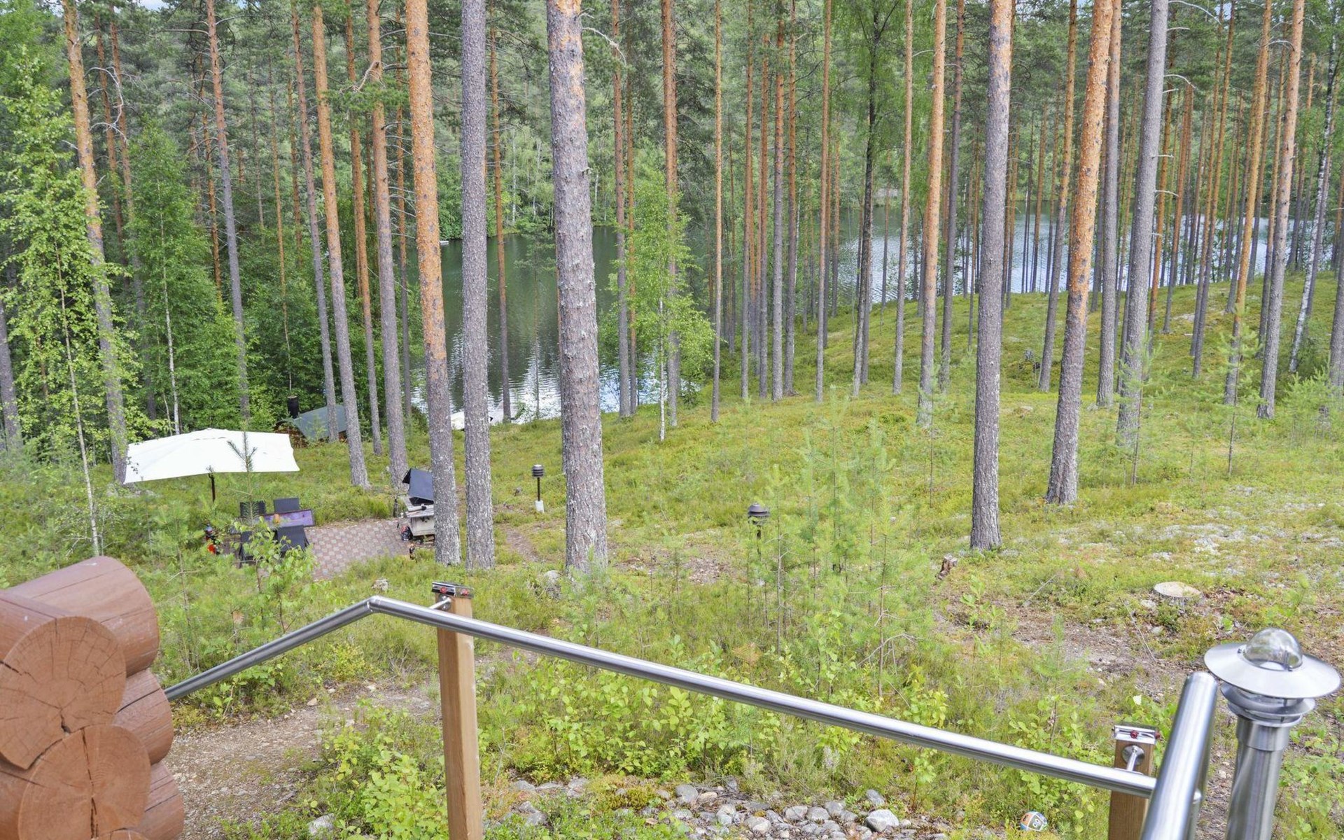 Distance to the neighboring house from the cabin - approx. 100 m, from the barrel sauna - approx. 60 m