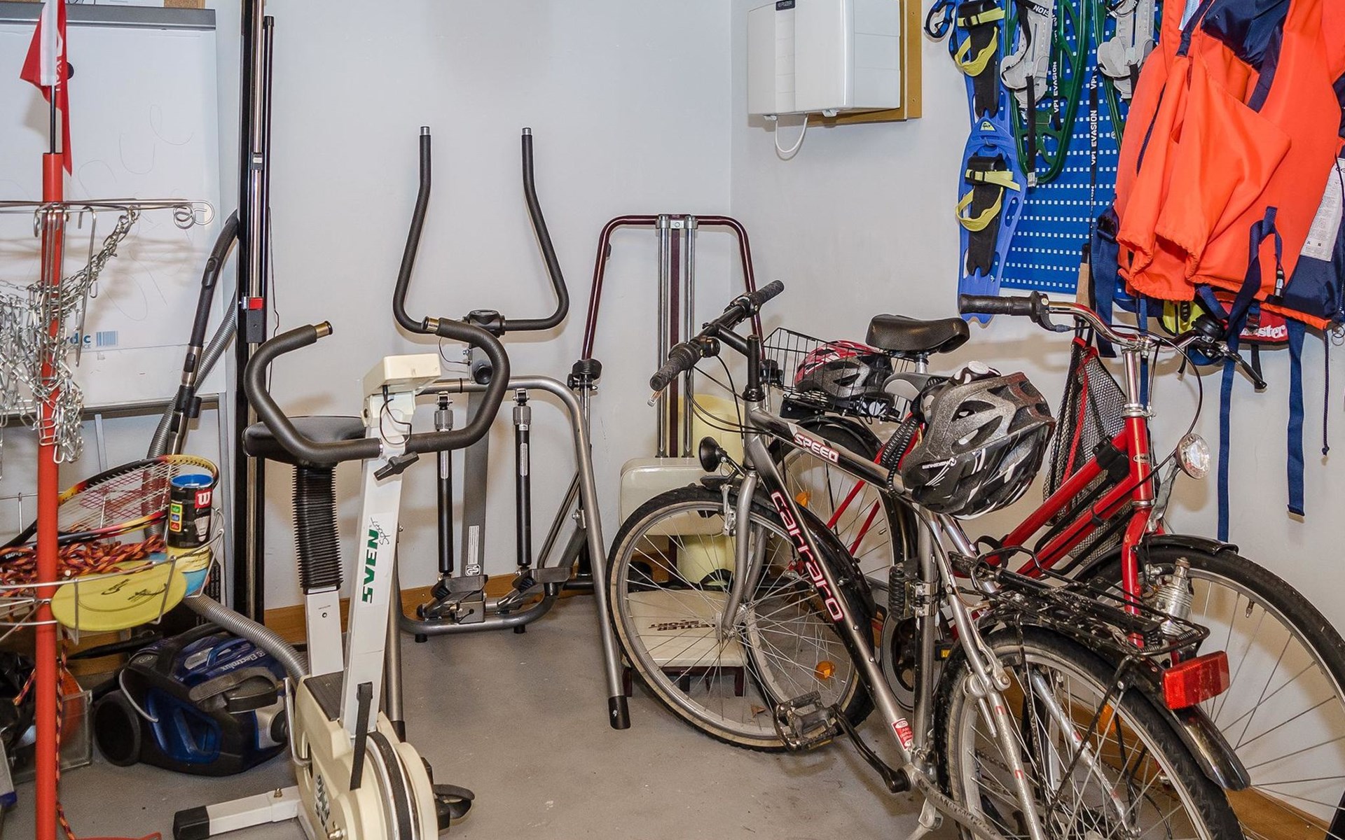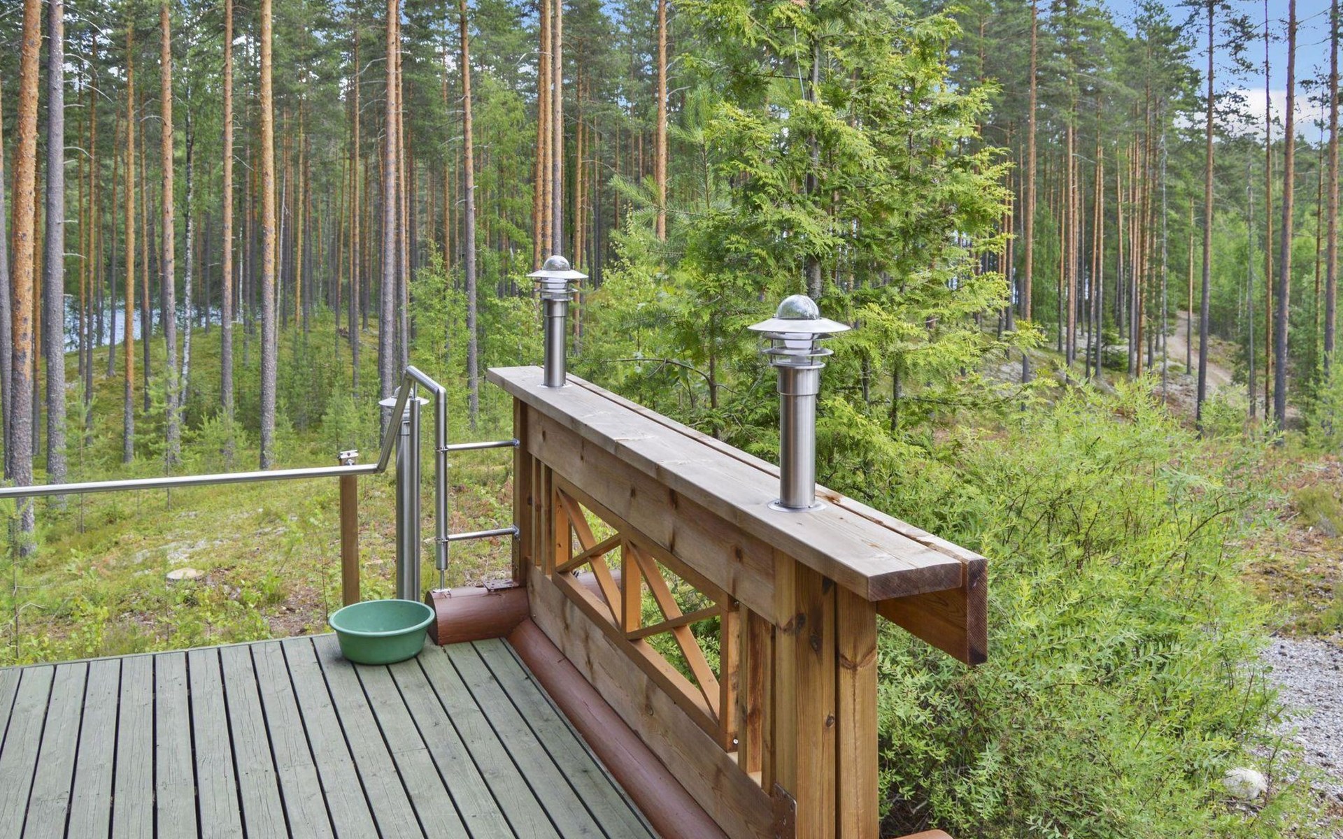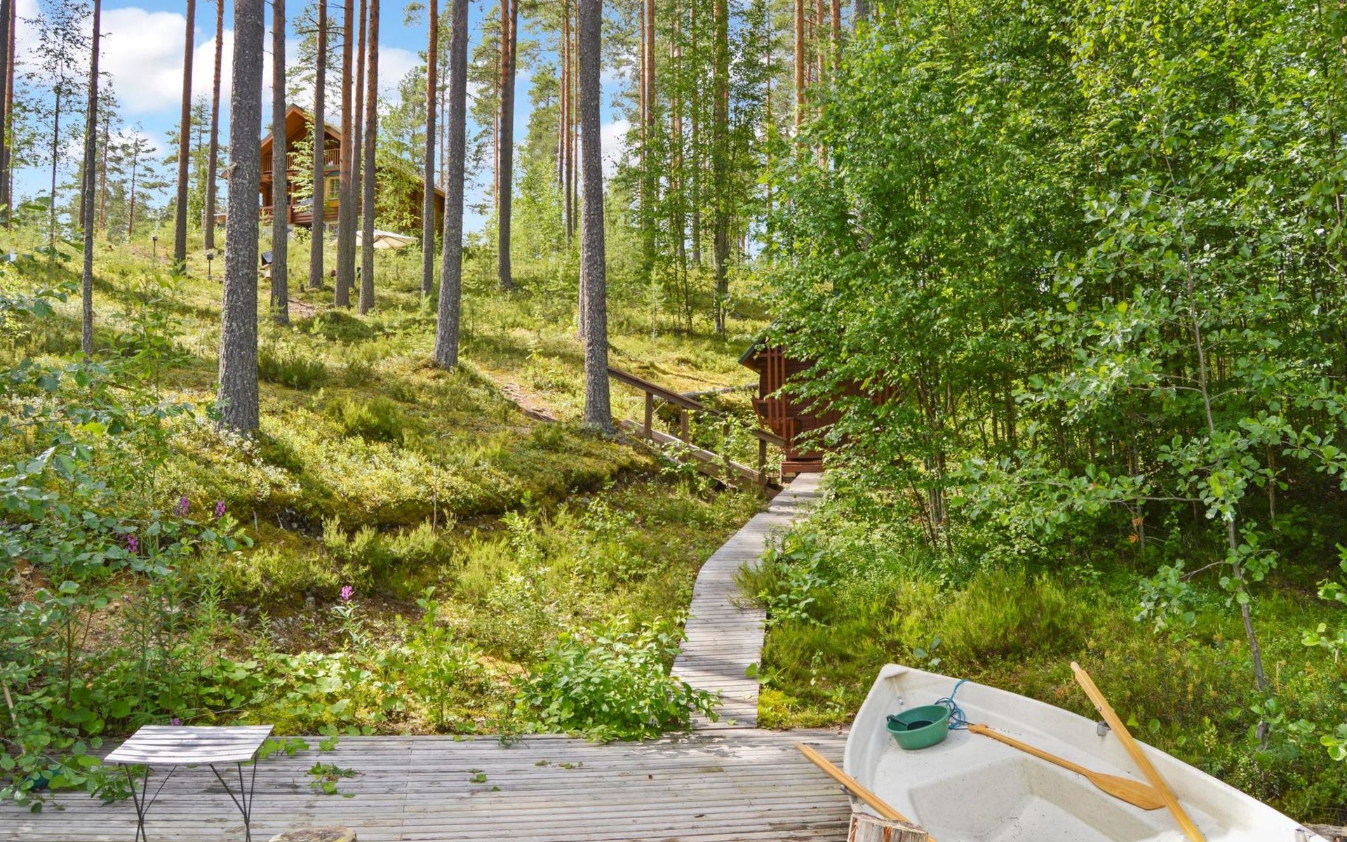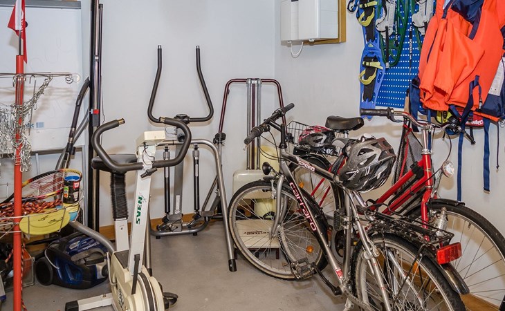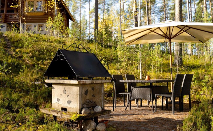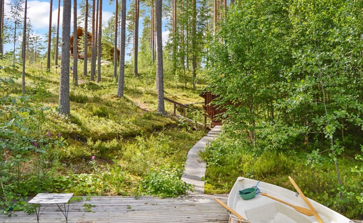 4G wireless modem available for loan from the owner. The meeting facilities are a screen and a flip chart. Child gate at the top and bottom of the stairs. In the yard, sandbox for children. An electric outboard motor is included in the price. Driving with a 4-stroke outboard motor is prohibited in lake Jyrinjärvi. Guests have access to 2 bicycles, 4 pairs of snowshoes (2 for adults and 2 for children), badminton rackets and net, disc golf basket and discs, as well as physical exercise equipment (including exercise bike). Next to the barbecue, there is a patio with dining group for 4 people.