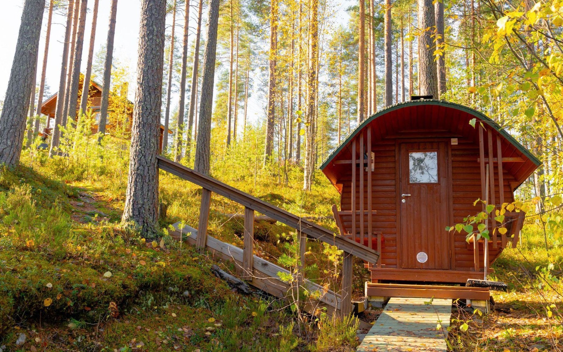 2.4 km distance to Pärnävaara sports center, with tens of kilometers of ski trails, hiking and cycling trails for both winter and summer cycling, as well as downhill cycling trails. Ski trails and hiking trails are within 200 meters from the cabin. Up-to-date ski train maintenance information can be found Internet: https://ladulle.fi/ladut/liperi