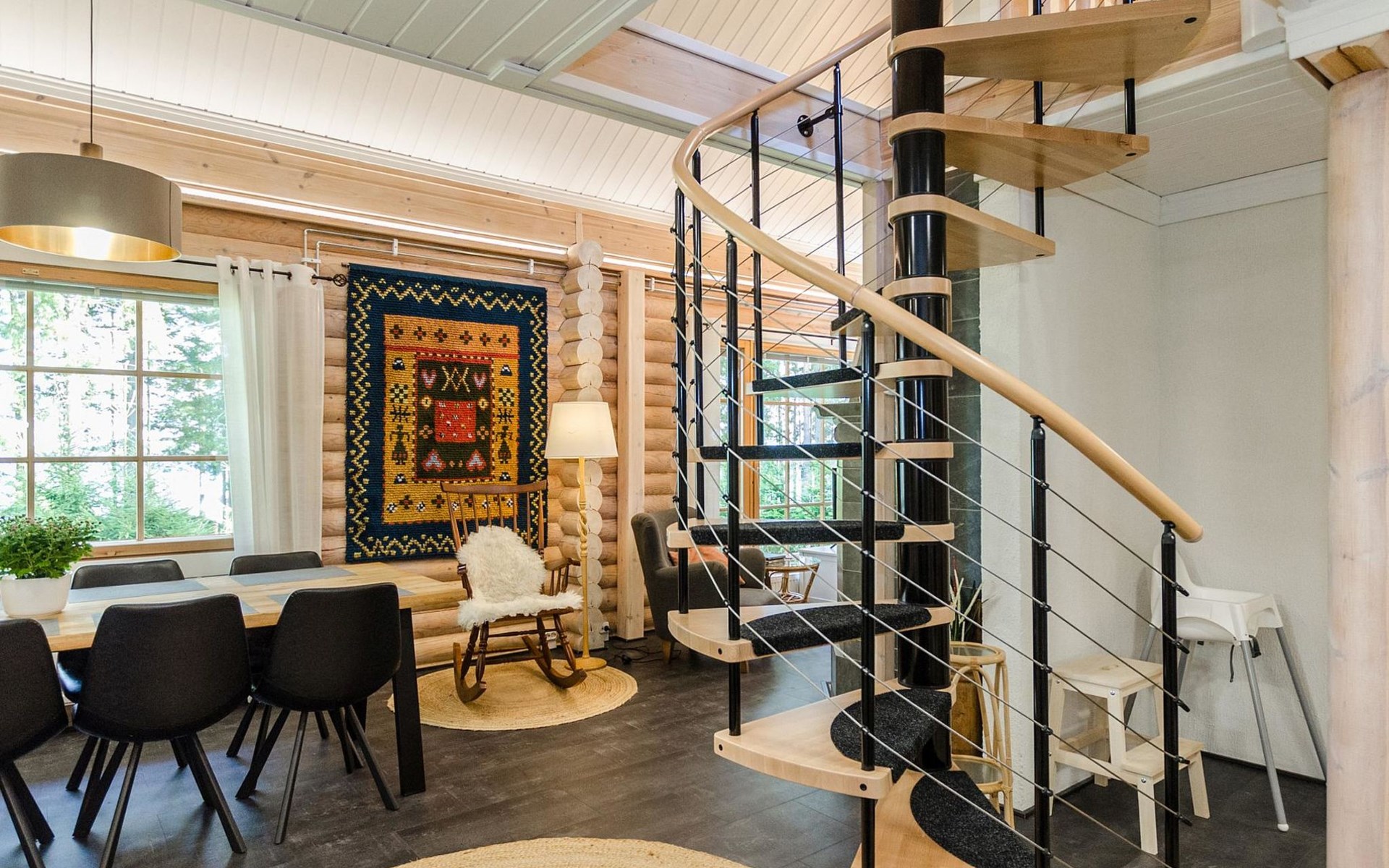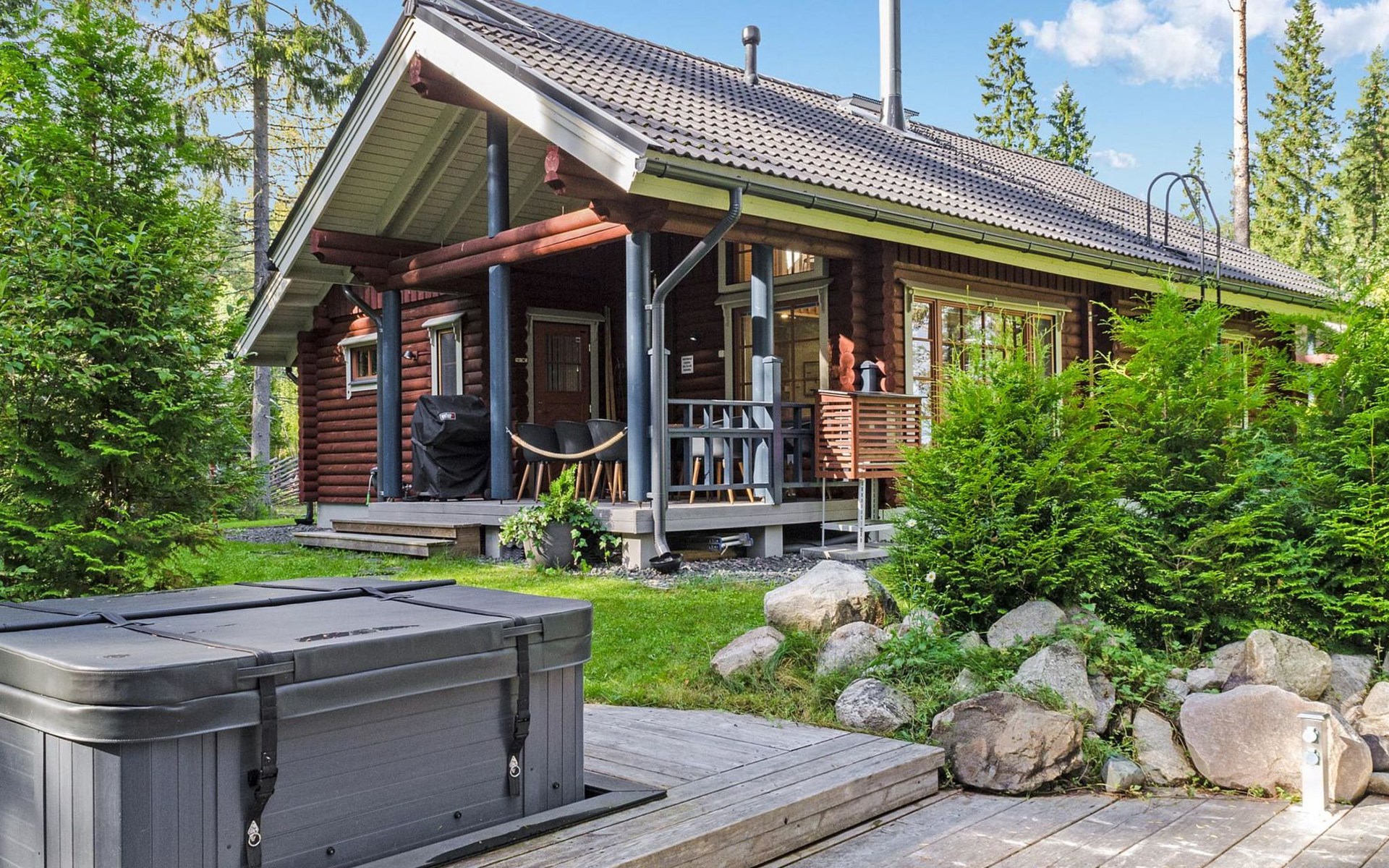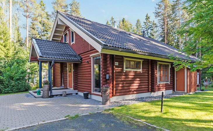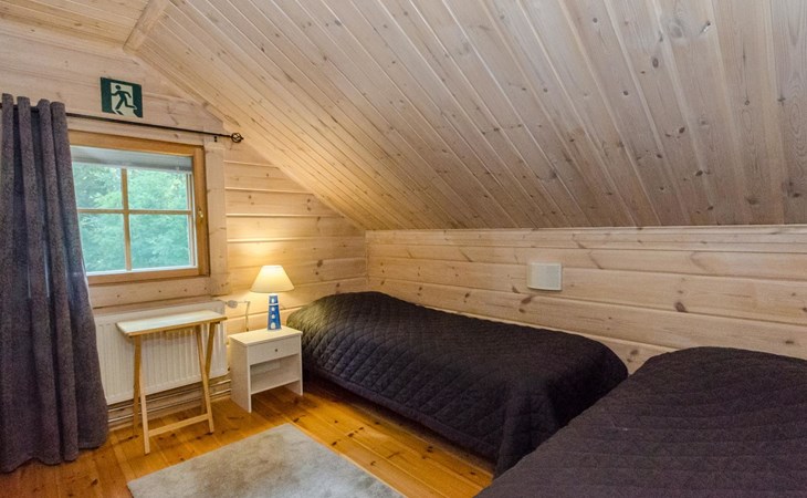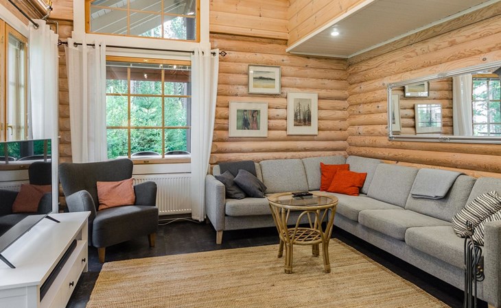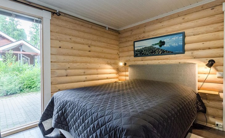 72 km to the north from Joensuu, lake Pielinen 65 m (871.2 km²), own rocky beach, own boat. Boardwalk leading to the lakeside. The log cabin was built in 2005 and completely renovated in 2020. Living room/kitchen, 2 bedrooms on the ground floor, one with double bed and the other with 2 beds. On the upper floor, there is a lounge loft and 2 bedrooms, one with a double bed and the other with 2 beds. Dressing/laundry room, washroom, electric sauna, terrace, and large patio.