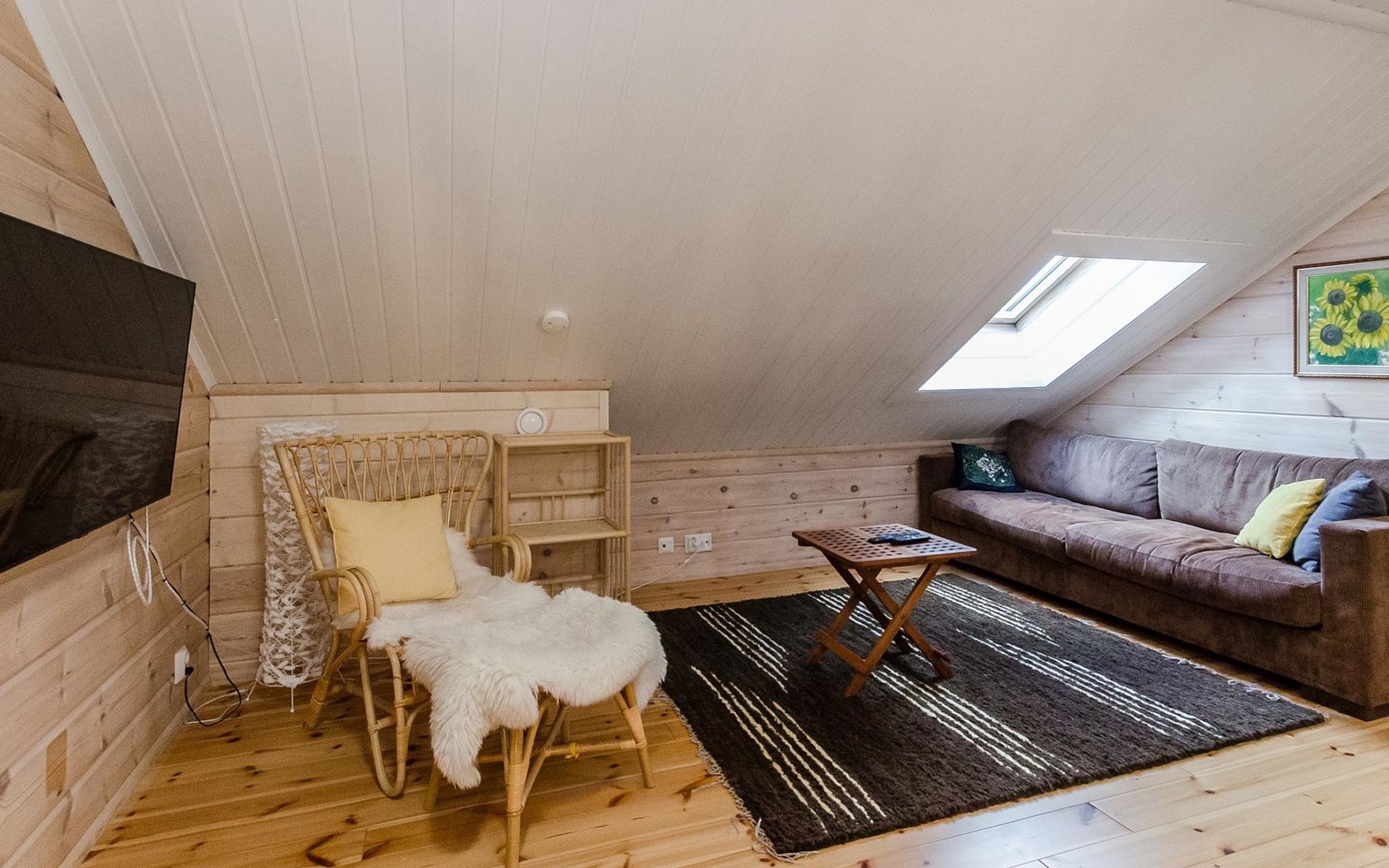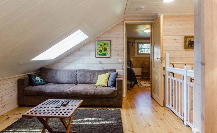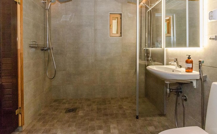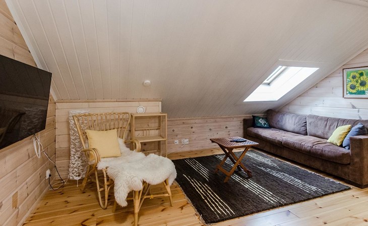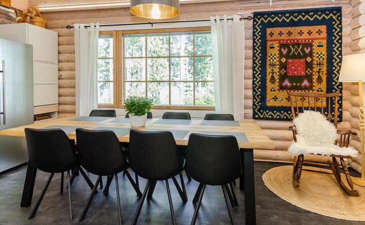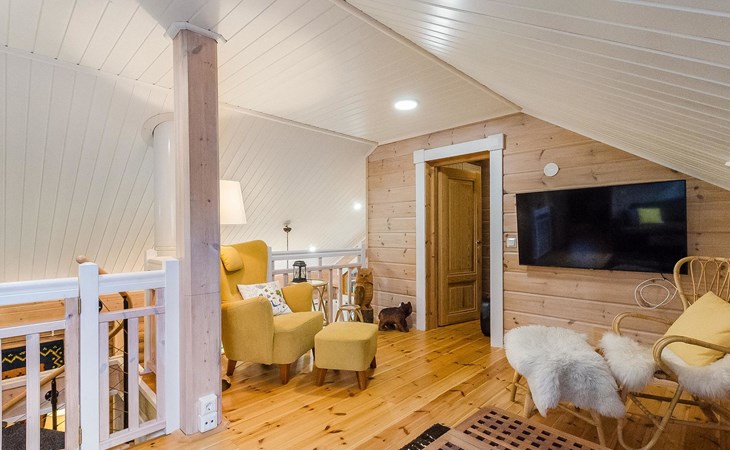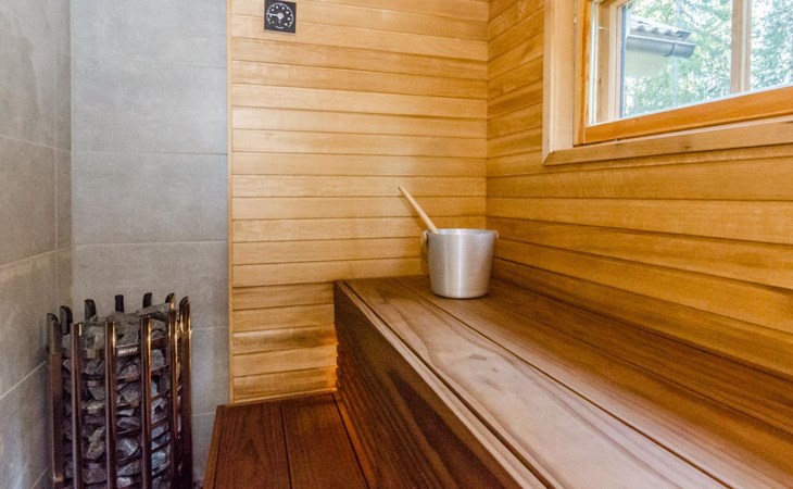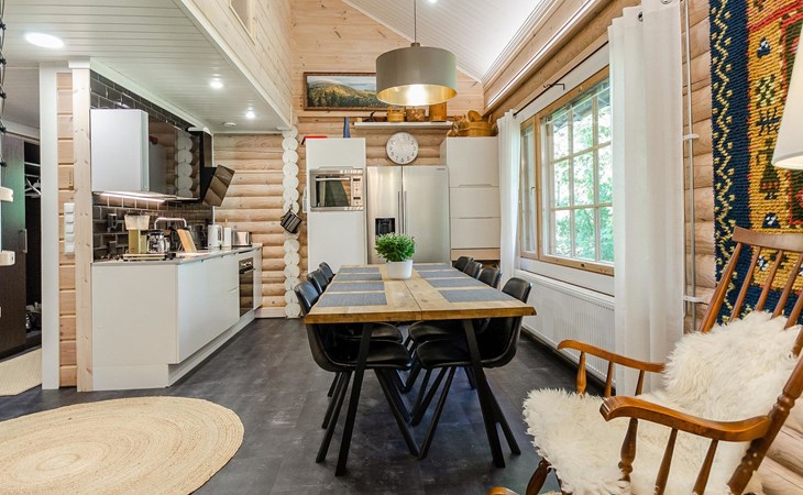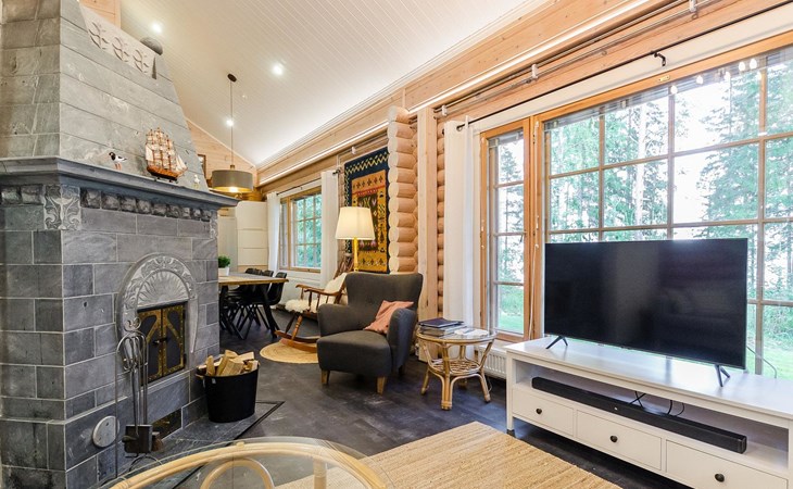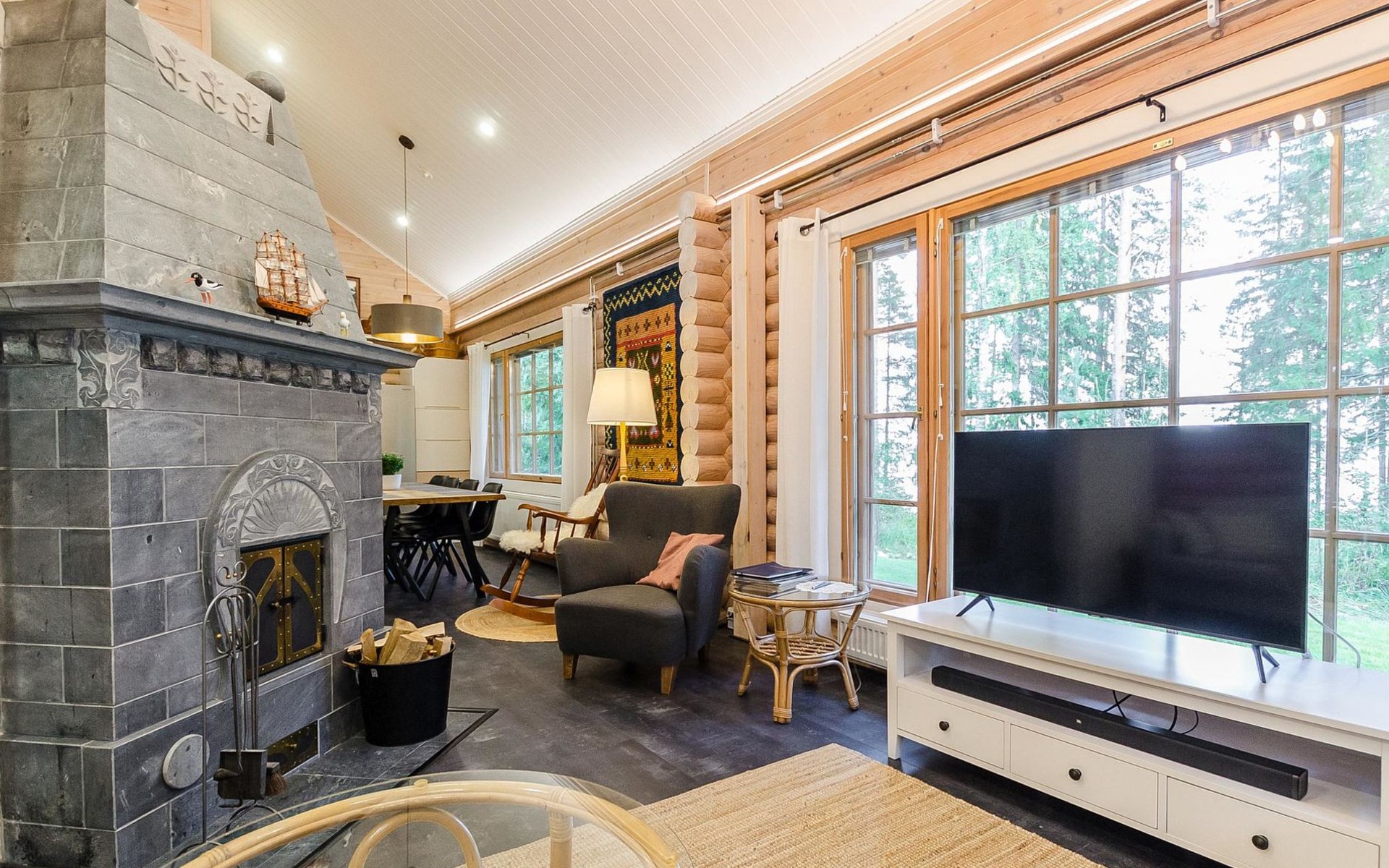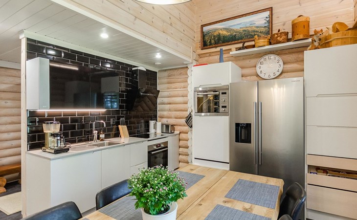 The cabin has an air-water heat pump, 100 Mbps fiber-optic Internet, and several Bluetooth speakers. You can listen to the radio in the sauna. There is an ice maker in connection with the freezer.