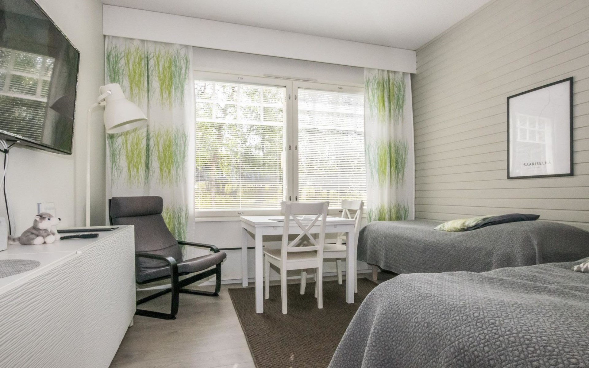 The 25-square-meter apartment has a living room, a kitchenette, a washroom/toilet, a sauna and a small storage room. Common ski maintenance room in Outapailakka premises. Sleeping facilities: 2 beds in a living room.