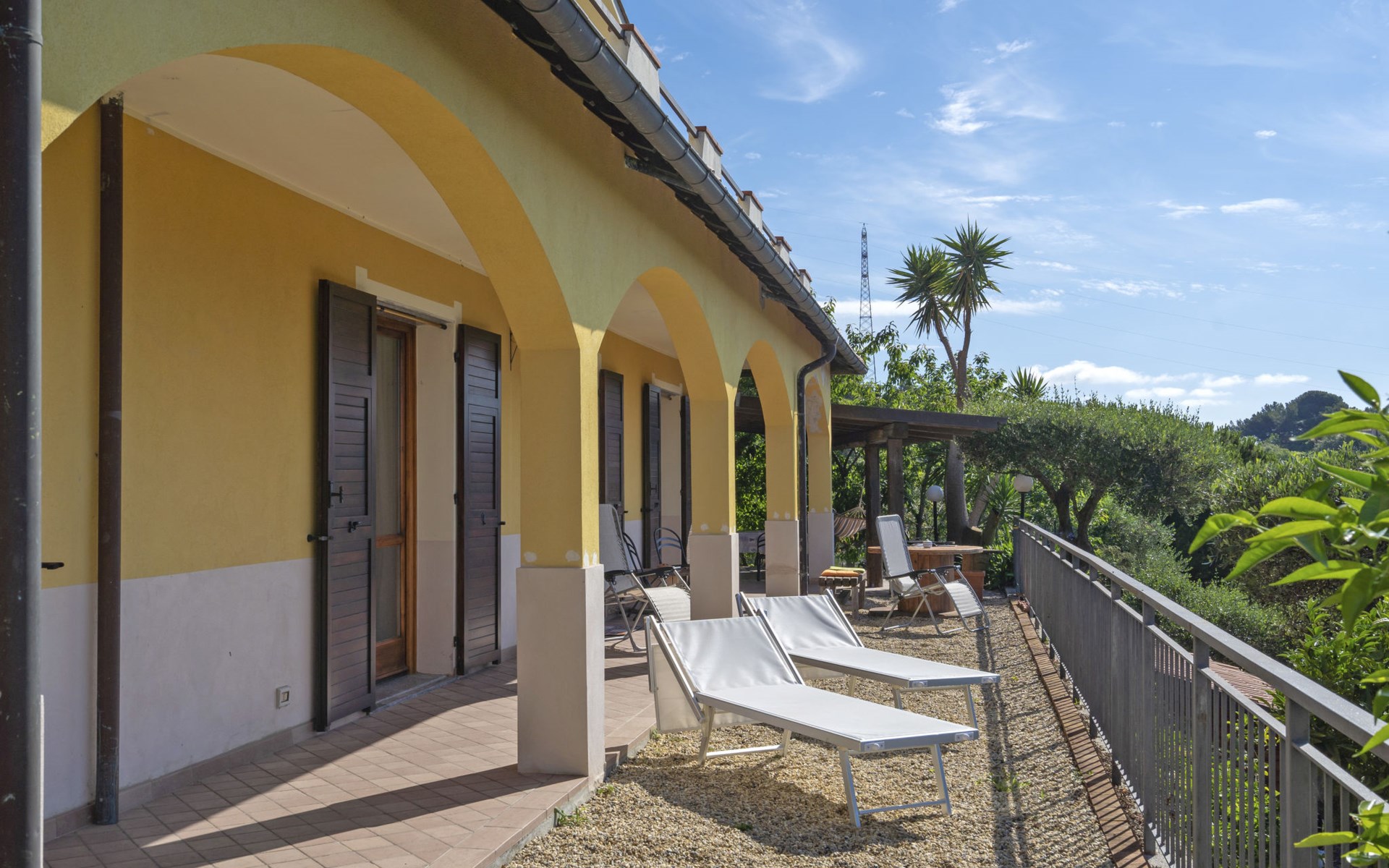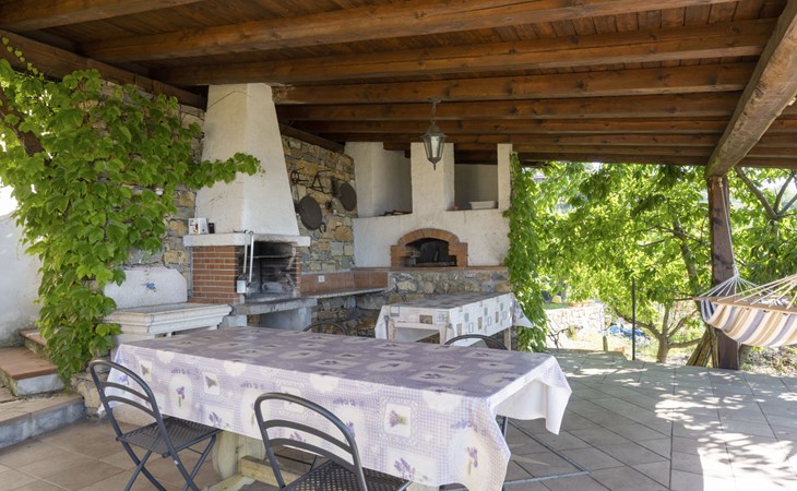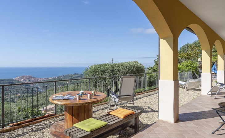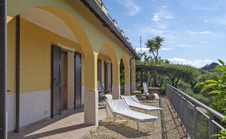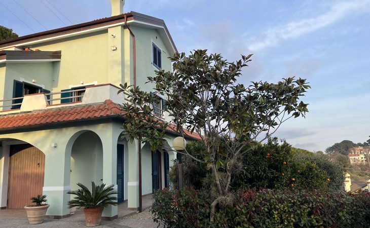 Very beautiful 2-family house "Casa della Mimosa", 2 storeys, surrounded by trees. 4 km from the centre of Imperia, 7 km from the centre of Porto Maurizio, in an elevated position on a slope, 5 km from the sea. For shared use: natural state property 2'000 m2 (fenced) with plants and trees, orchard. Private: garden 170 m2. Barbecue house. Narrow motor access to the house. E-charging station. Supermarket 4 km, bus stop 5 km, sandy beach "Oneglia" 6 km pebble beach "Borgo Marina" 5 km. Please note: car recommended. The owner lives in the same residence.