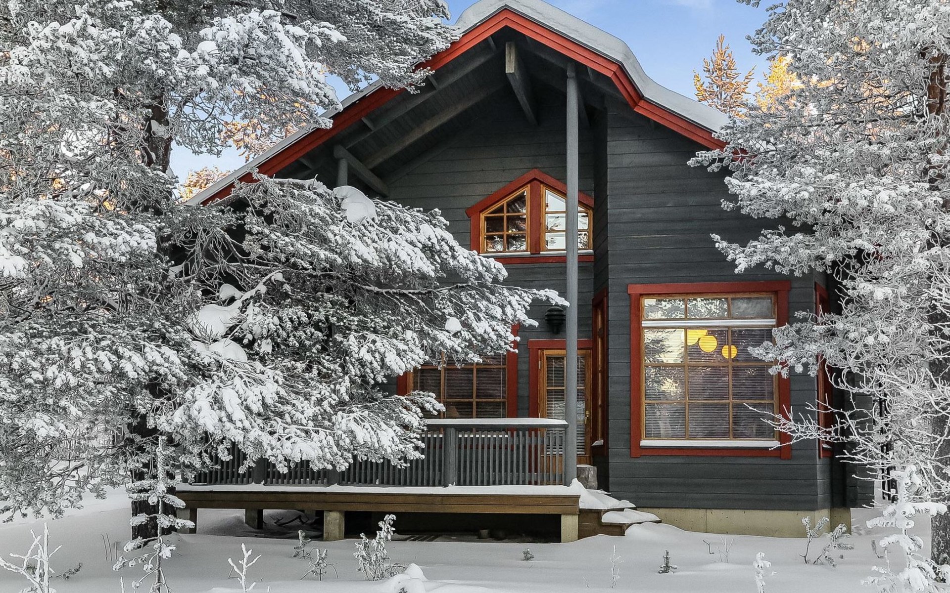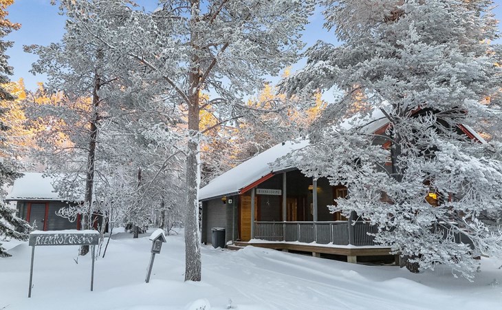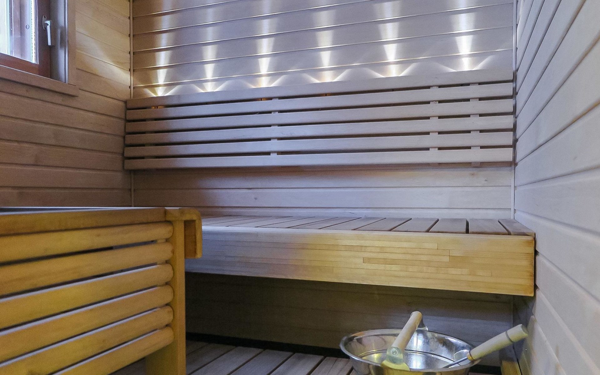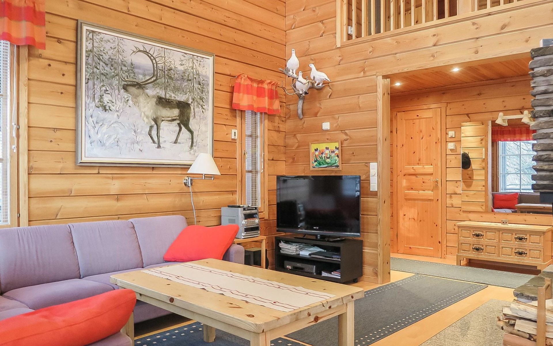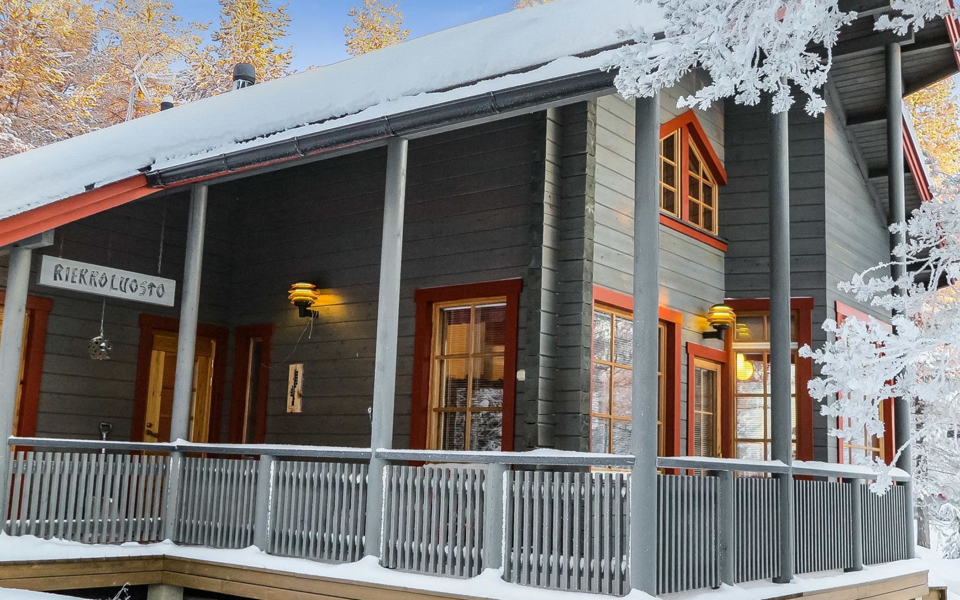 On the ground floor living area/kitchen, 2 bedrooms, each with 2 beds, sauna, washroom, separate WC and a covered porch. On the upper floor there are 2 bedrooms with sloped roofs, each with 2 beds, WC also on the upper floor.