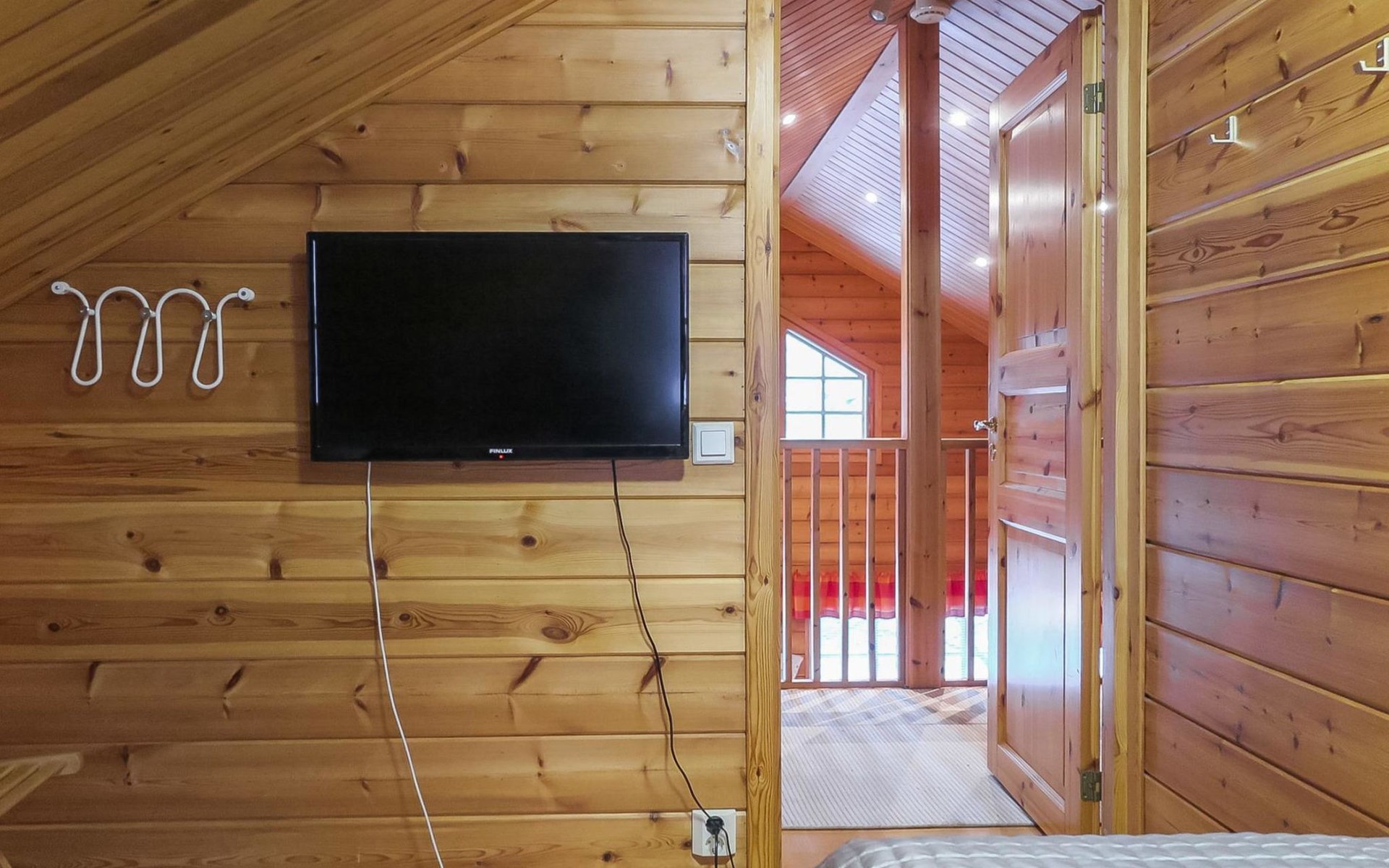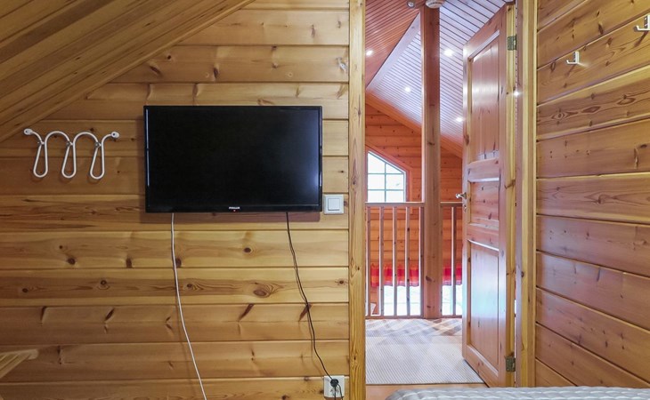 There are two TVs in the cabin, another in the upstairs bedroom.