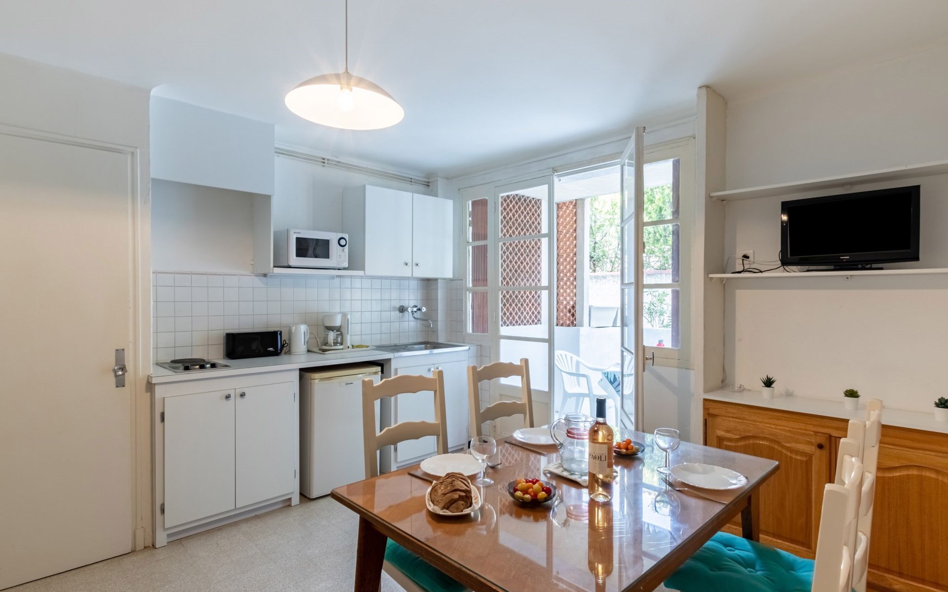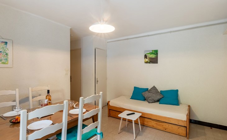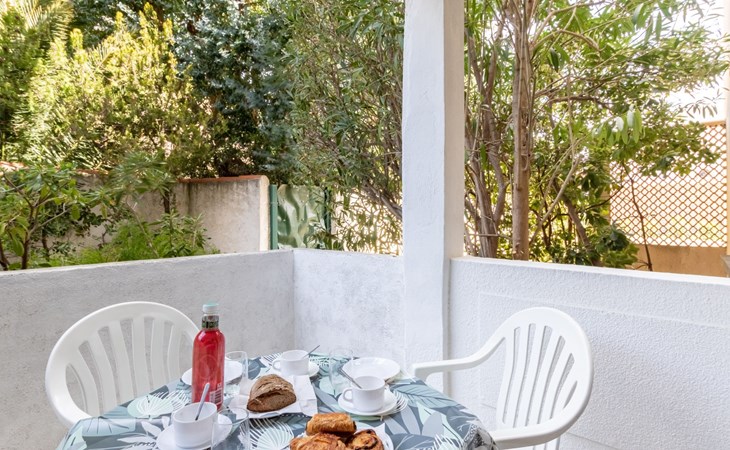 Les Lecques: Residence "Super Plage", 2 storeys. In the resort 500 m from the centre of Les lecques, 30 m from the sea, road to cross. Shop 500 m, supermarket 1.5 km, restaurant 400 m, bus stop "Le Viguier" 1.1 km, railway station "Saint Cyr les Lecques-La Cadière" 2.2 km, sandy beach 30 m. Golf course (18 hole) 5 km. Nearby attractions: Aqualand 2 km. Hiking paths: Sainte Baume, Sainte Victoire, Calanques, Port-Cros,Porquerolles. Please note: the keys‘ handover takes place by the agency Interhome in SaintCyr La Madrague, 2 km. The photograph shows a typical example. Additional accommodations can be booked.
