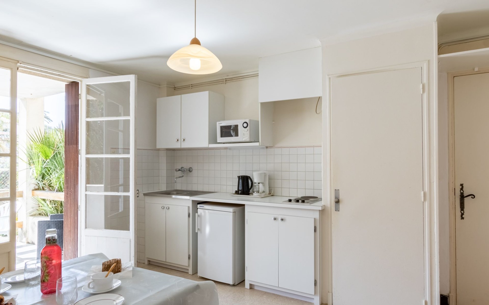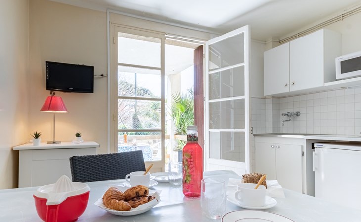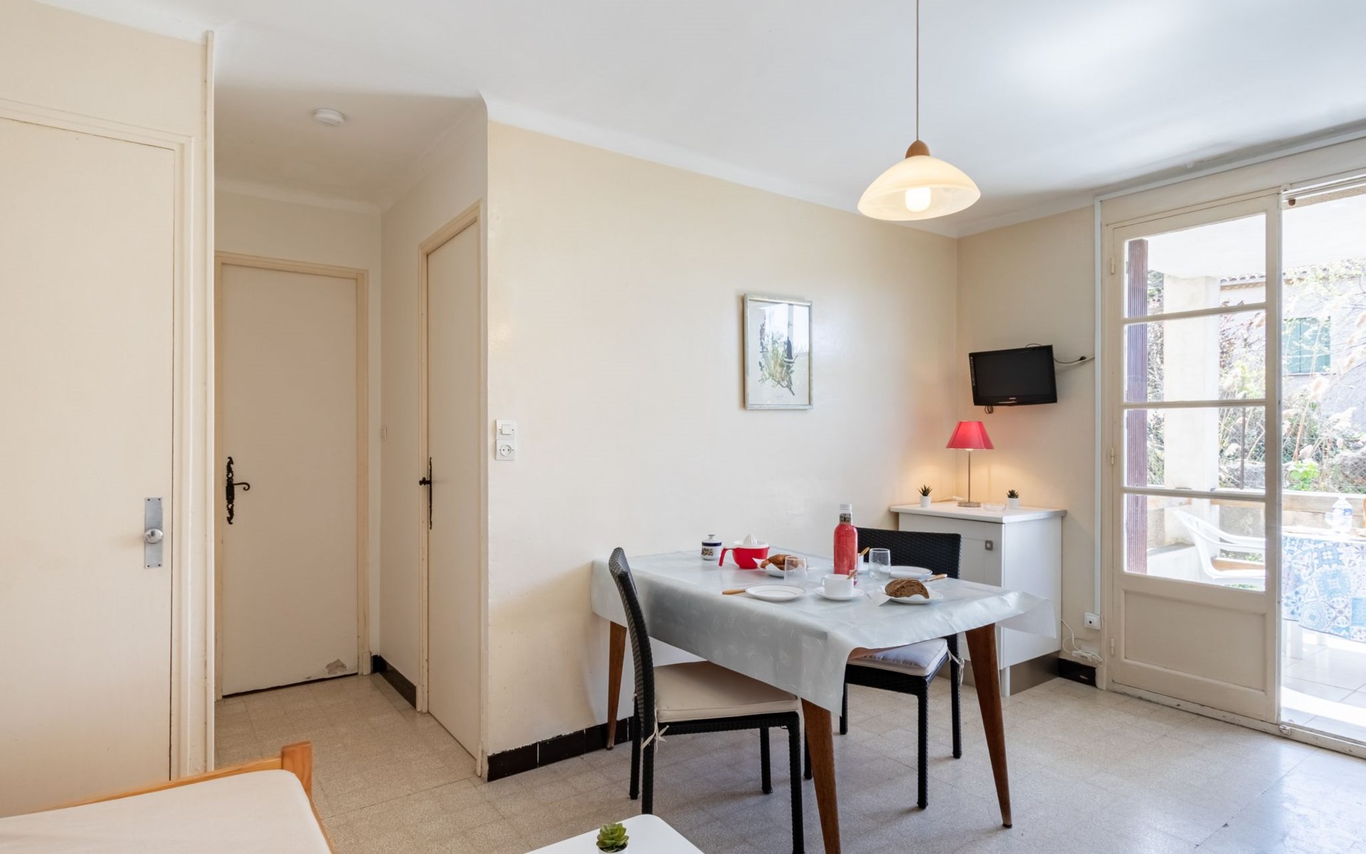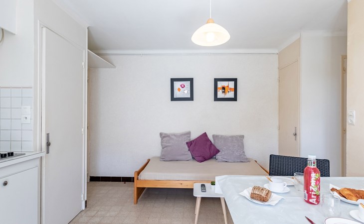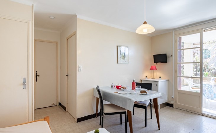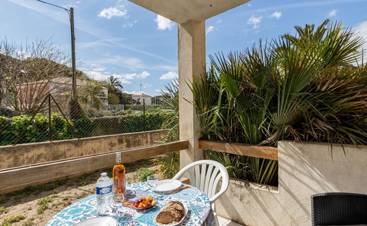 Les Lecques: Residence "Super Plage", 2 storeys. In the resort 500 m from the centre of Les lecques, 30 m from the sea, road to cross. Shop 500 m, supermarket 1.5 km, restaurant 400 m, bus stop "Le Viguier" 1.1 km, railway station "Saint Cyr les Lecques-La Cadière" 2.2 km, sandy beach 30 m. Golf course (18 hole) 5 km. Nearby attractions: Aqualand 2 km. Hiking paths: Sainte Baume, Sainte Victoire, Calanques, Port-Cros,Porquerolles. Please note: the keys‘ handover takes place by the agency Interhome in SaintCyr La Madrague, 2 km. The photograph shows a typical example. Additional accommodations can be booked.