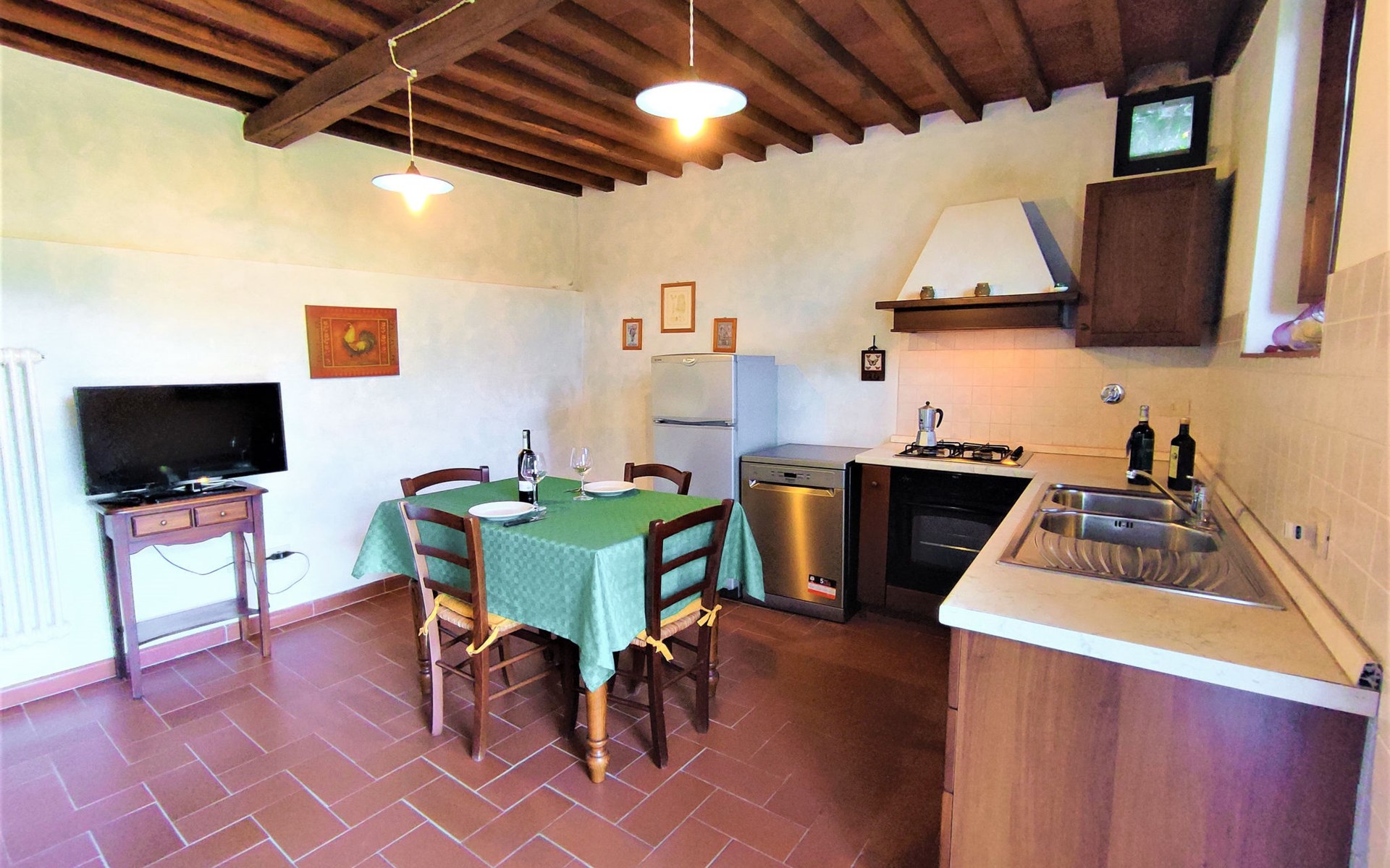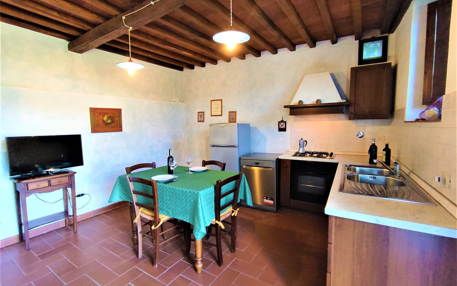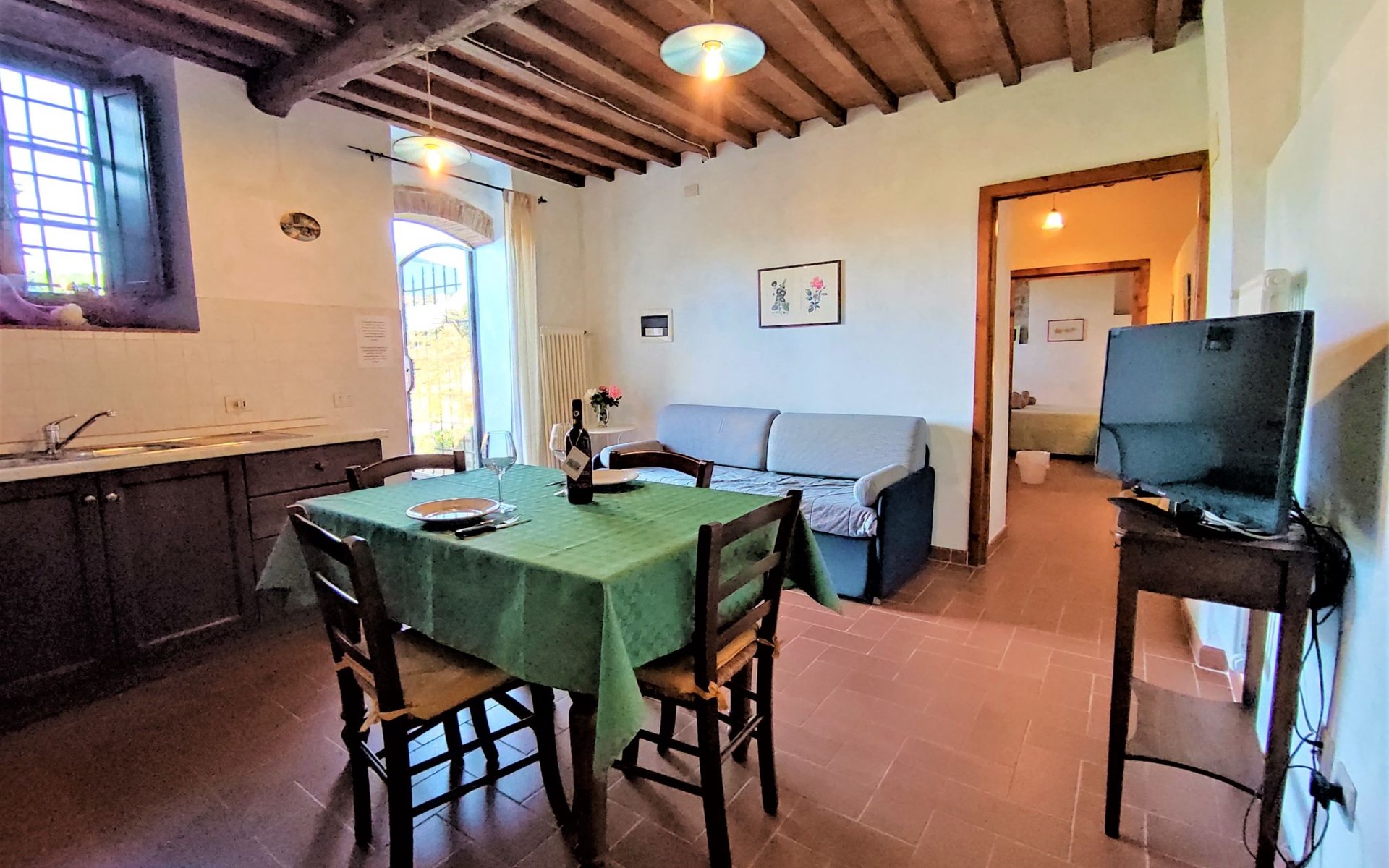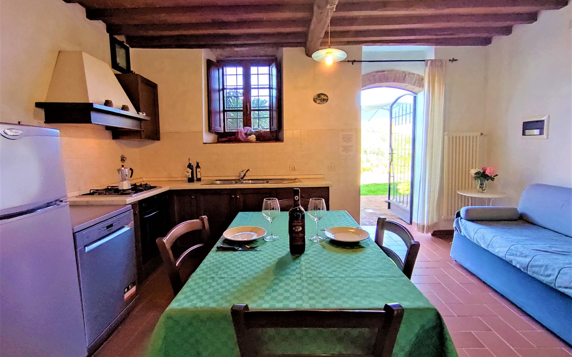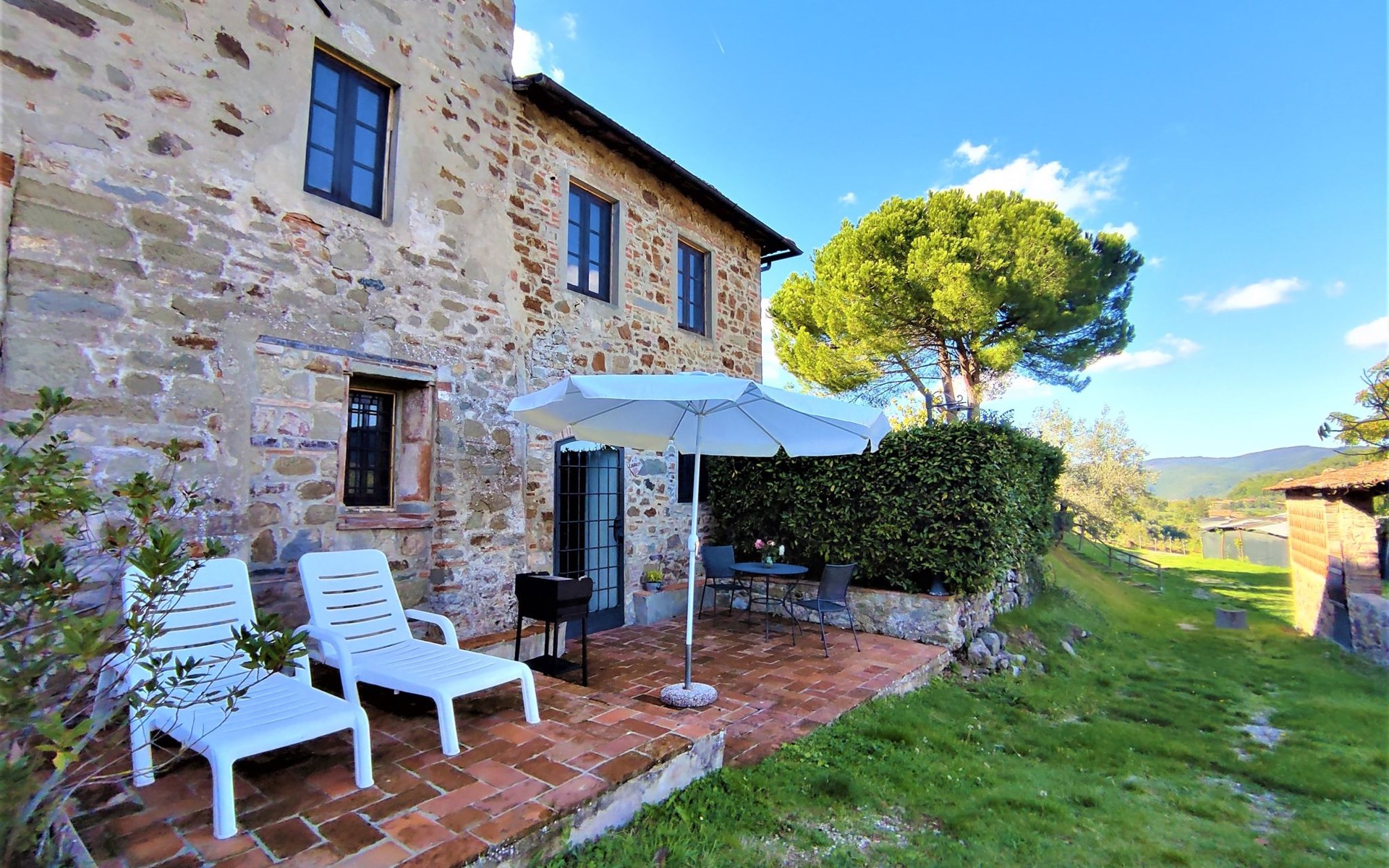 Large, rustic on a vinyard country house "Fattoria l'Ottavo", 400 m a.s.l., from the 18th century, renovated, surrounded by meadows and vineyards. 3 houses in the residence. 9 apartments in the residence. In the district of Lucolena in Chianti 12 km from the centre of Greve in Chianti, 13 m from the centre of Figline Valdarno, in a secluded, sunny, elevated position, in the countryside. For shared use: property 40 ha, natural garden, meadow, swimming pool fenced (8 x 4 m, seasonal availability: 01.May. - 15.Oct. pool opening hours: 08:00-20:00). Outdoor shower, terrace, garden furniture, barbecue, pool maintenance by the owner/gardener. In the house: reception, restaurant, breakfast room, WiFi, washing machine (for shared use). Linen change weekly. Breakfast possible on request (extra). 200 m long narrow motor access to the grounds. Parking on the premises. Shop 700 m, grocery 700 m, supermarket 12 km, shopping centre 13 km, restaurant 1 km, bar 700 m, bakery 700 m, bicycle rental 12 km, bus stop "Lucolena" 700 m, railway station "Figline Valdarno" 13 km, sandy beach "Calambrone" 110 km, indoor swimming pool 13 km, lake Trasimeno 114 km. Golf course (18 hole) 20 km, tennis 12 km, riding stable 2 km, walking paths from the house 100 m. Nearby attractions: Firenze 37 km, Siena 50 km, Arezzo 54 km, San Gimignano 65 km. Please note: car recommended. Reception open 10:00-17:00 hrs. Suitable for families, baby equipment (included). Suitable for events. Local sale of farm products. Please note: the owner lives on the same property. All houses/apartments are individually designed/furnished.