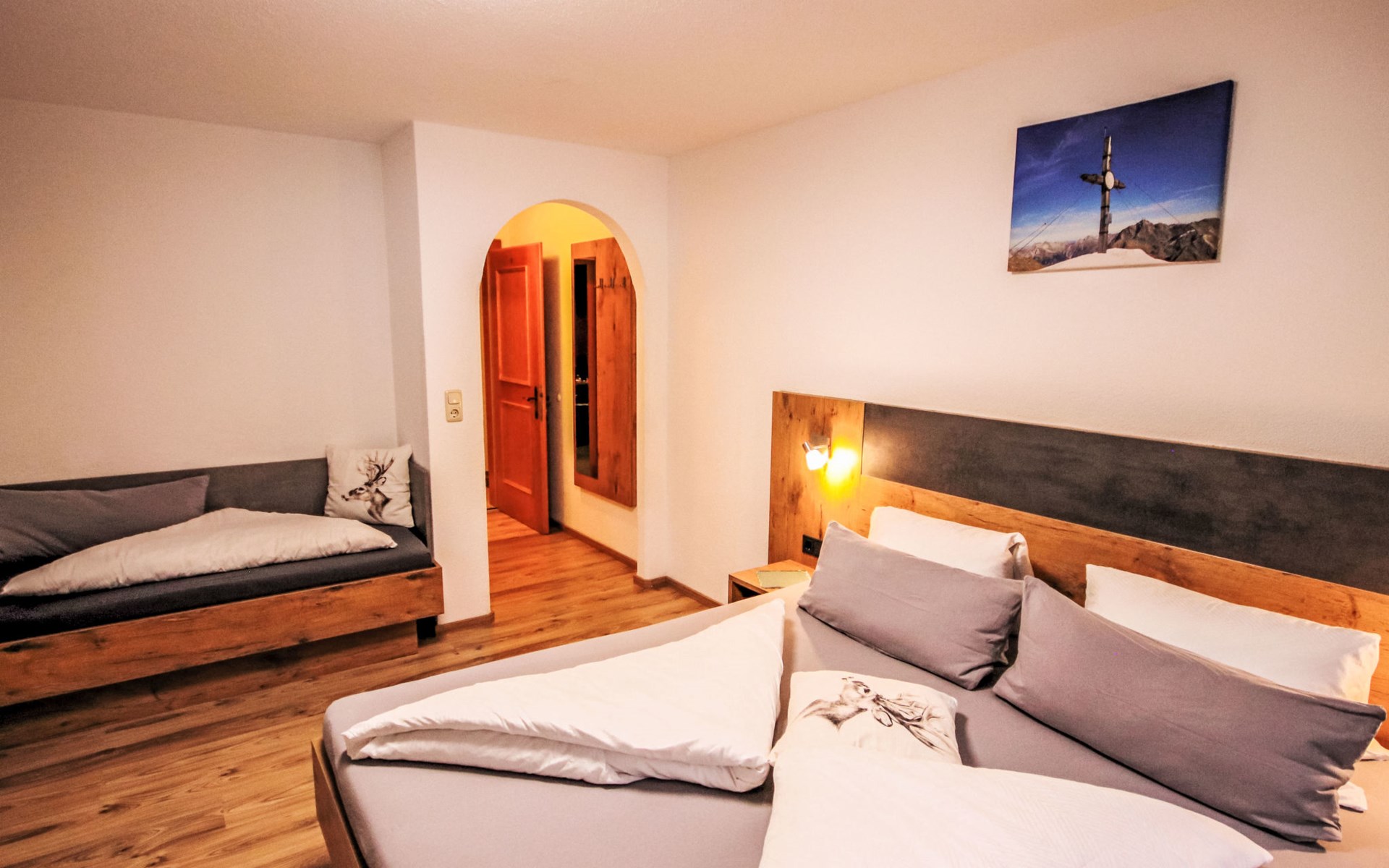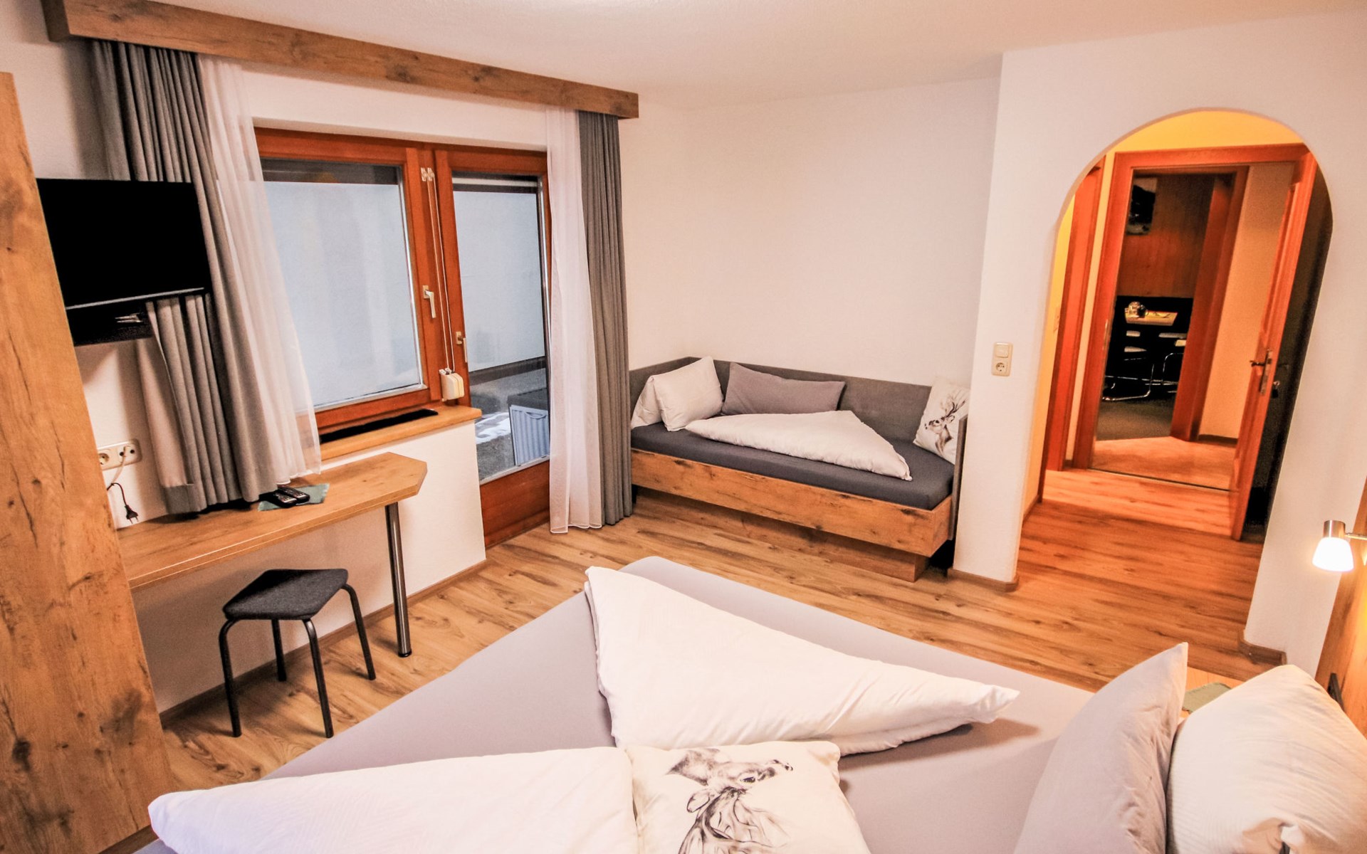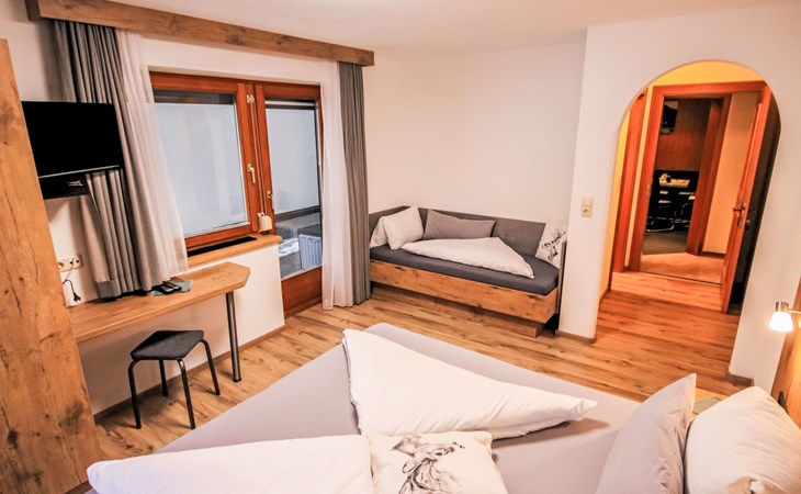 House "The Siegele". In the district of Holdernach 2.5 km from the centre of Kappl, 10 km from the centre of Ischgl, 20 km from the centre of Landeck. In the house: storage room for skis, ski boot dryer. Bread roll service. Parking on the premises. Shop 2.5 km, grocery 2.5 km, bus stop "Kappl Holdernach Siedlung" 500 m, railway station "Landeck-Zams Bahnhof" 18.4 km. Gondola lift 2.5 km, ski bus stop 200 m. Member for Silvretta Card Premium: valid from summer 2023 - unlimited use of all open mountain railways and local public transport in Paznaun, Samnaun and Montafon/Brandnertal, as well as unlimited use of the Silvretta High Alpine Road.