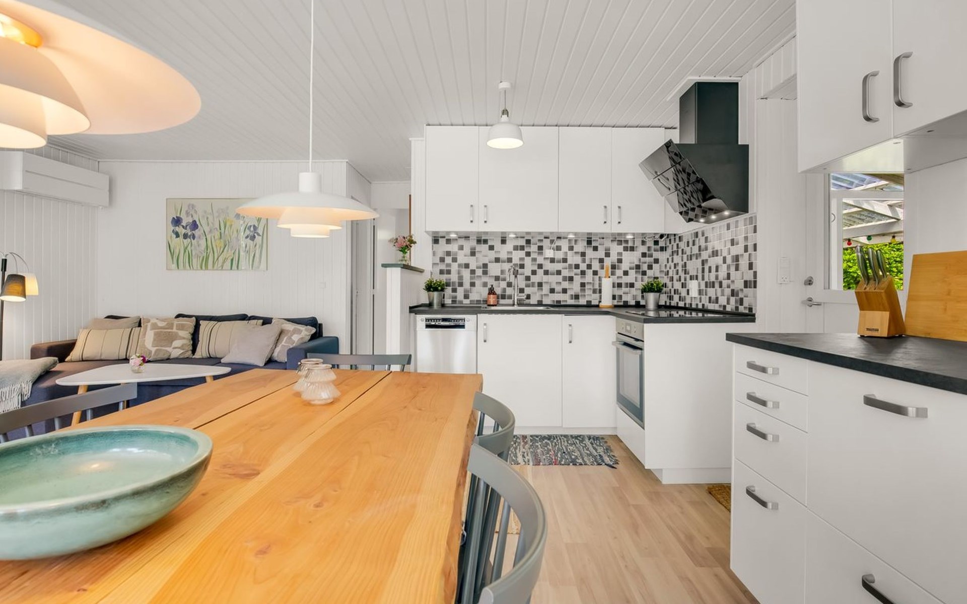 Single-family house, built in 1981. 500 m from the sea. Private: property 1'115 m2, well-kept garden. Terrace (40 m2). In the house: washing machine. Parking at the house. Grocery 3 km. The owner does not accept any youth groups.