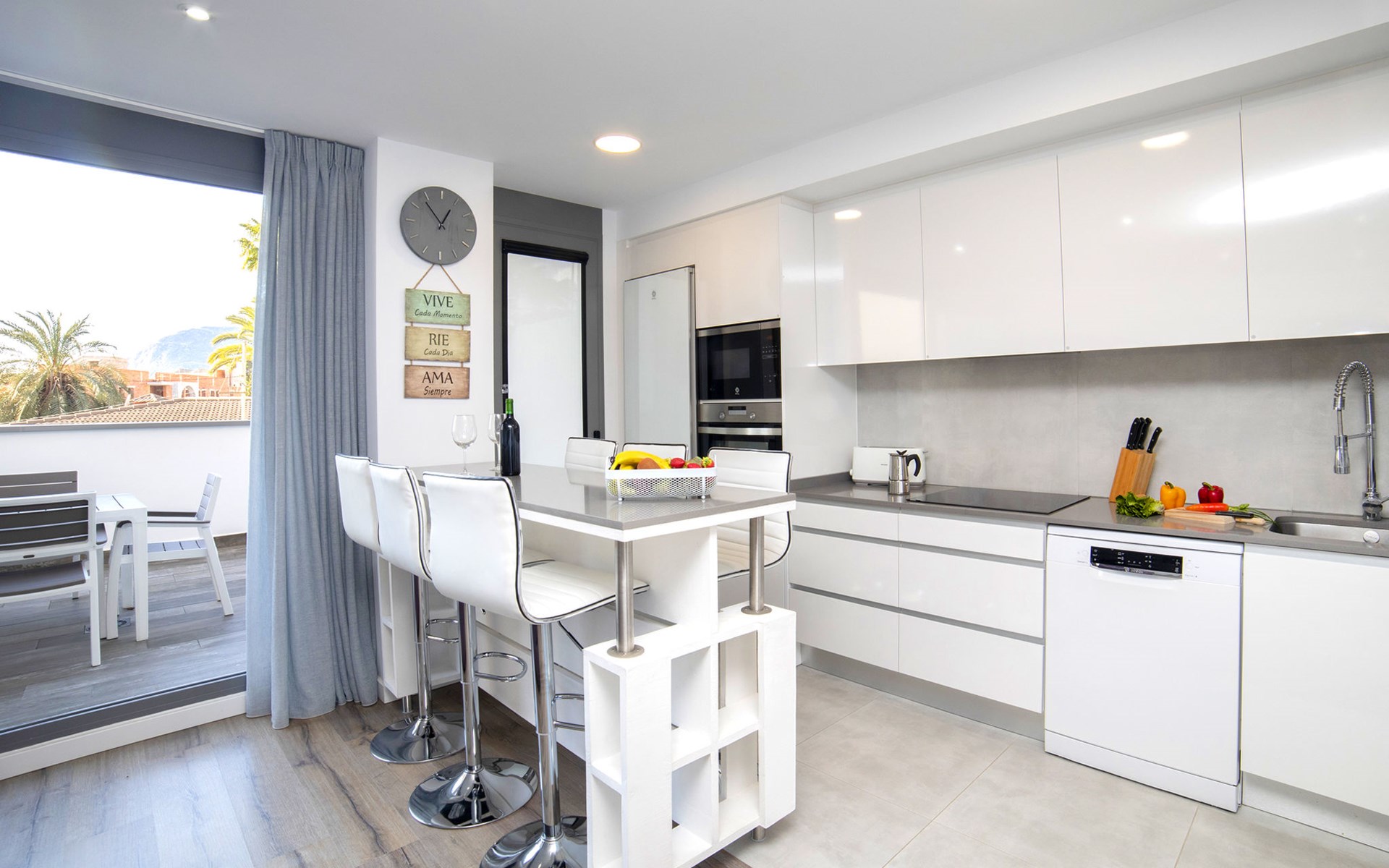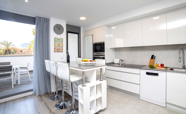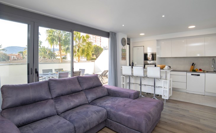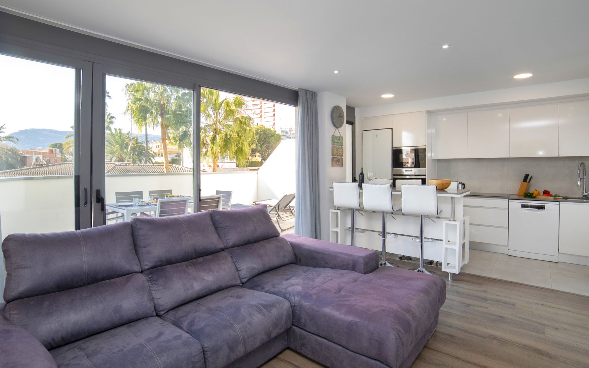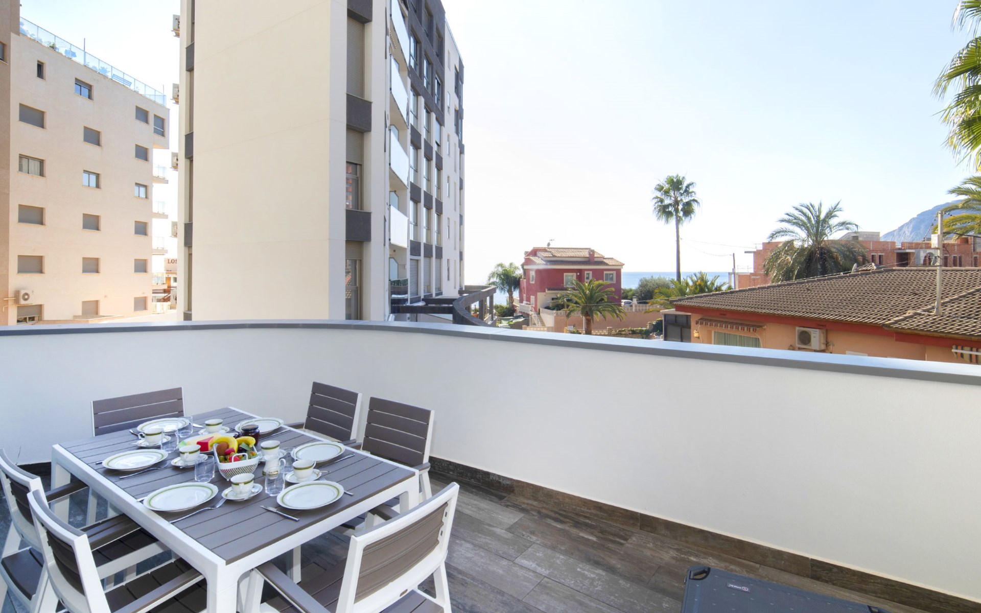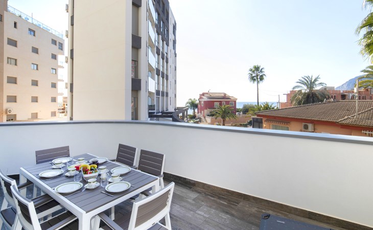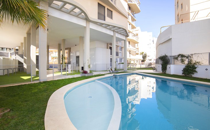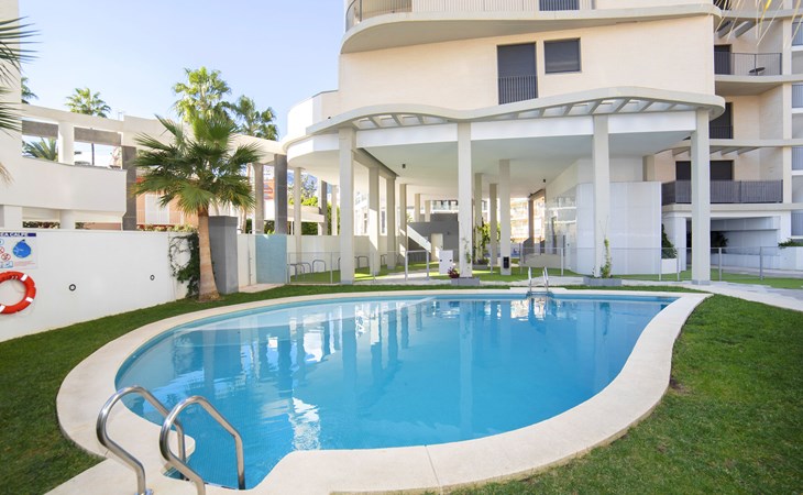 Very modern, beautiful apartment block "Isea Calpe", 8 storeys, built in 2019. In the centre of Calpe, in a sunny position, in the heart of the city, 100 m from the sea, 100 m from the beach. For shared use: property (fenced), terraced garden with plants and flowers, swimming pool fenced (12 x 8 m, depth 40 - 165 cm, seasonal availability: 01.Jan. - 31.Dec.). Unconventional pool shape. WC in the pool area, children's pool, outdoor shower, table tennis, children's playground. In the house: lift. Shop 100 m, supermarket 180 m, restaurant 30 m, bar, café 100 m, bus stop "Parada Bus" 150 m, sandy beach "Playa Arenal" 130 m. Sports harbour 2.2 km, marina 2.2 km, golf course (9 hole) 10 km. Nearby attractions: Aqualandia, Mundomar, Terra Mítica, Terra Natura, Benidorm Palace (Benidorm), Fonts de l'Algar, Castillo de Guadalest. The owner does not accept any youth groups.