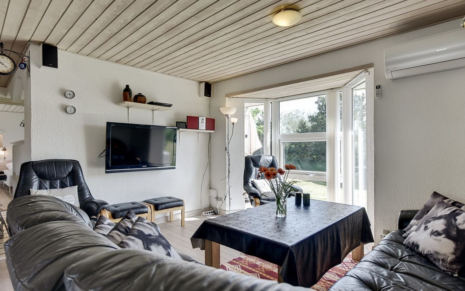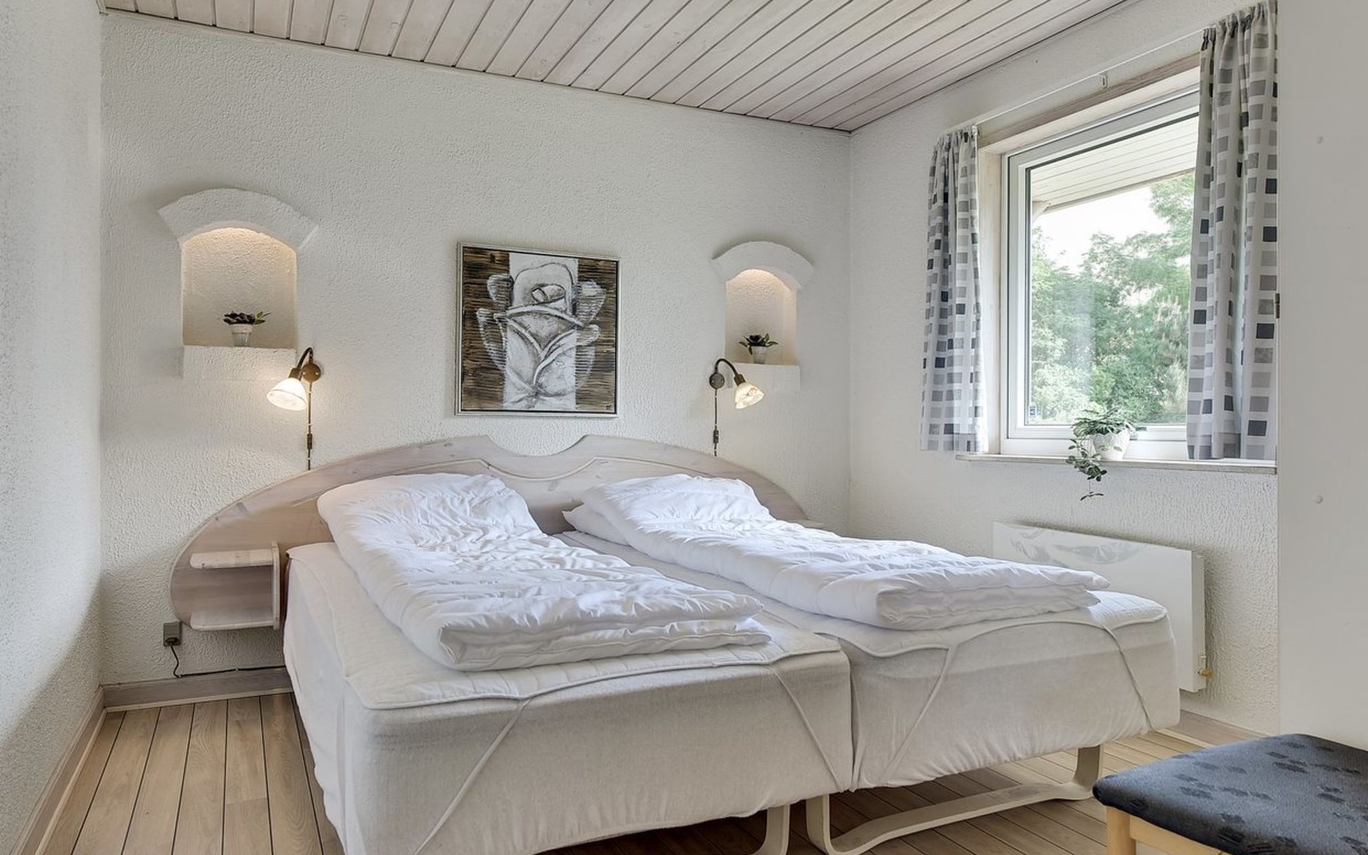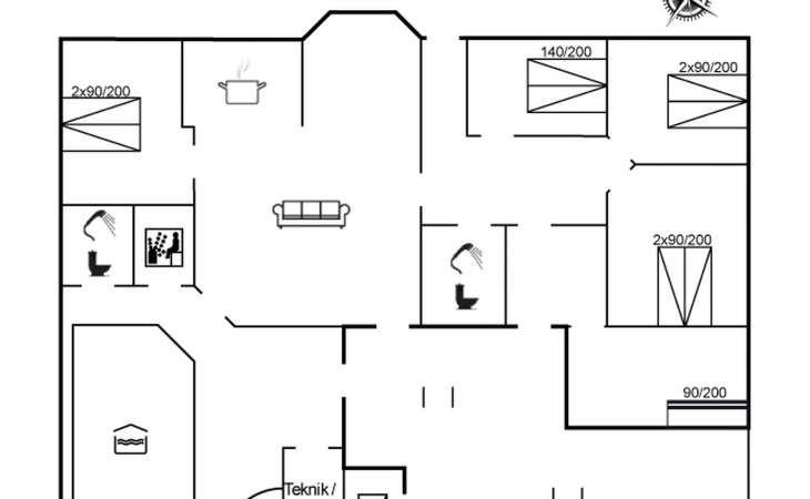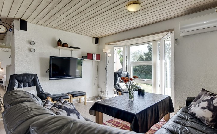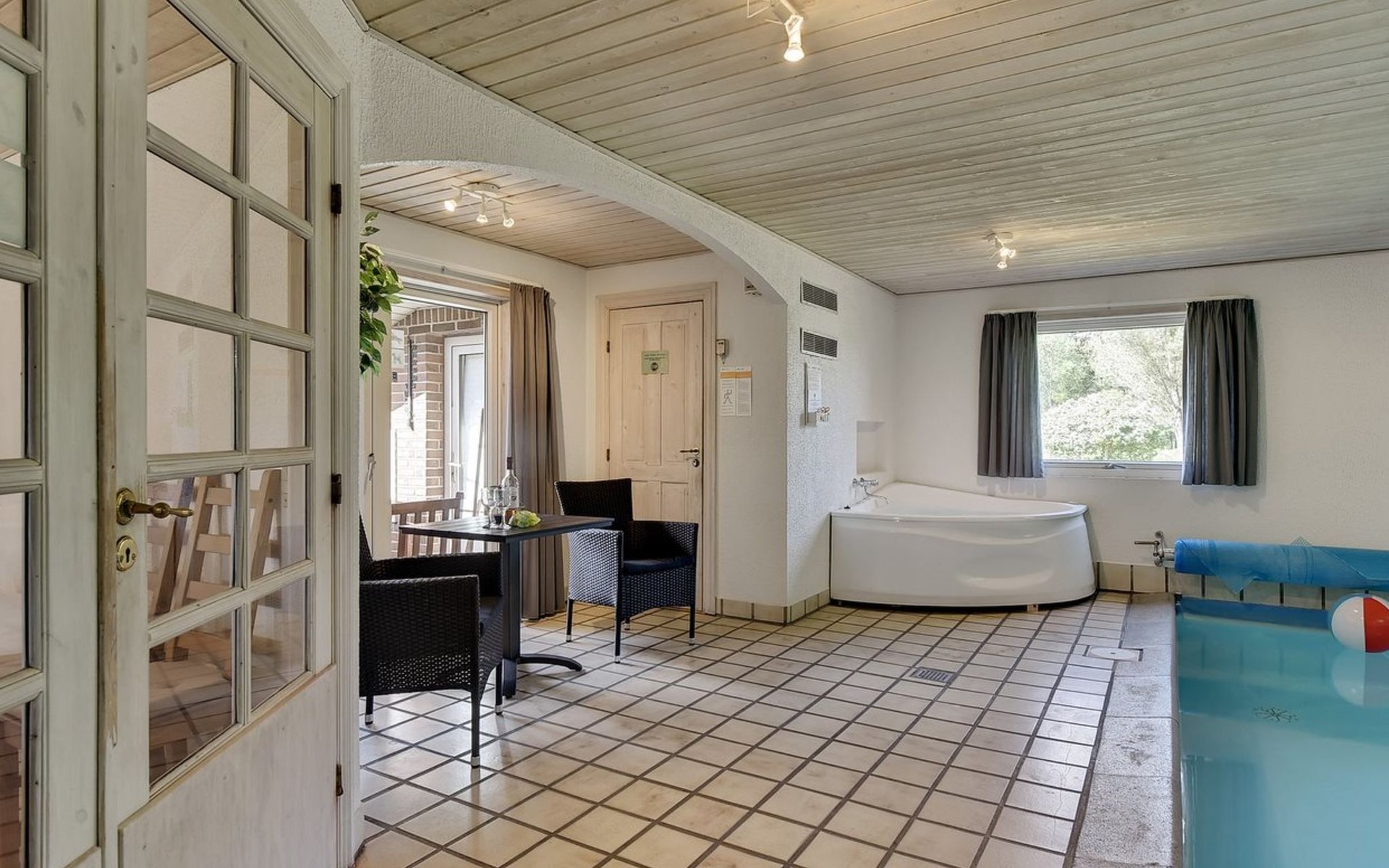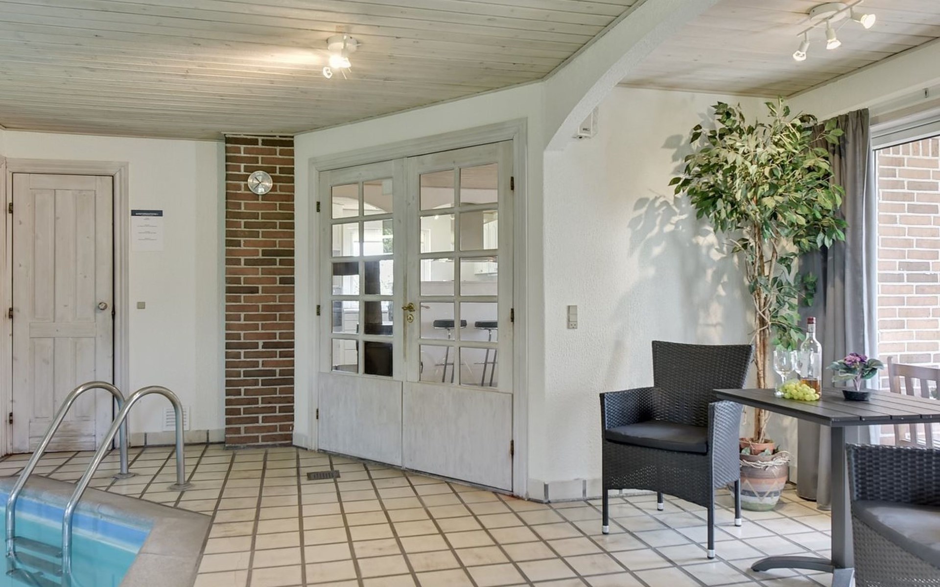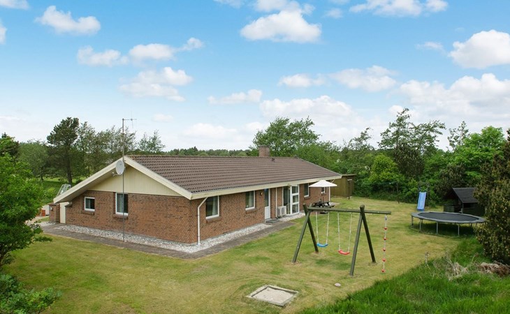 Single-family house, built in 1992. 3.5 km from the sea. Private: natural state property 1'964 m2, indoor pool (3 x 6 m, 18 m2, depth 130 - 130 cm). Terrace (5 m2), barbecue, children's playground (slide, swing). In the house: sauna, trampoline, washing machine, tumble dryer. Parking at the house. E-charging station. Grocery 7.5 km. The owner does not accept any youth groups.