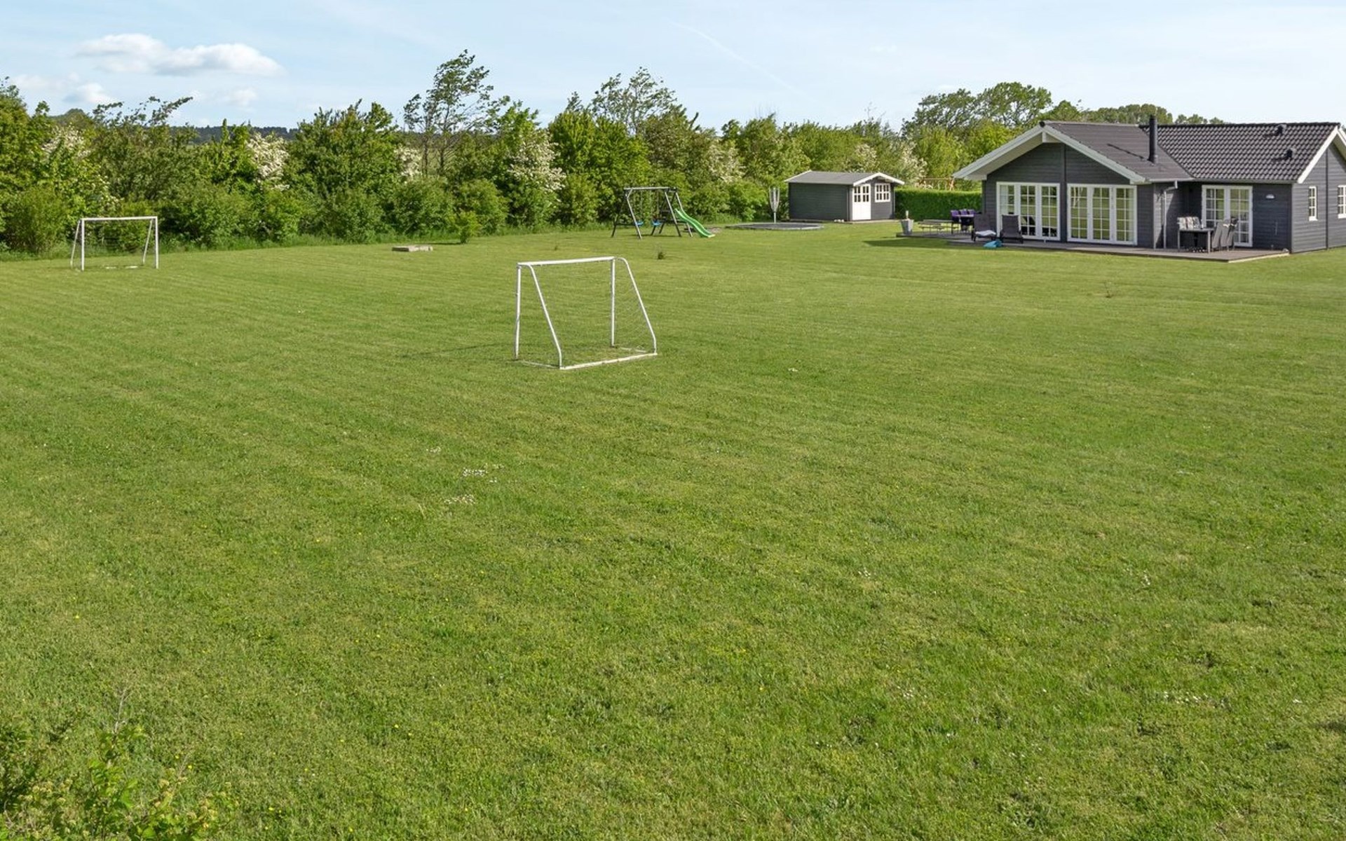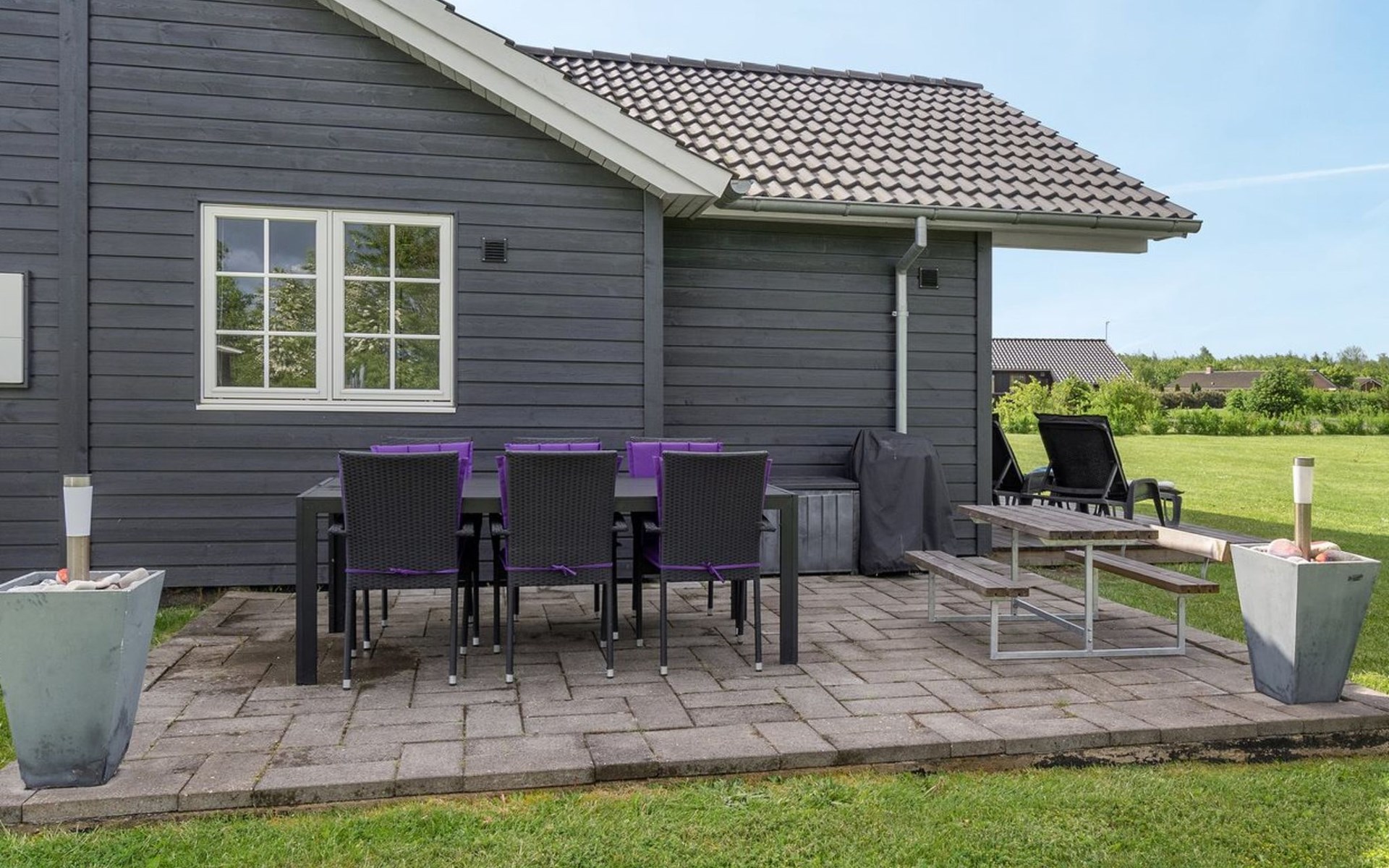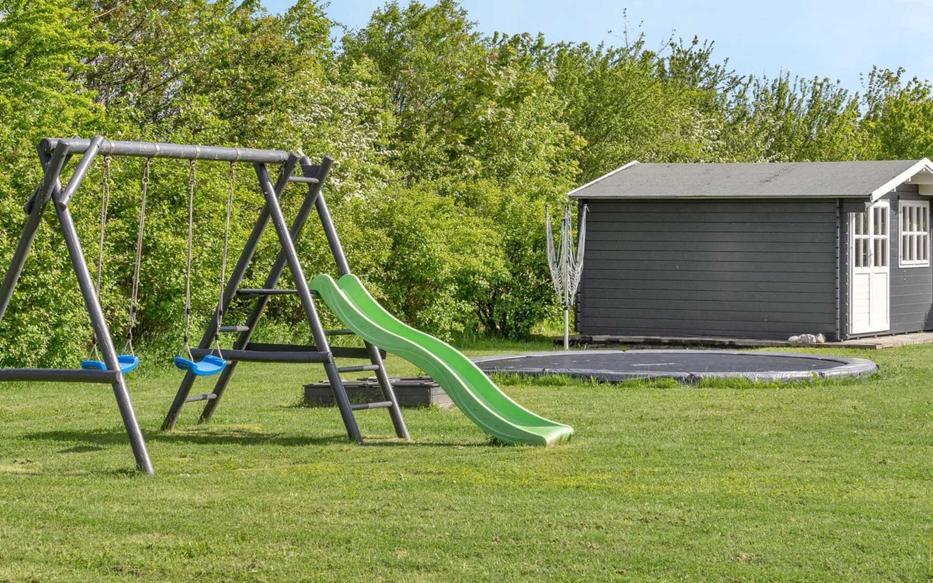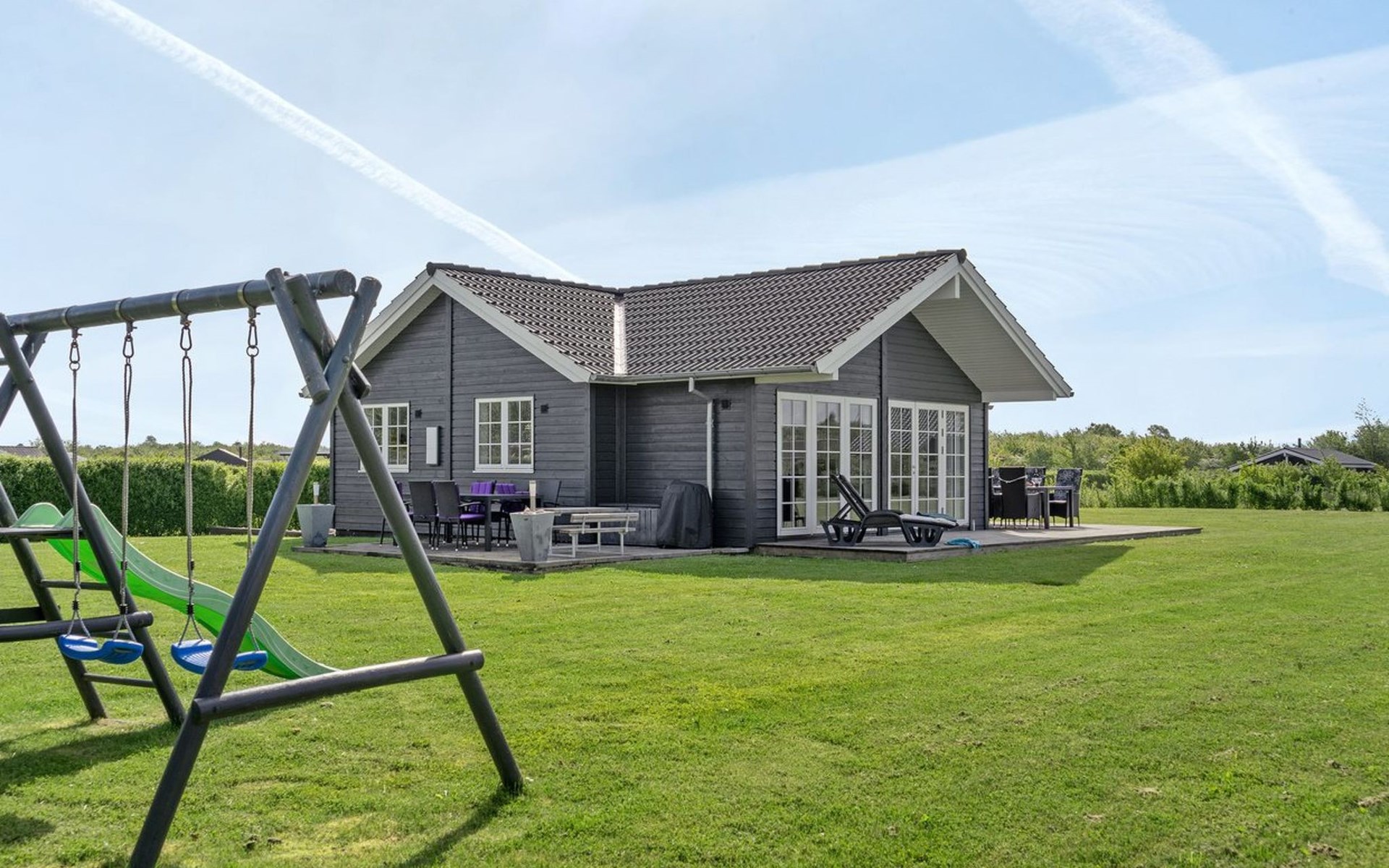 Single-family house, built in 2014. 700 m from the sea. Private: natural state property 1'118 m2. Terrace (50 m2), barbecue, children's playground (swing). In the house: trampoline, washing machine. Parking at the house. Grocery 2 km. The owner does not accept any youth groups.